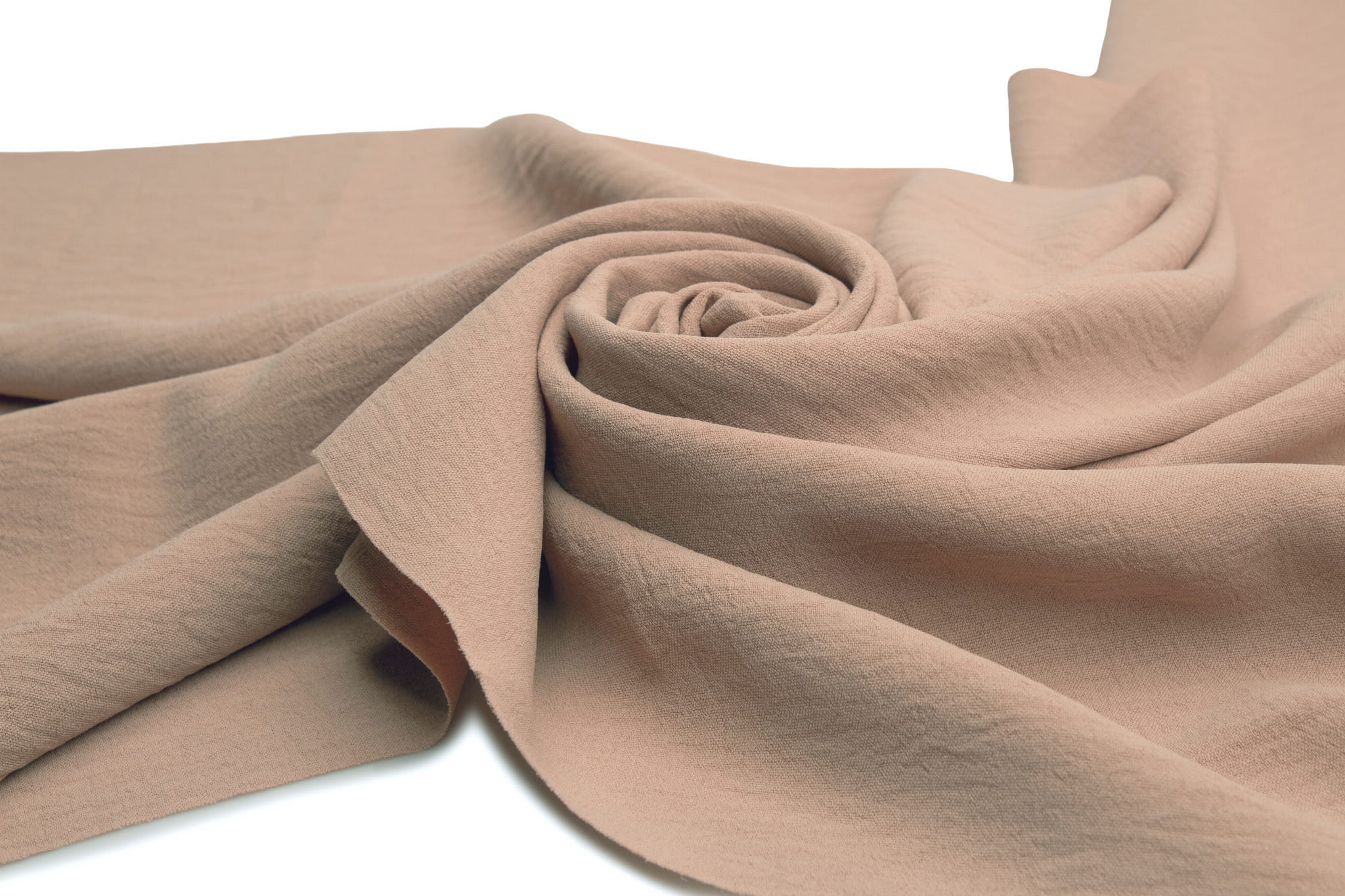 Sehr angenehmer Sommerstoff. American Crepe ist ein Stoff mit Georgette-Webung – gedrehte Fäden verleihen dem Material unregelmäßige Falten. Die lockere Webart macht den Stoff leicht und luftig und sorgt für eine angenehme Luftzirkulation. Trotz seiner Zartheit und seines sommerlichen Charakters bietet der Stoff eine hervorragende Abdeckung (er ist nicht transparent). Es ist widerstandsfähig und langlebig und erfordert dank seiner natürlich unebenen Struktur kein Bügeln. Durch den Zusatz von Elasthan schmiegt sich der Stoff perfekt an den Körper an. Es ist sehr leicht sauber zu halten, da es keiner besonderen Pflege bedarf – es ist maschinenwaschbar.