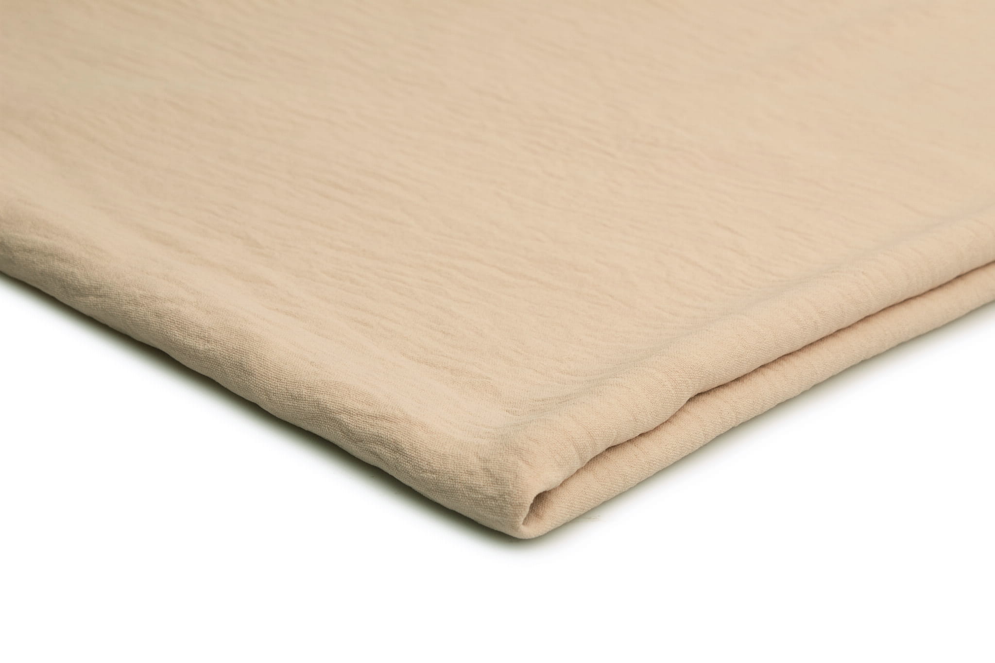 Sehr angenehmer Sommerstoff. American Crepe ist ein Stoff mit Georgette-Webung – gedrehte Fäden verleihen dem Material unregelmäßige Falten. Die lockere Webart macht den Stoff leicht und luftig und sorgt für eine angenehme Luftzirkulation. Trotz seiner Zartheit und seines sommerlichen Charakters bietet der Stoff eine hervorragende Abdeckung (er ist nicht transparent). Es ist widerstandsfähig und langlebig und erfordert dank seiner natürlich unebenen Struktur kein Bügeln. Durch den Zusatz von Elasthan schmiegt sich der Stoff perfekt an den Körper an. Es ist sehr leicht sauber zu halten, da es keiner besonderen Pflege bedarf – es ist maschinenwaschbar.