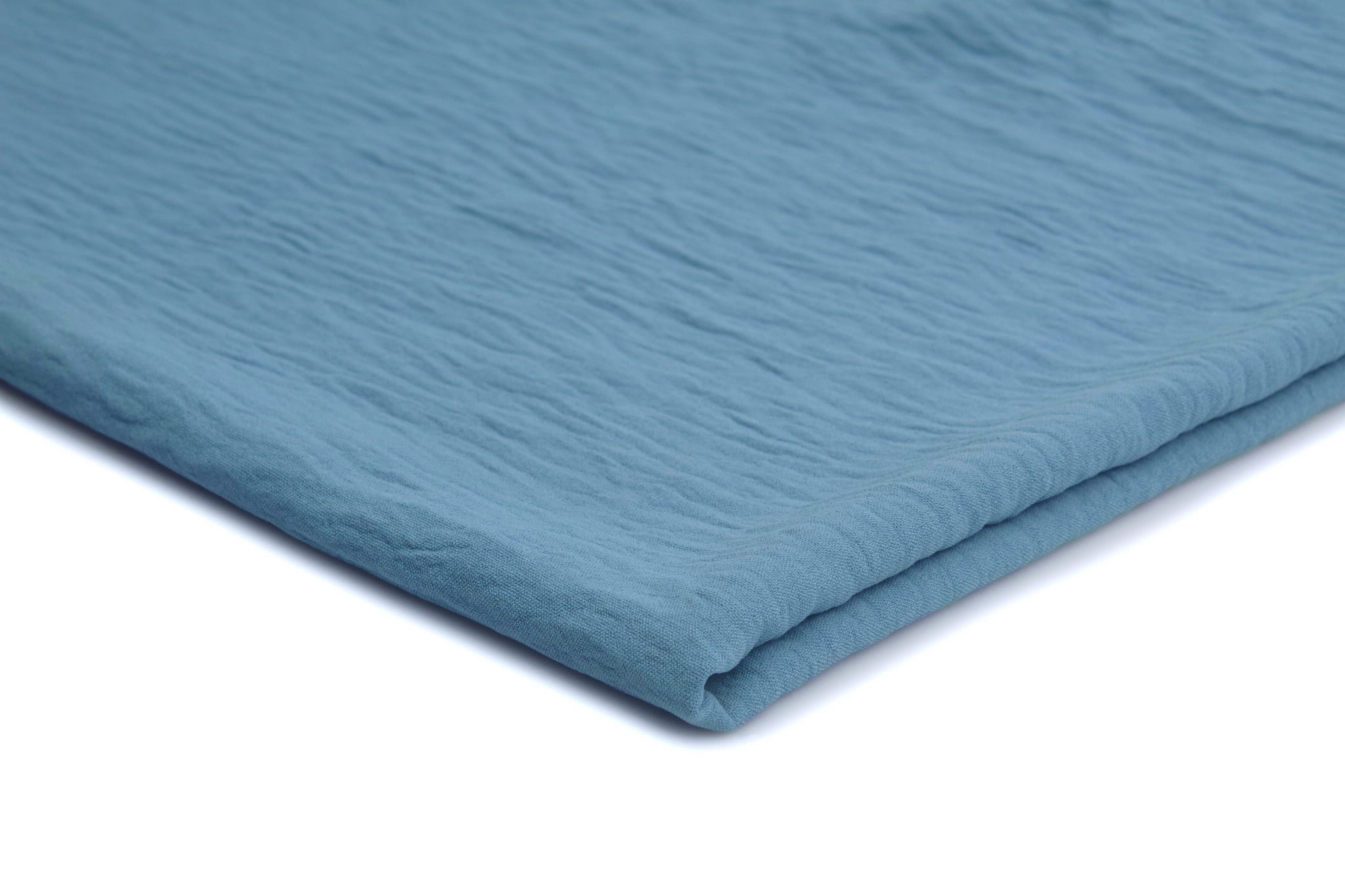 Sehr angenehmer Sommerstoff. American Crepe ist ein Stoff mit Georgette-Webung – gedrehte Fäden verleihen dem Material unregelmäßige Falten. Die lockere Webart macht den Stoff leicht und luftig und sorgt für eine angenehme Luftzirkulation. Trotz seiner Zartheit und seines sommerlichen Charakters bietet der Stoff eine hervorragende Abdeckung (er ist nicht transparent). Es ist widerstandsfähig und langlebig und erfordert dank seiner natürlich unebenen Struktur kein Bügeln. Durch den Zusatz von Elasthan schmiegt sich der Stoff perfekt an den Körper an. Es ist sehr leicht sauber zu halten, da es keiner besonderen Pflege bedarf – es ist maschinenwaschbar.