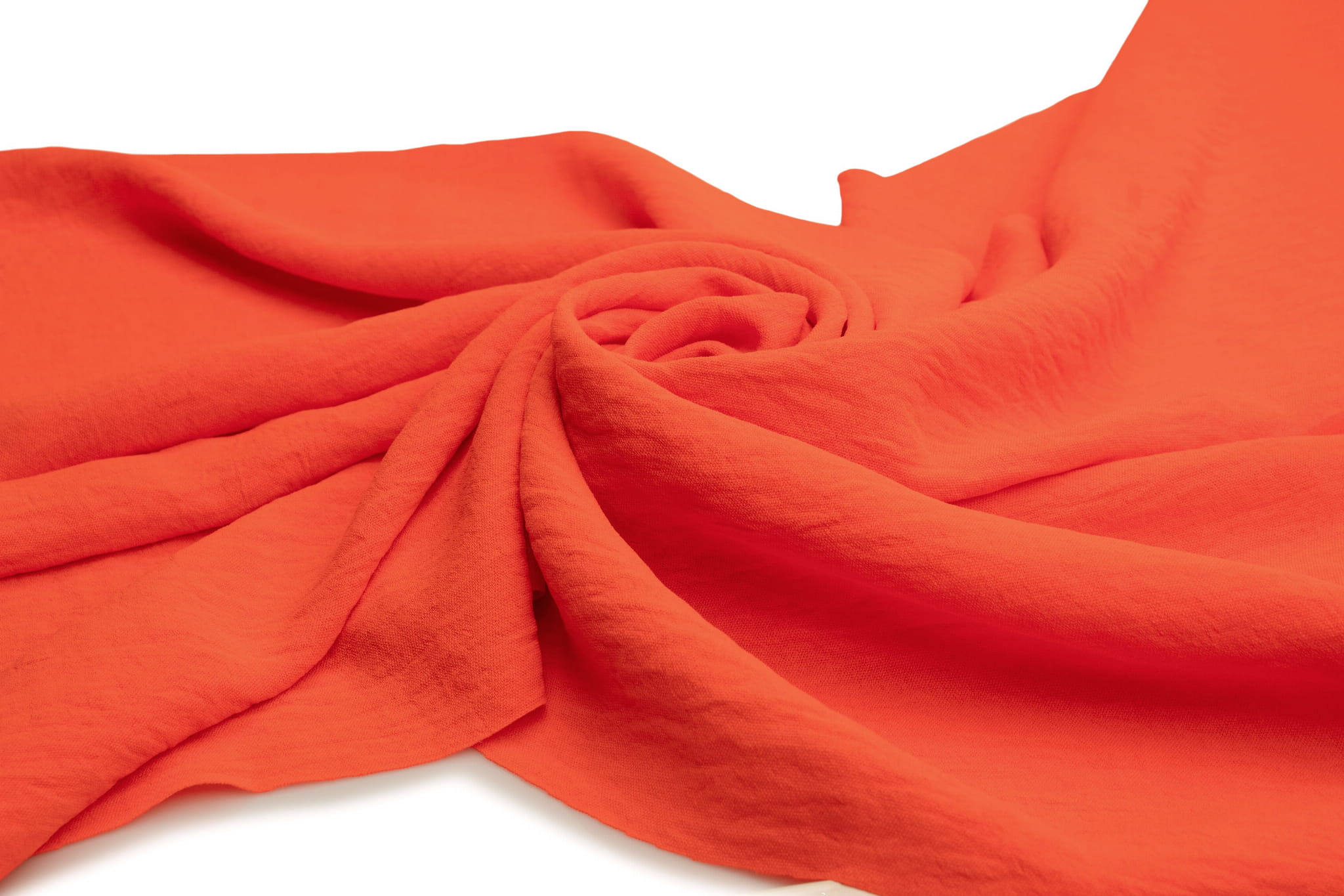 Sehr angenehmer Sommerstoff. American Crepe ist ein Stoff mit Georgette-Webung – gedrehte Fäden verleihen dem Material unregelmäßige Falten. Die lockere Webart macht den Stoff leicht und luftig und sorgt für eine angenehme Luftzirkulation. Trotz seiner Zartheit und seines sommerlichen Charakters bietet der Stoff eine hervorragende Abdeckung (er ist nicht transparent). Es ist widerstandsfähig und langlebig und erfordert dank seiner natürlich unebenen Struktur kein Bügeln. Durch den Zusatz von Elasthan schmiegt sich der Stoff perfekt an den Körper an. Es ist sehr leicht sauber zu halten, da es keiner besonderen Pflege bedarf – es ist maschinenwaschbar.