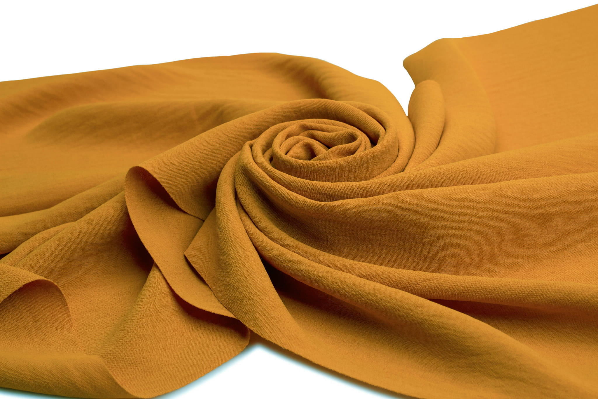 Sehr angenehmer Sommerstoff. American Crepe ist ein Stoff mit Georgette-Webung – gedrehte Fäden verleihen dem Material unregelmäßige Falten. Die lockere Webart macht den Stoff leicht und luftig und sorgt für eine angenehme Luftzirkulation. Trotz seiner Zartheit und seines sommerlichen Charakters bietet der Stoff eine hervorragende Abdeckung (er ist nicht transparent). Es ist widerstandsfähig und langlebig und erfordert dank seiner natürlich unebenen Struktur kein Bügeln. Durch den Zusatz von Elasthan schmiegt sich der Stoff perfekt an den Körper an. Es ist sehr leicht sauber zu halten, da es keiner besonderen Pflege bedarf – es ist maschinenwaschbar.