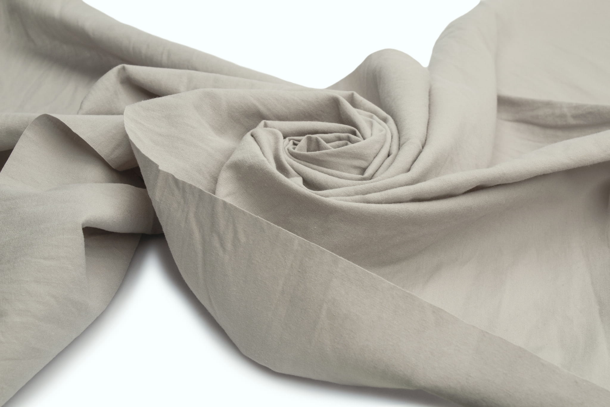 Baumwollkrepp hat eine deutlich unebene Oberfläche und ist leicht rau. Dies liegt an den eng gedrehten Garnfäden, dem sogenannten Kreppgarn. Dies wirkt sich auch auf die Festigkeit des Materials und seine Abriebfestigkeit aus. Der Stoff weist außerdem eine charakteristische Materialstruktur auf – leichte Oberflächenfalten und ein optischer Effekt von gewaschenem Stoff sind sichtbar. Bietet einen einzigartigen Look. Der Stoff ist weich, leicht und zieht nicht. Es hat eine matte Oberfläche. Naturfasern ermöglichen eine freie Luftzirkulation und nehmen Feuchtigkeit gut auf.