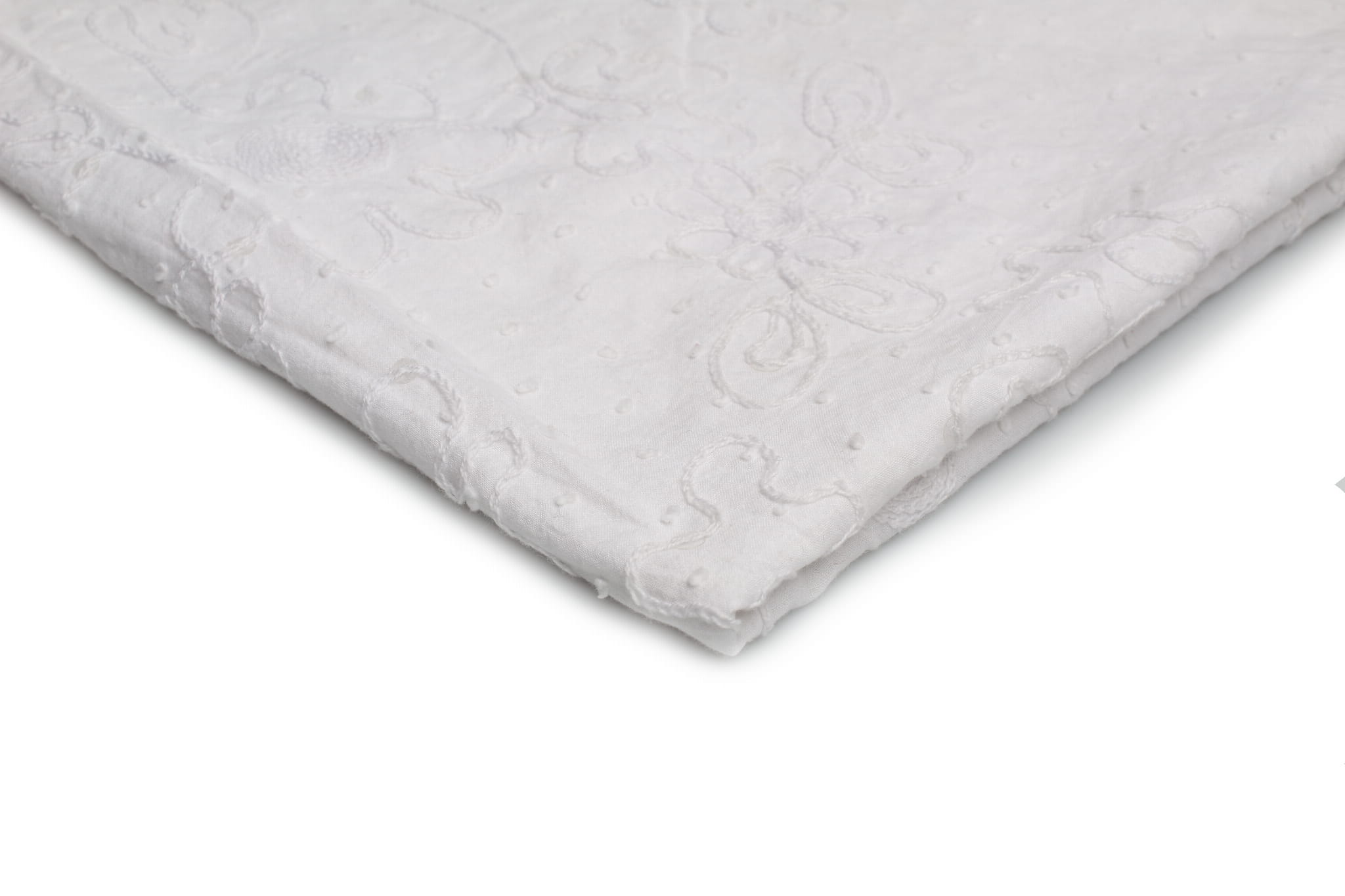 Baumwolle ist einer der vielseitigsten Stoffe. Die Hauptvorteile sind Weichheit und hoher Tragekomfort. Natürliche Baumwolle selbst ist gleichbedeutend mit Komfort - hauptsächlich aufgrund der angenehm anzuführenden Textur und der hohen Atmungsaktivität. Der Stoff wurde mit raffinierten Stickereien angereichert, die der Kleidung einen visuellen Wert verleihen. Zusätzlich werden hier und da farblose Pailletten aufgenäht, die das Licht auf interessante Weise reflektieren.