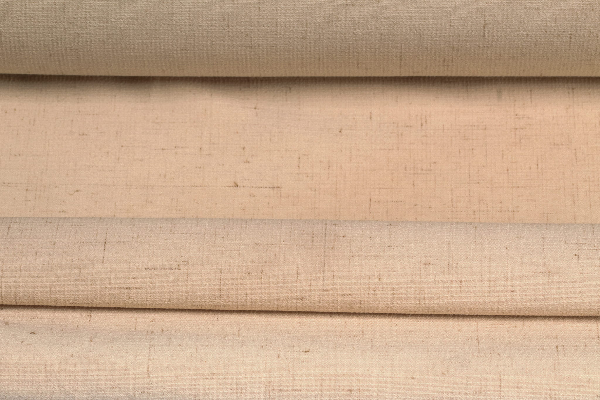 Polyestergewebe mit Elasthan, in Leinwandbindung gewebt. Das Material ist dehnbar, mitteldick, mit einer körnigen Textur. Die dichte Webart macht es zusätzlich zu ausgezeichneten optischen Eigenschaften es ist auch ein extrem haltbares und haltbares Material. Es ist sehr widerstandsfähig gegen alle Arten von Falten und Abrieb. In den Stoff sind braune Fäden eingewebt, was den Stoff interessant aussehen lässt.