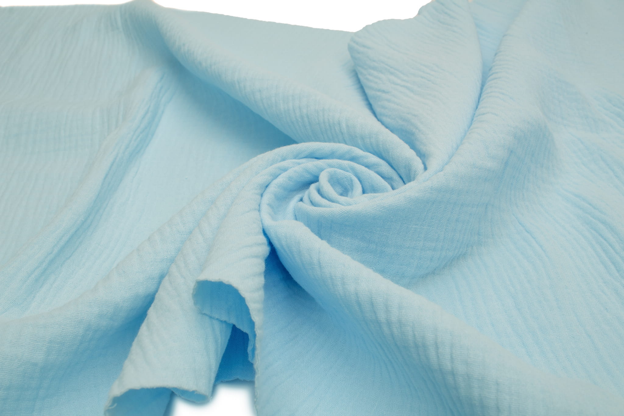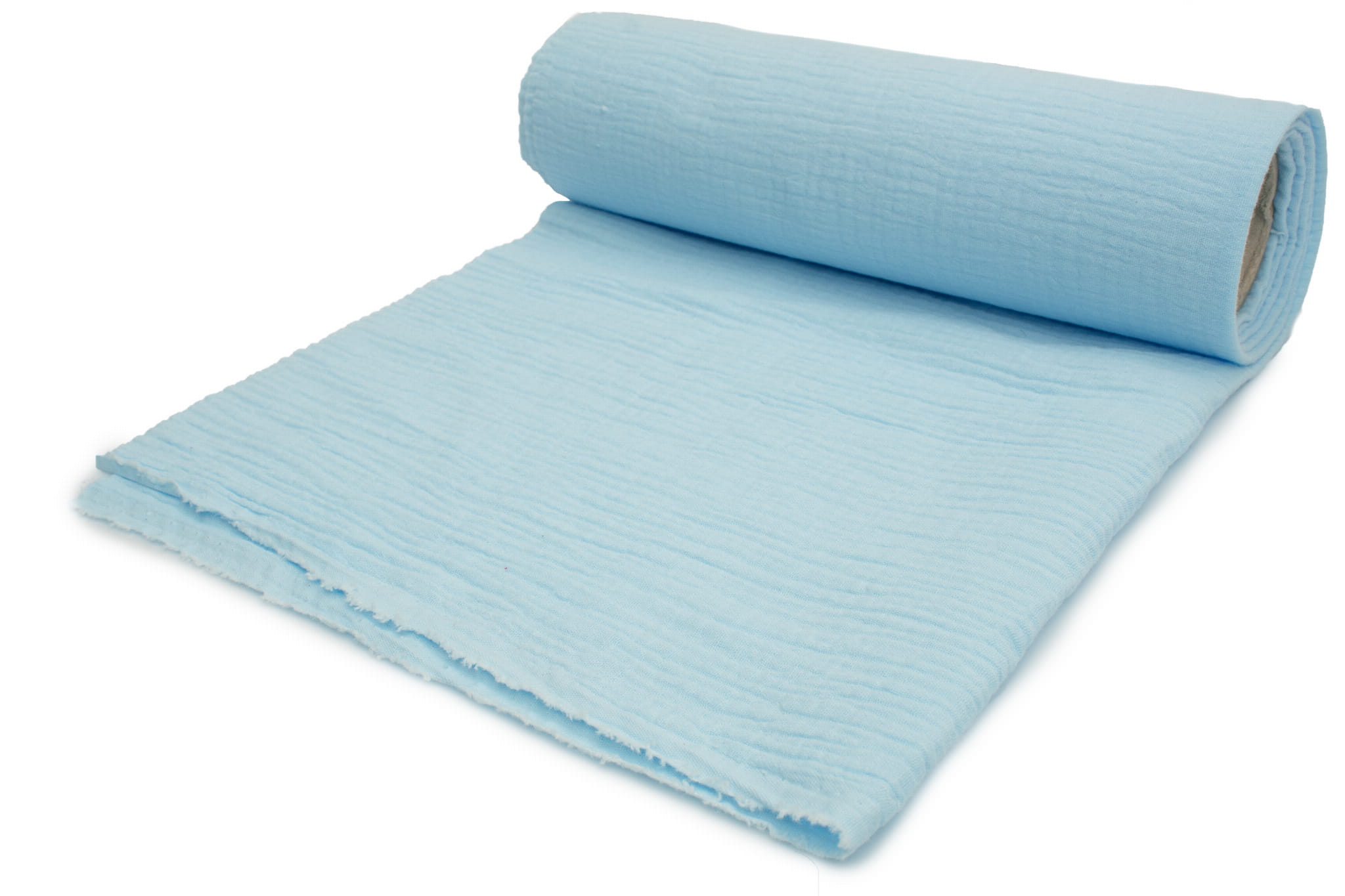 Musselin zeichnet sich durch außergewöhnliche Subtilität aus. Ursprünglich wurde es aus natürlichen Ressourcen hergestellt: Seide, Baumwolle, Leinen oder Wolle. Derzeit können Sie sich mit einer anderen Zusammensetzung treffen, aber die wünschenswerteste ist 100% Baumwolle. Wir können 3 Arten von Musselin unterscheiden: Single, Double und Triple Gaze, wobei die Namen die Anzahl der im Material vorhandenen Schichten angeben. Die einzelnen Lagen sind mit einer lockeren Leinenbindung gewebt und erzeugen durch ihre Verbindung eine charakteristische Faltenbildung des Stoffes. Double Gauze Baumwoll-Musselin ist dünn, leicht und sehr luftig. Dank zweier Materialschichten ist es blickdicht. Dieser Stoff ist sicher für die Haut: Seine natürliche Zusammensetzung verursacht keine Allergien, während die weichen Fasern keine Reizungen verursachen. Das Material sorgt für eine sehr gute Luftzirkulation und lässt die Haut an heißen Tagen atmen. Es ist hygroskopisch, was bedeutet, dass es viel Wasser aufnehmen kann, während es dank seiner lockeren Webart recht schnell trocknet. Die oben genannten Funktionen ermöglichen die breite Verwendung von Musselin.
