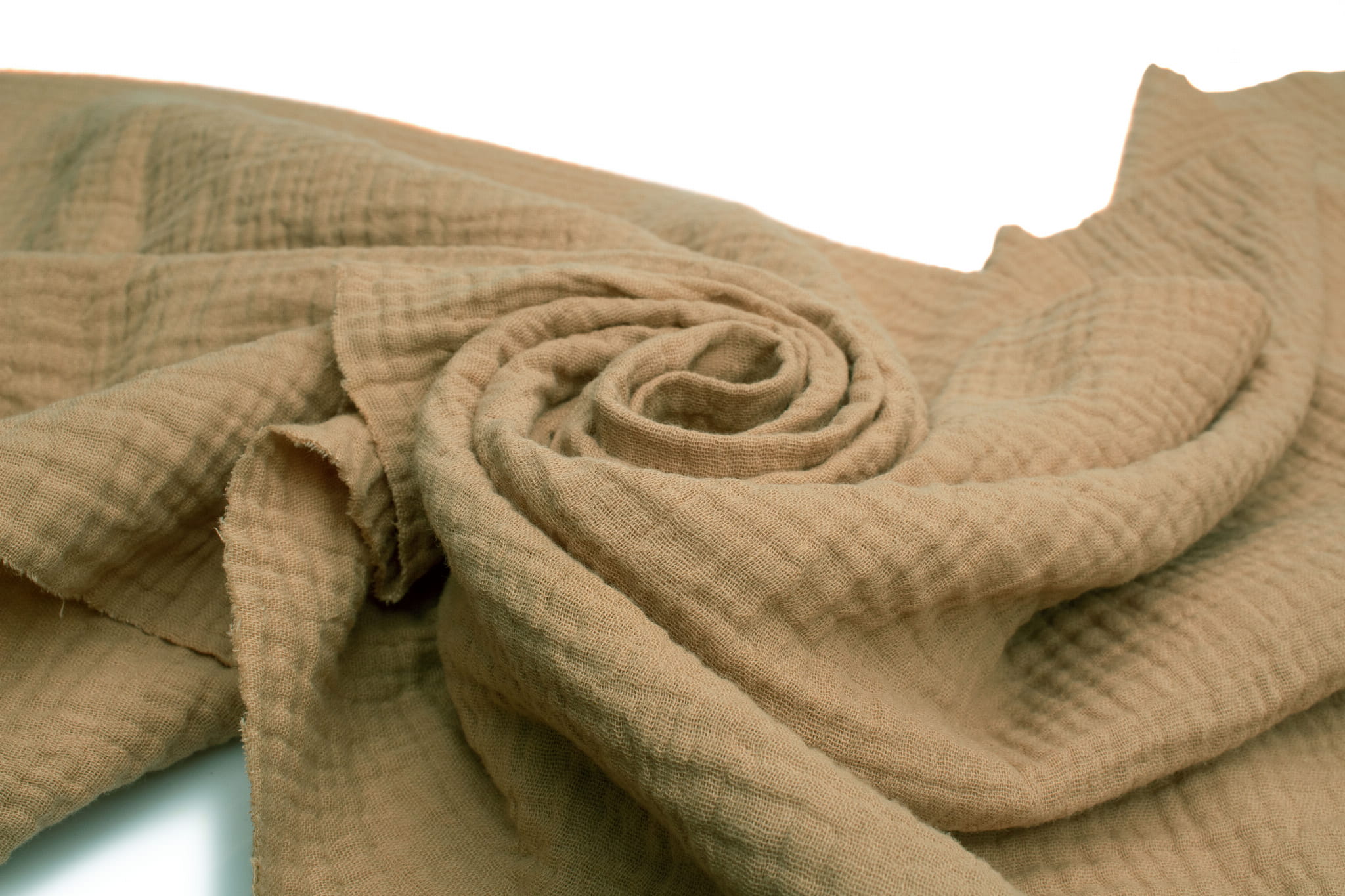 Musselin zeichnet sich durch außergewöhnliche Subtilität aus. Ursprünglich wurde es aus natürlichen Ressourcen hergestellt: Seide, Baumwolle, Leinen oder Wolle. Derzeit können Sie sich mit einer anderen Zusammensetzung treffen, aber die wünschenswerteste ist 100% Baumwolle. Wir können 3 Arten von Musselin unterscheiden: Single, Double und Triple Gaze, wobei die Namen die Anzahl der im Material vorhandenen Schichten angeben. Die einzelnen Lagen sind mit einer lockeren Leinenbindung gewebt und erzeugen durch ihre Verbindung eine charakteristische Faltenbildung des Stoffes. Double Gauze Baumwoll-Musselin ist dünn, leicht und sehr luftig. Dank zweier Materialschichten ist es blickdicht. Dieser Stoff ist sicher für die Haut: Seine natürliche Zusammensetzung verursacht keine Allergien, während die weichen Fasern keine Reizungen verursachen. Das Material sorgt für eine sehr gute Luftzirkulation und lässt die Haut an heißen Tagen atmen. Es ist hygroskopisch, was bedeutet, dass es viel Wasser aufnehmen kann, während es dank seiner lockeren Webart recht schnell trocknet. Die oben genannten Funktionen ermöglichen die breite Verwendung von Musselin.