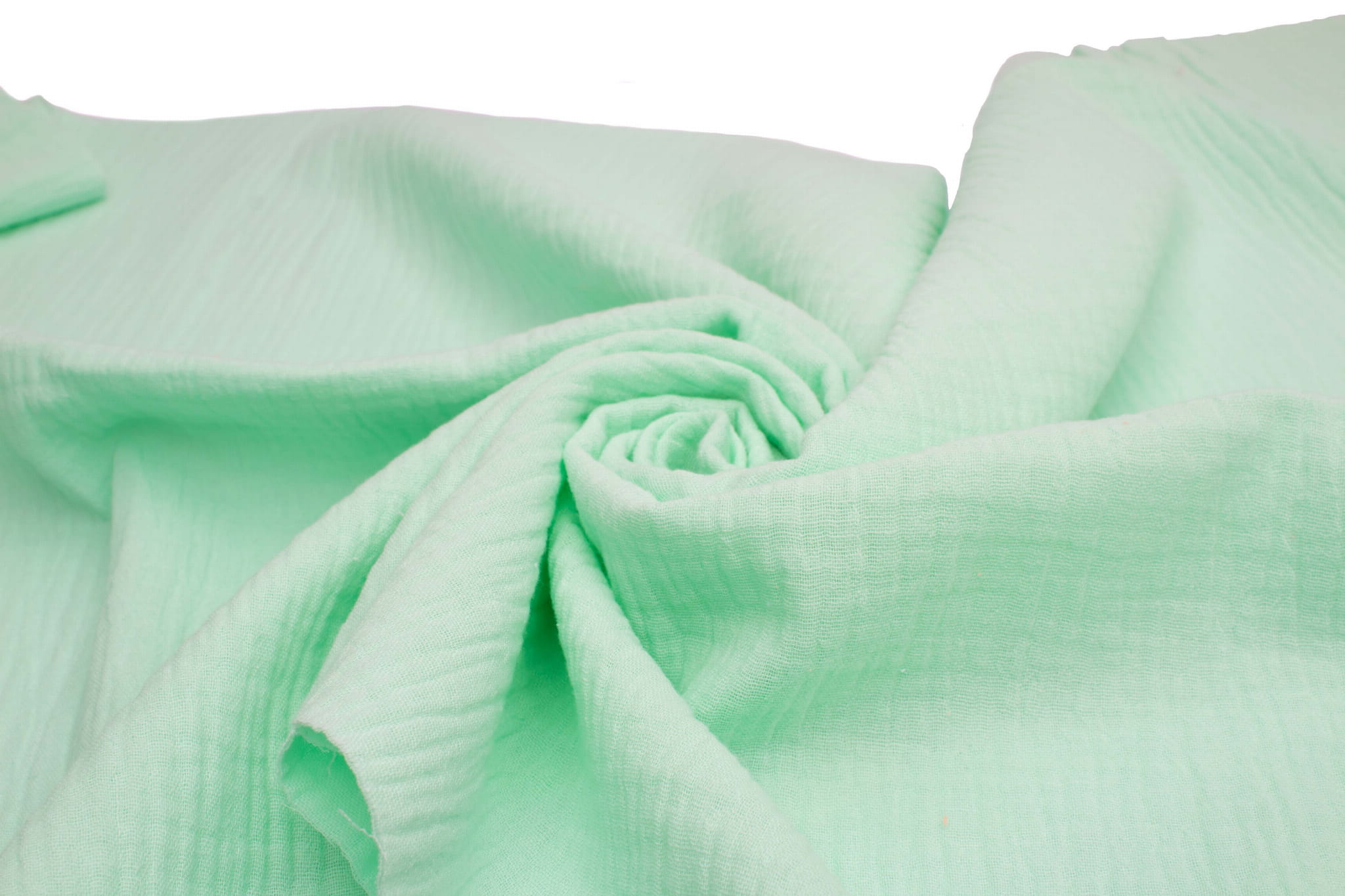 Musselin zeichnet sich durch außergewöhnliche Subtilität aus. Ursprünglich wurde es aus natürlichen Ressourcen hergestellt: Seide, Baumwolle, Leinen oder Wolle. Derzeit können Sie sich mit einer anderen Zusammensetzung treffen, aber die wünschenswerteste ist 100% Baumwolle. Wir können 3 Arten von Musselin unterscheiden: Single, Double und Triple Gaze, wobei die Namen die Anzahl der im Material vorhandenen Schichten angeben. Die einzelnen Lagen sind mit einer lockeren Leinenbindung gewebt und erzeugen durch ihre Verbindung eine charakteristische Faltenbildung des Stoffes. Double Gauze Baumwoll-Musselin ist dünn, leicht und sehr luftig. Dank zweier Materialschichten ist es blickdicht. Dieser Stoff ist sicher für die Haut: Seine natürliche Zusammensetzung verursacht keine Allergien, während die weichen Fasern keine Reizungen verursachen. Das Material sorgt für eine sehr gute Luftzirkulation und lässt die Haut an heißen Tagen atmen. Es ist hygroskopisch, was bedeutet, dass es viel Wasser aufnehmen kann, während es dank seiner lockeren Webart recht schnell trocknet. Die oben genannten Funktionen ermöglichen die breite Verwendung von Musselin.