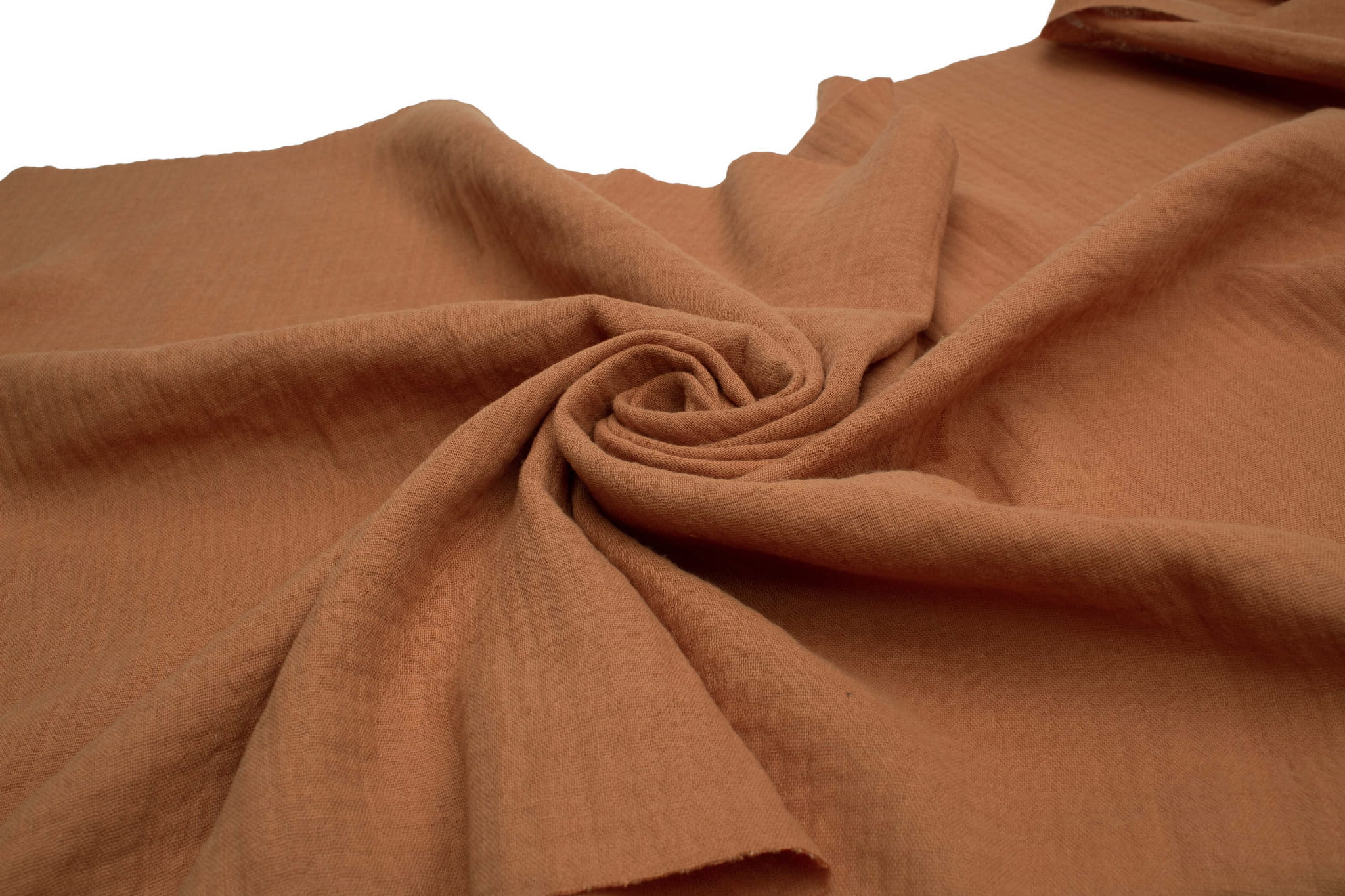 Musselin zeichnet sich durch außergewöhnliche Subtilität aus. Ursprünglich wurde es aus natürlichen Ressourcen hergestellt: Seide, Baumwolle, Leinen oder Wolle. Derzeit können Sie sich mit einer anderen Zusammensetzung treffen, aber die wünschenswerteste ist 100% Baumwolle. Wir können 3 Arten von Musselin unterscheiden: Single, Double und Triple Gaze, wobei die Namen die Anzahl der im Material vorhandenen Schichten angeben. Die einzelnen Lagen sind mit einer lockeren Leinenbindung gewebt und erzeugen durch ihre Verbindung eine charakteristische Faltenbildung des Stoffes. Double Gauze Baumwoll-Musselin ist dünn, leicht und sehr luftig. Dank zweier Materialschichten ist es blickdicht. Dieser Stoff ist sicher für die Haut: Seine natürliche Zusammensetzung verursacht keine Allergien, während die weichen Fasern keine Reizungen verursachen. Das Material sorgt für eine sehr gute Luftzirkulation und lässt die Haut an heißen Tagen atmen. Es ist hygroskopisch, was bedeutet, dass es viel Wasser aufnehmen kann, während es dank seiner lockeren Webart recht schnell trocknet. Die oben genannten Funktionen ermöglichen die breite Verwendung von Musselin.