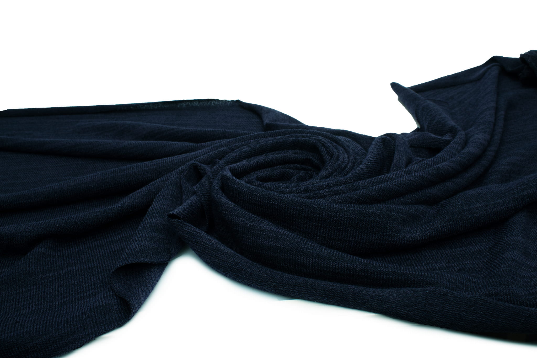 Ein Hacci ist ein Textilprodukt, das aus Reihen miteinander verbundener Ösen hergestellt wird. Das Garn in der Strickware hat eine sehr große Kerbe, wodurch die Strickware sehr elastisch und in alle Richtungen dehnbar ist. Das Material fühlt sich äußerst angenehm an. Dank dünner Fasern verleiht das Gewebe ihm Zartheit und Elastizität.
