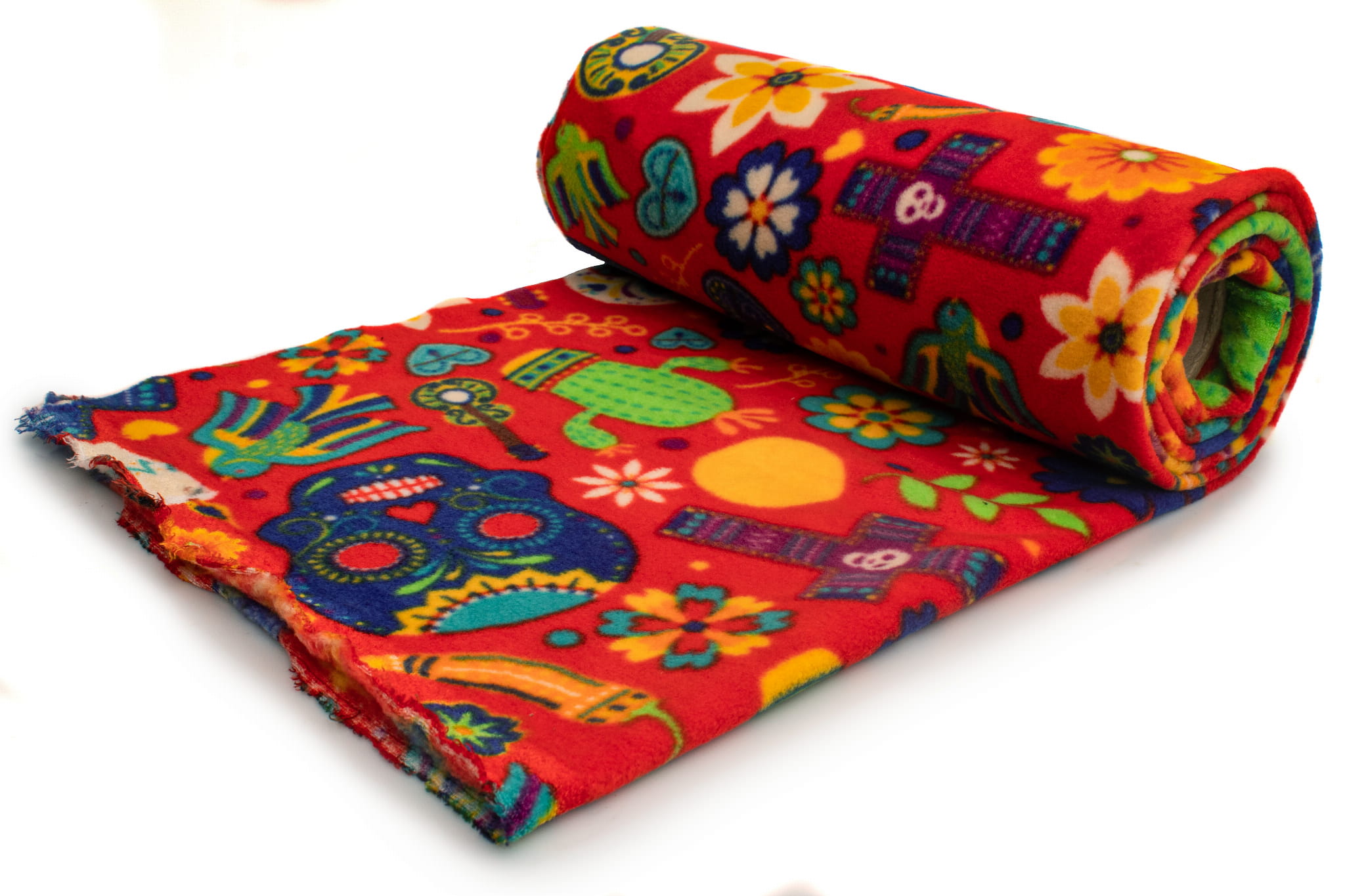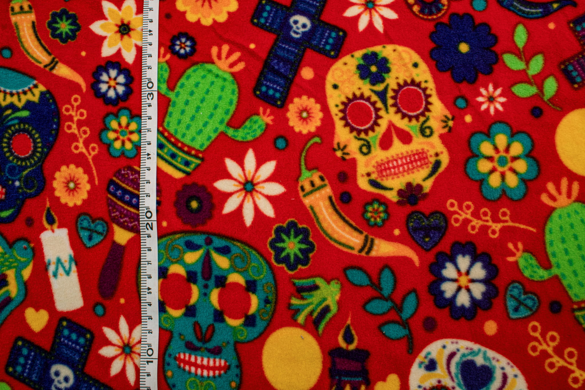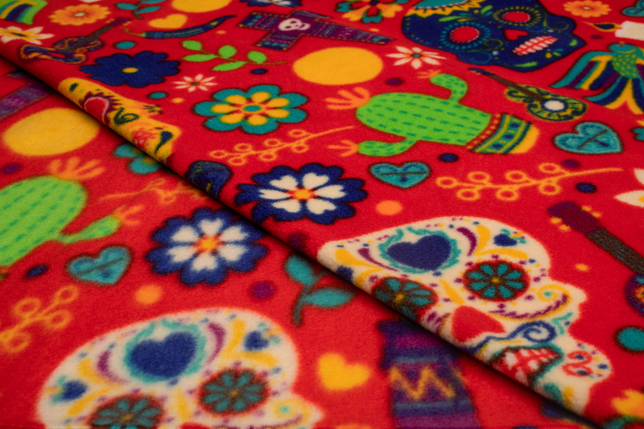 Fleece DTY gedruckt, Dia de Muertos, Rot