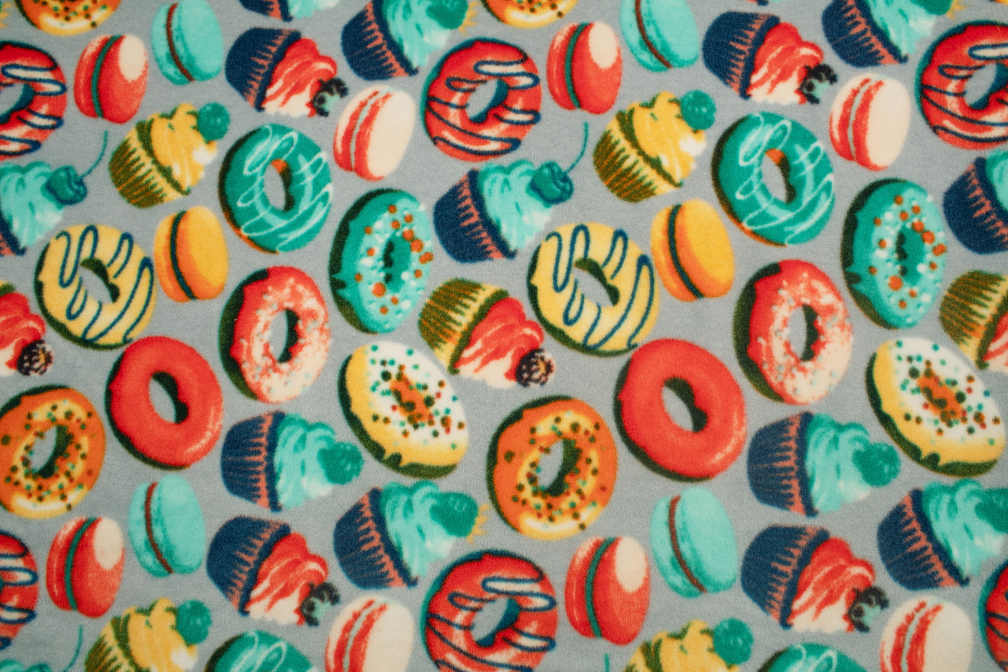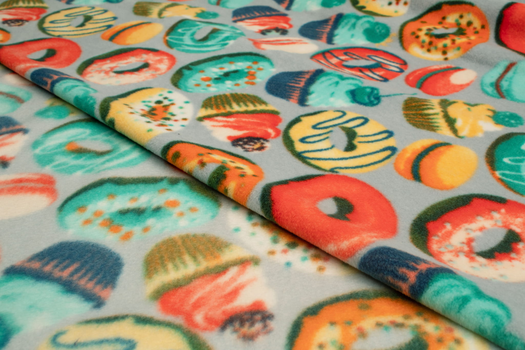 Fleece DTY gedruckt, Donuts, Grau