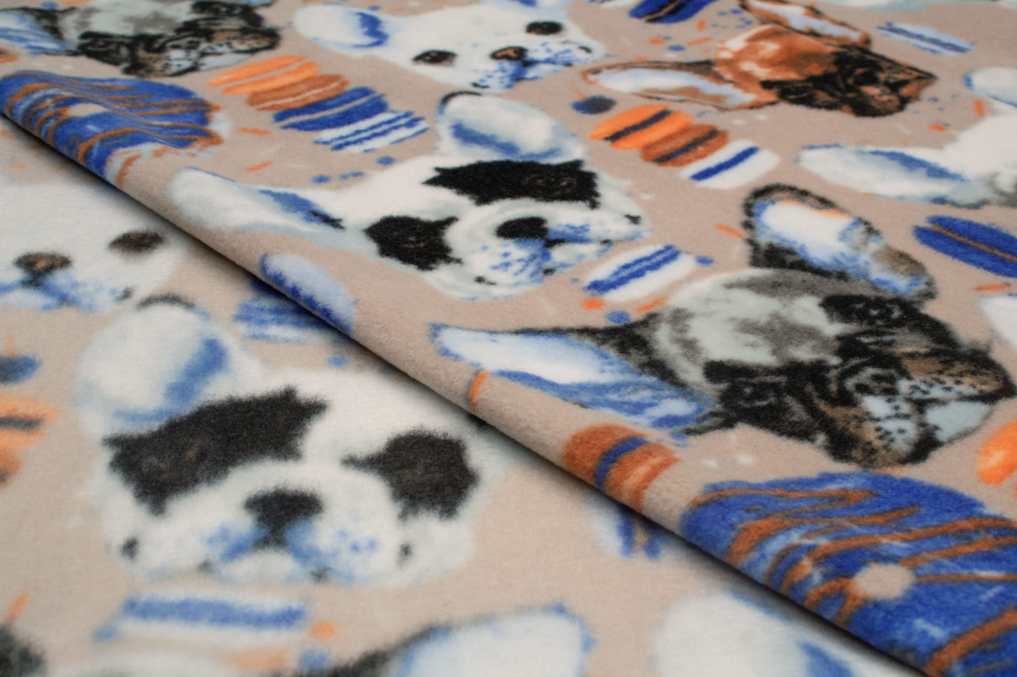 Fleece DTY gedruckt, Französische Bulldoggen, Blau