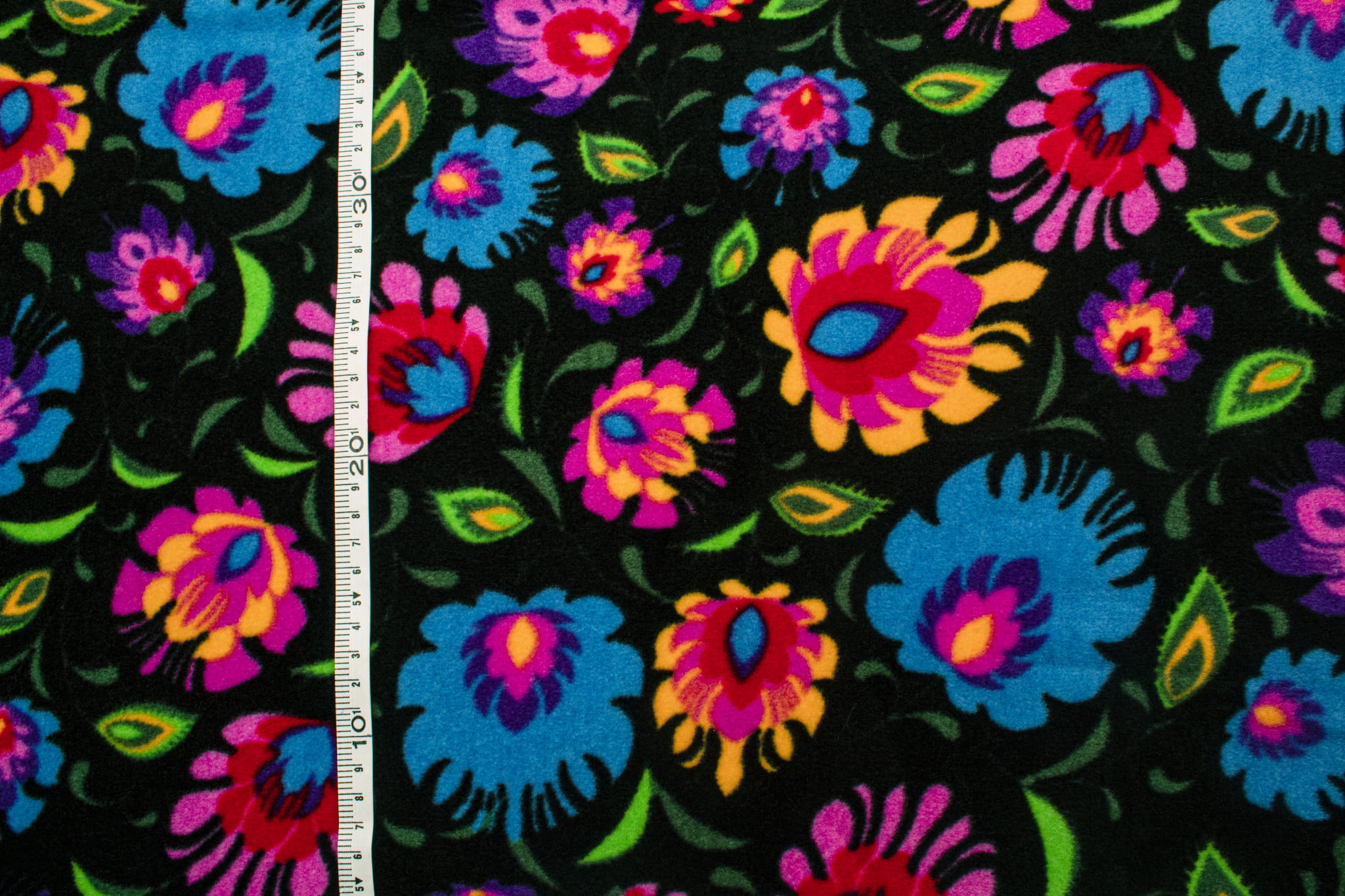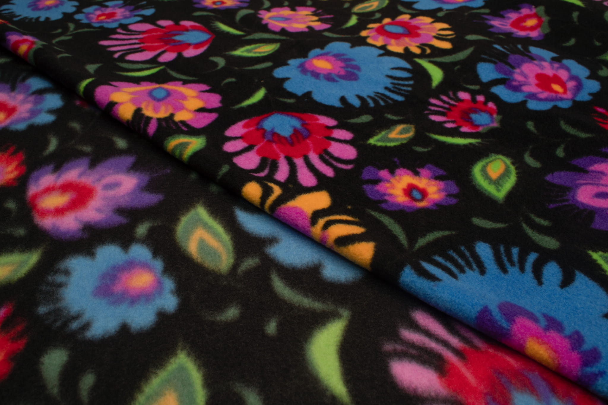 Fleecestoff besteht aus Polyester-Kunstfasern. Künstliche Fasern verleihen dem Stoff hydrophobe Eigenschaften sowie eine hohe Knitterfestigkeit und hohe Elastizität. Durch diese Eigenschaften trocknet das Vlies sehr schnell und muss nicht gebügelt werden. Der wichtigste Vorteil von Fleece ist jedoch der hervorragende Kälteschutz. Dieses bedruckte Fleece wurde mit der DTY-Technologie hergestellt, sodass wir Ihnen ein hochwertigeres Material anbieten können. DTY-Fleece hat eine glattere und weichere Textur als klassisches Fleece. Es pillt nicht, ist sehr widerstandsfähig und langlebig. Der Stoff erstreckt sich über die Breite. Das Fleece ist mit einem haltbaren Aufdruck mit Volksmustern aus Łowicz verziert. Die Farben sind sehr vielfältig und intensiv. Der Druck erfolgt auf beiden Seiten, allerdings ist zwischen der linken und rechten Stoffseite ein deutlich sichtbarer Unterschied zu erkennen. Erhältlich in 3 Farbversionen.