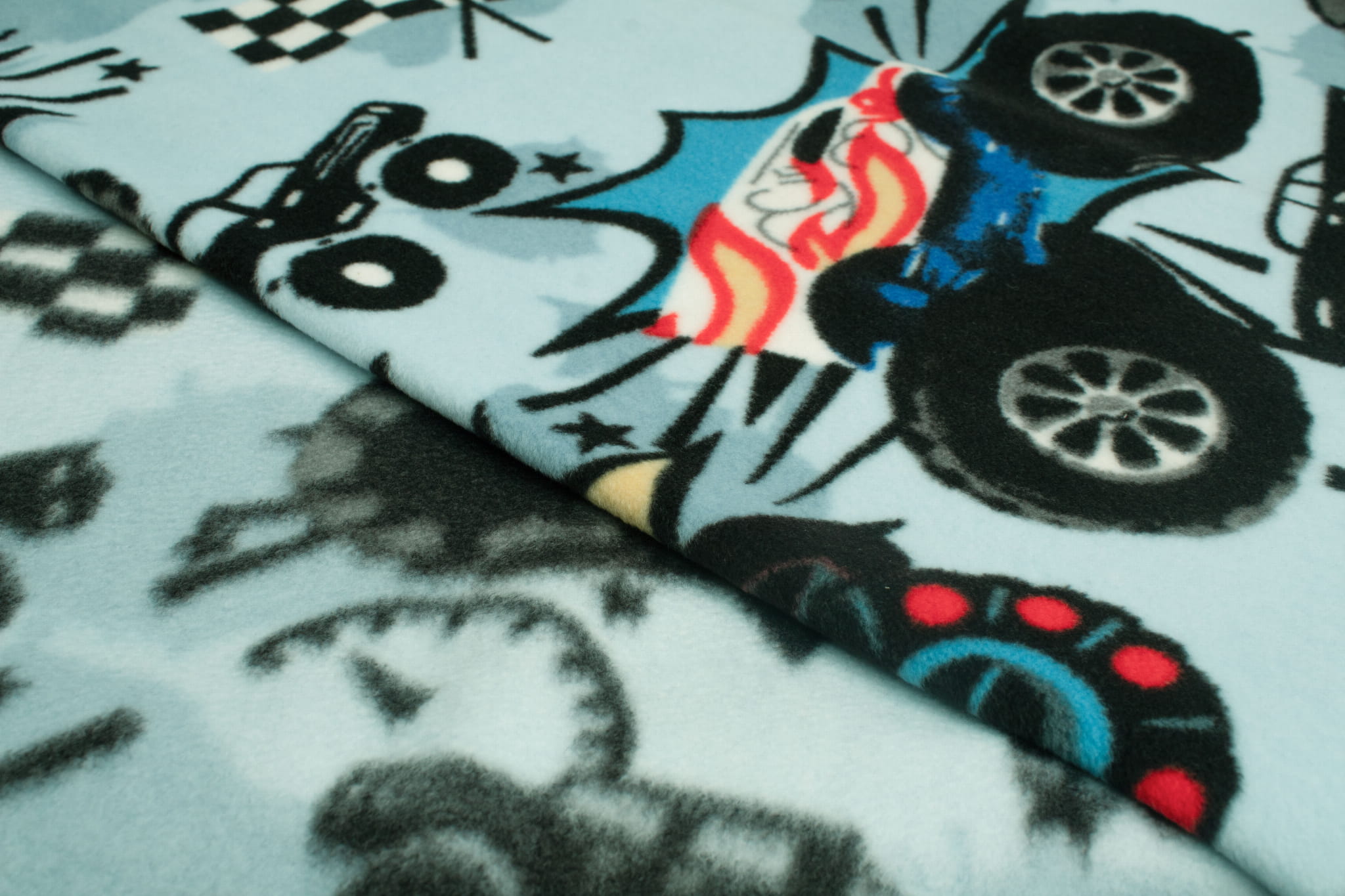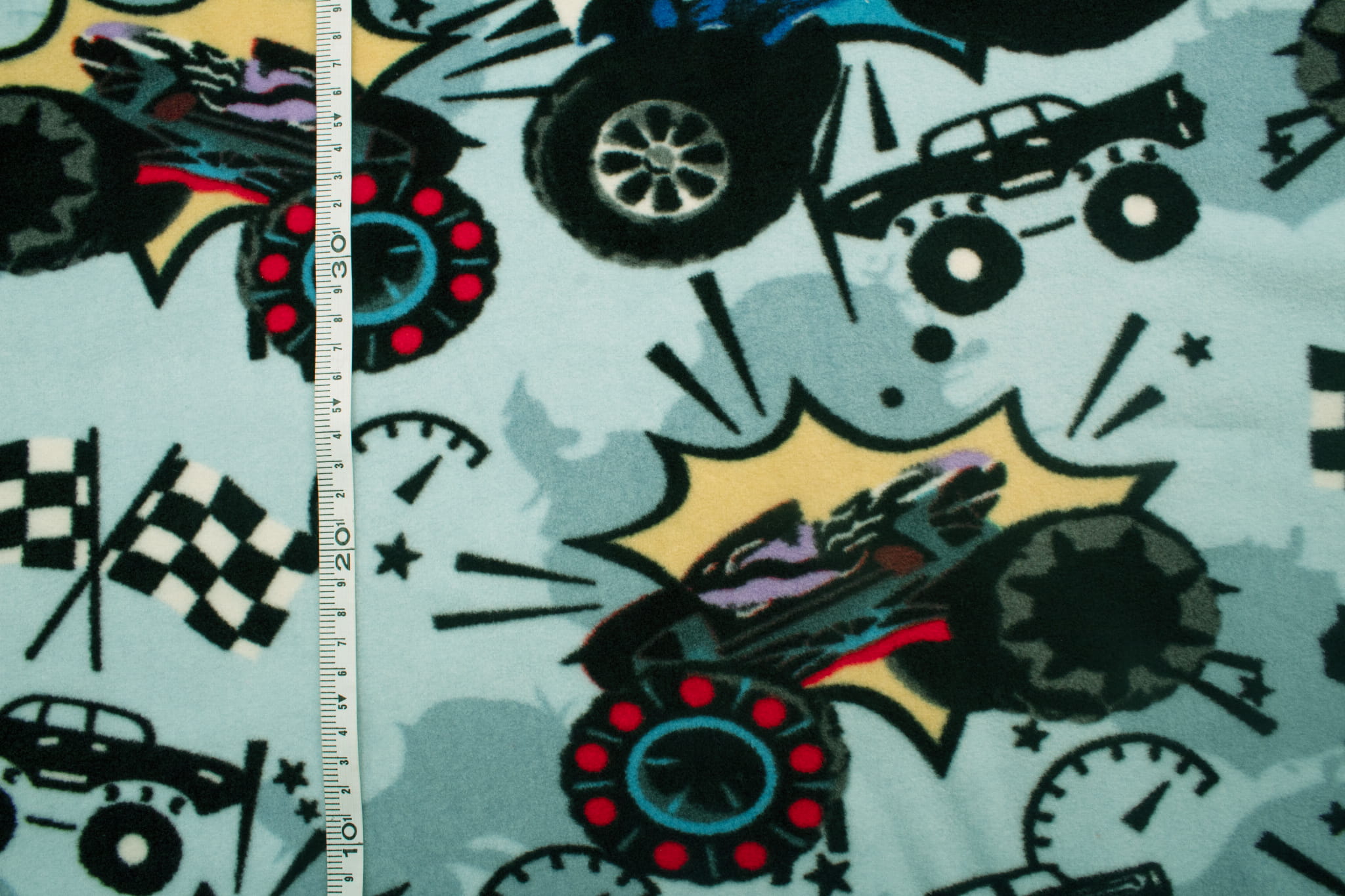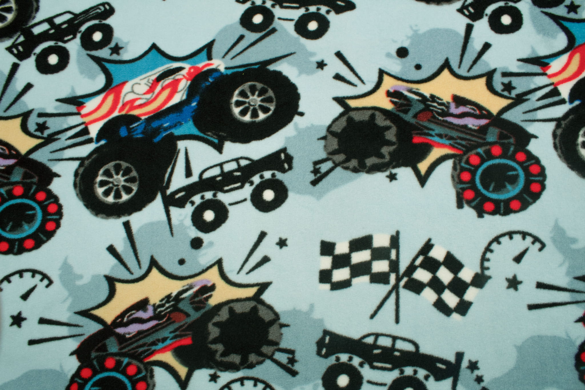 Fleece DTY gedruckt, Monster Truck, Hellblau