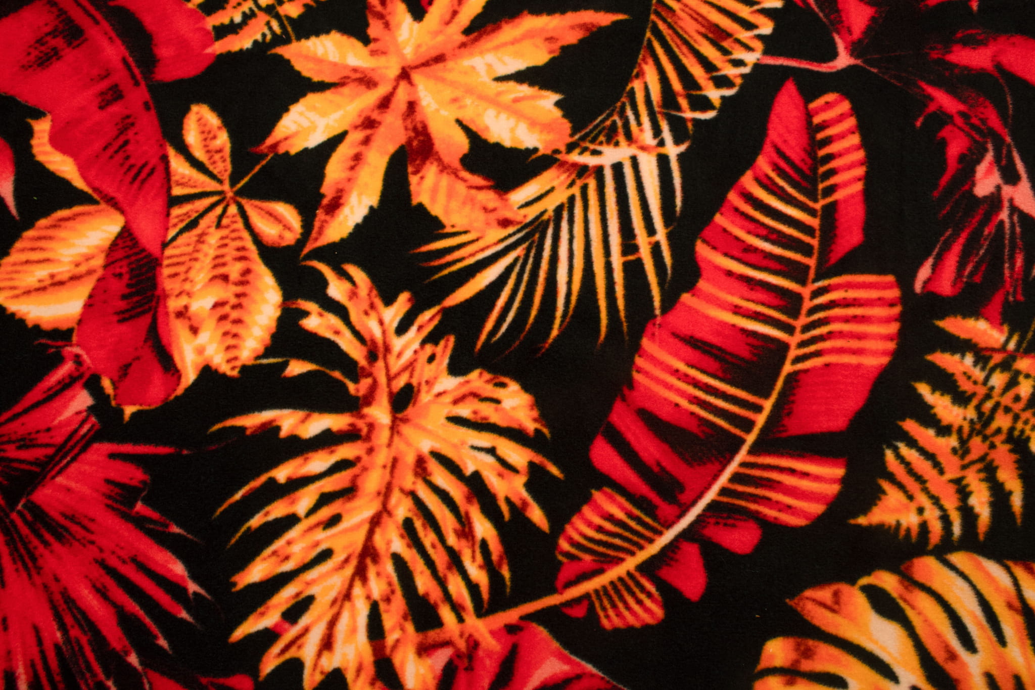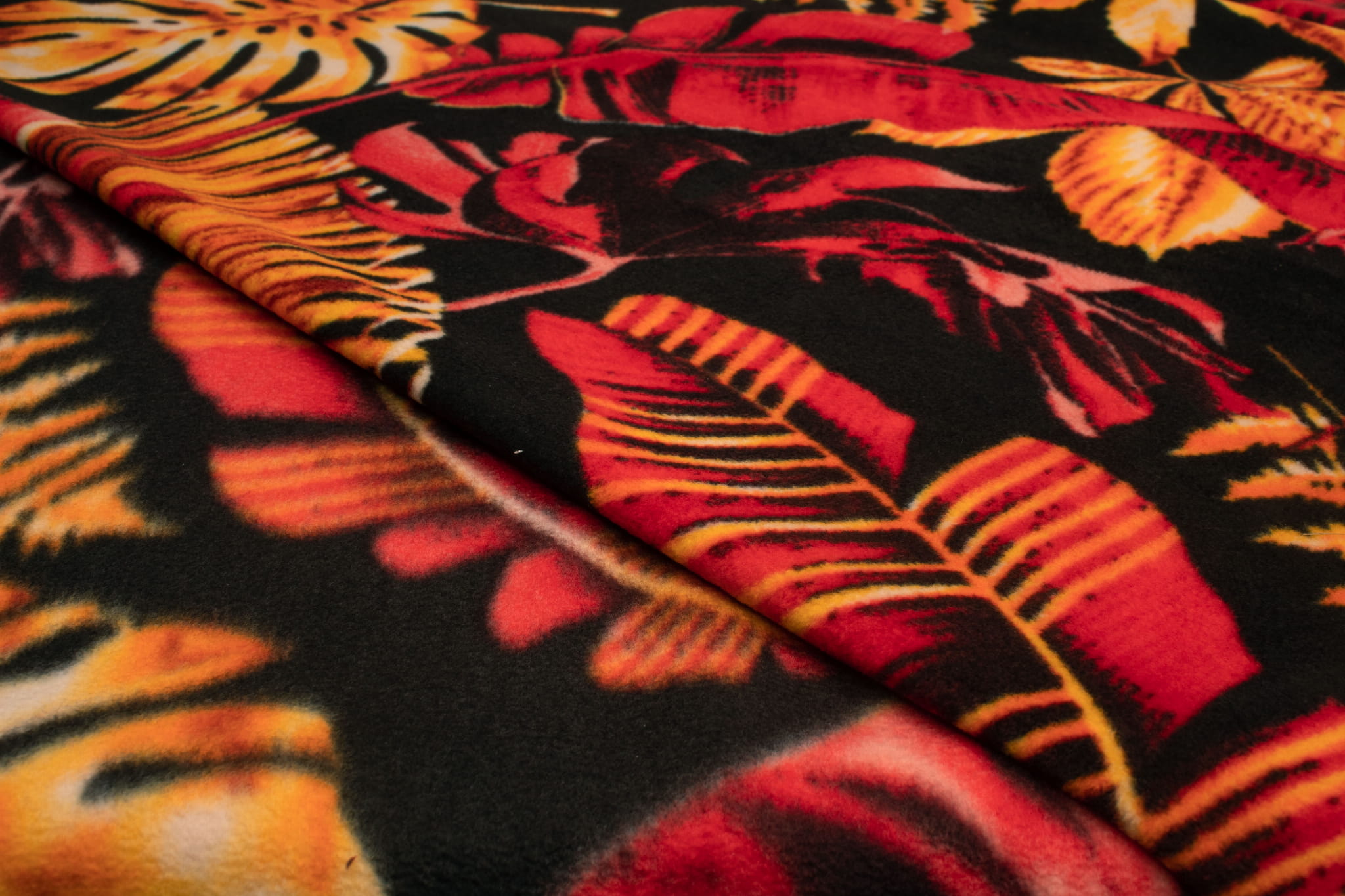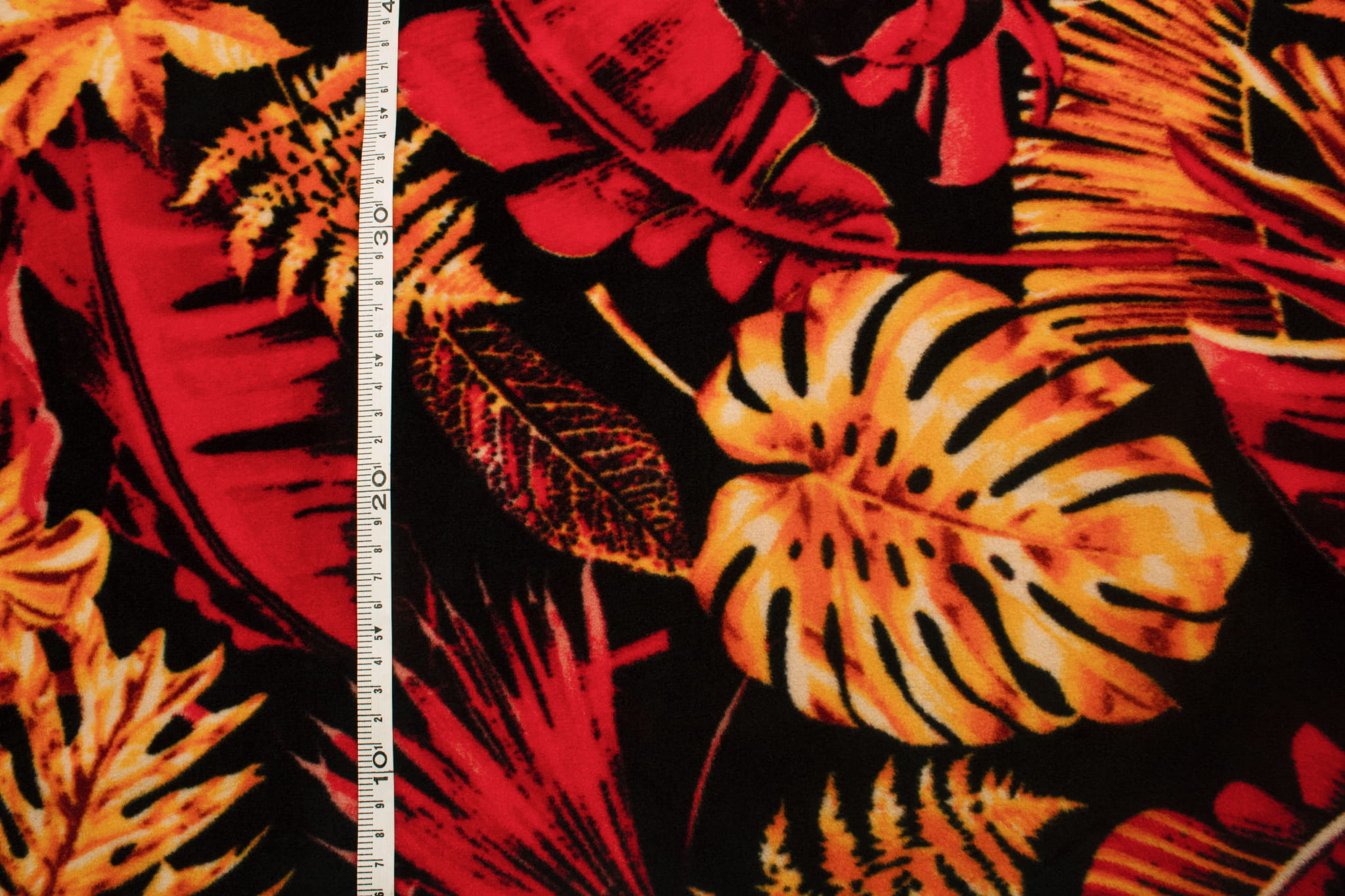 Fleece DTY gedruckt, Monstera, Rot