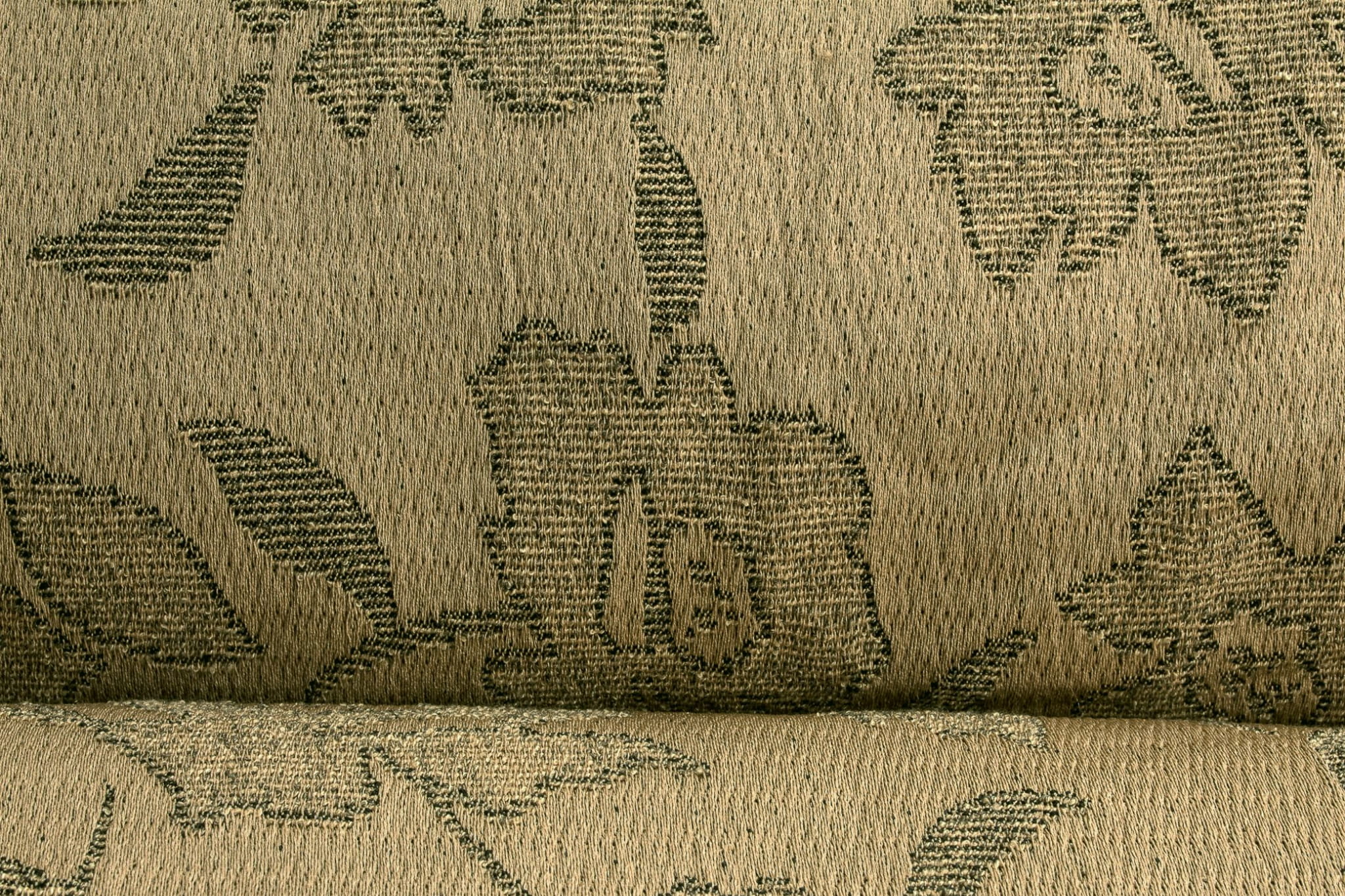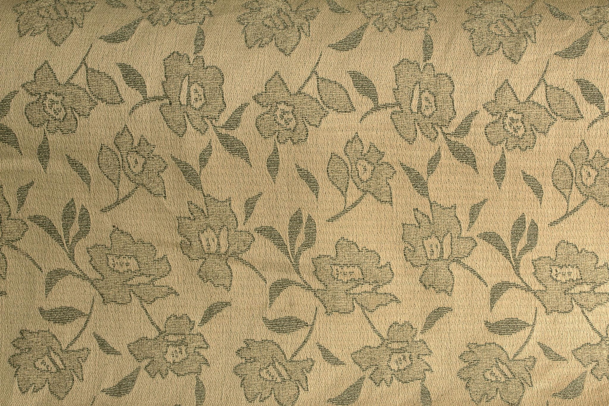 Gemusterter Stoff von mittleren Dicke, mit einem Jacquard-Gewebe gewebt. Die Mehrfarbigkeit des Gewebes wurde unter Verwendung der Kette und des Schusses von zwei verschiedenen Farben erhalten. Im Falle der Farbe Burgund und Pink Der Schussfaden ist hellgelb (die Fotos spiegeln diese Farbe nicht vollständig wider). Bunte Fäden erzeugen ein Blumenmuster. Der Stoff ist haltbar, nicht dehnbar, knittert nicht. Sehr abriebfest.