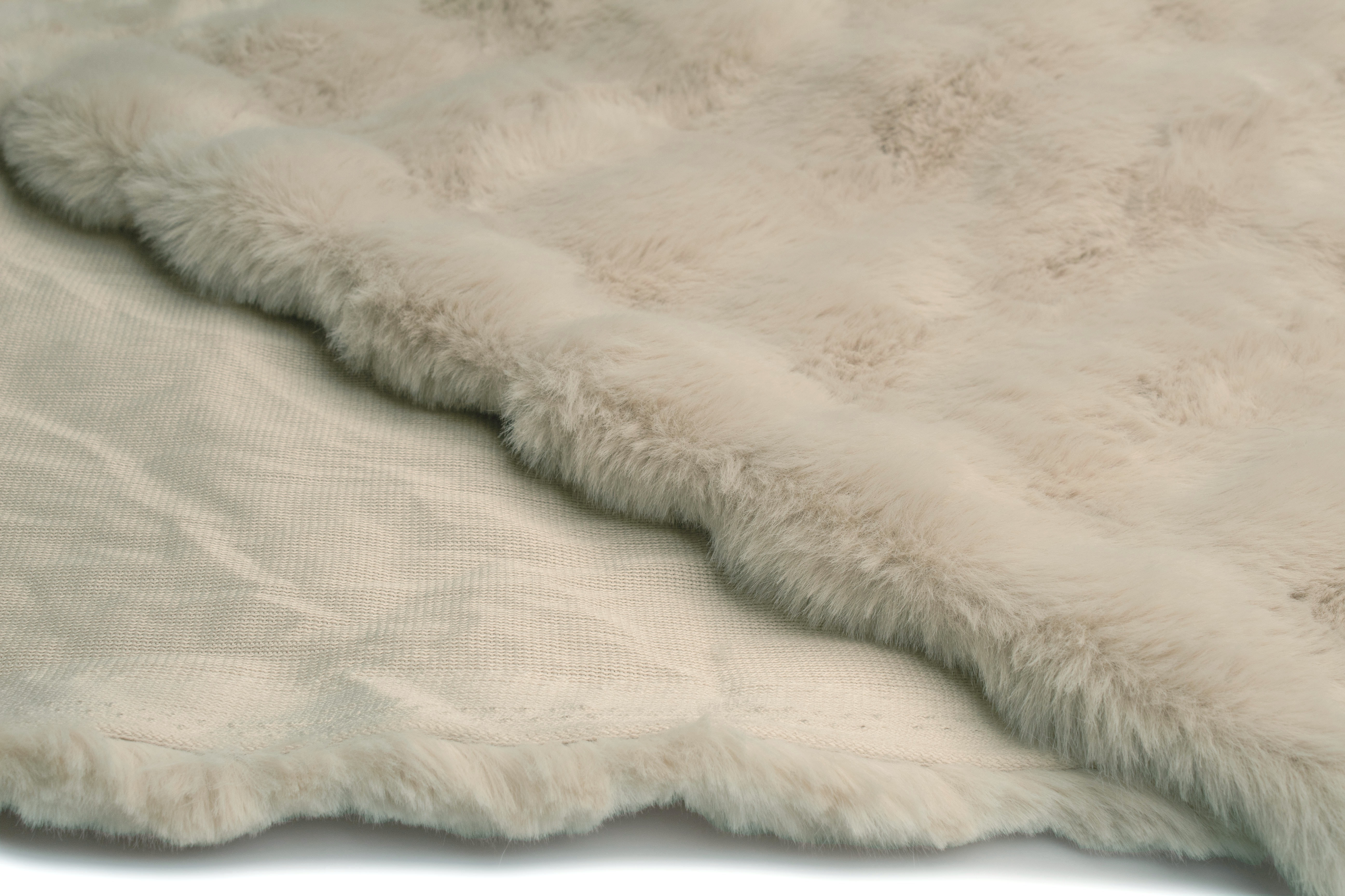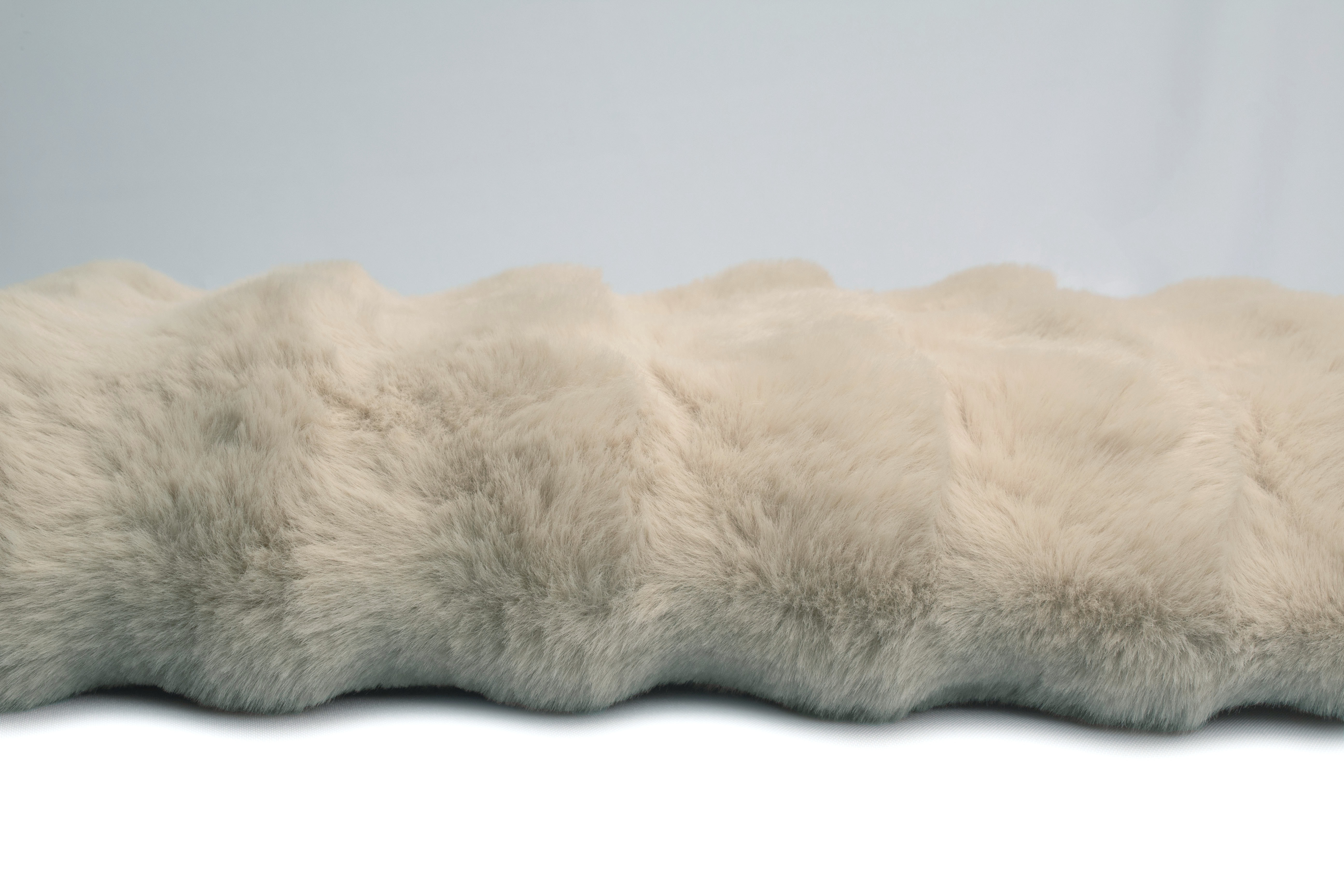 Blasenfell ist ein einzigartiger Artikel in unserem Angebot. Das Haar ist dick, fleischig und das Material selbst ist ziemlich schwer. Das Material dehnt sich über die gesamte Breite. Hergestellt aus Polyesterfasern zeichnet es sich vor allem durch eine sehr gute Wärmedämmung aus und ist zudem hydrophob. Das Material ist einseitig – auf der Oberseite ist Fell, auf der Unterseite ist es glatt. Sehr angenehme Haptik. Sein einzigartiges Aussehen verdankt es der Beschaffenheit der Borsten. Das Fell wurde in eine regelmäßige Form geschnitten, wodurch charakteristische Vorsprünge – Blasen – entstehen.