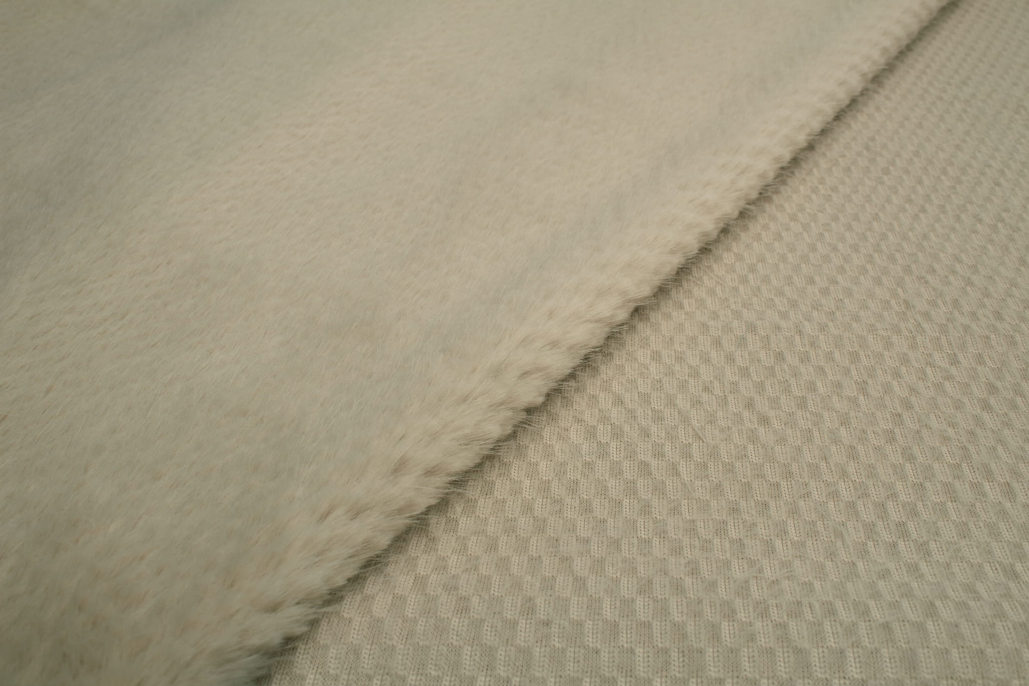 Kunstpelz ist ein gestrickter Stoff aus Polyesterfasern. Sie zeichnet sich vor allem durch eine sehr gute Wärmedämmung und eine weiche und äußerst kuschelige Beschaffenheit des Materials aus. Seine Struktur ähnelt einer Wabe - charakteristische Würfel sind sichtbar. Das Fell ist sehr dicht, aber nicht gleich lang – längere, einzelne Strähnen treten regelmäßig auf. Das Material ist einseitig - Fell ist nur auf der Oberseite, nicht auf der Unterseite.