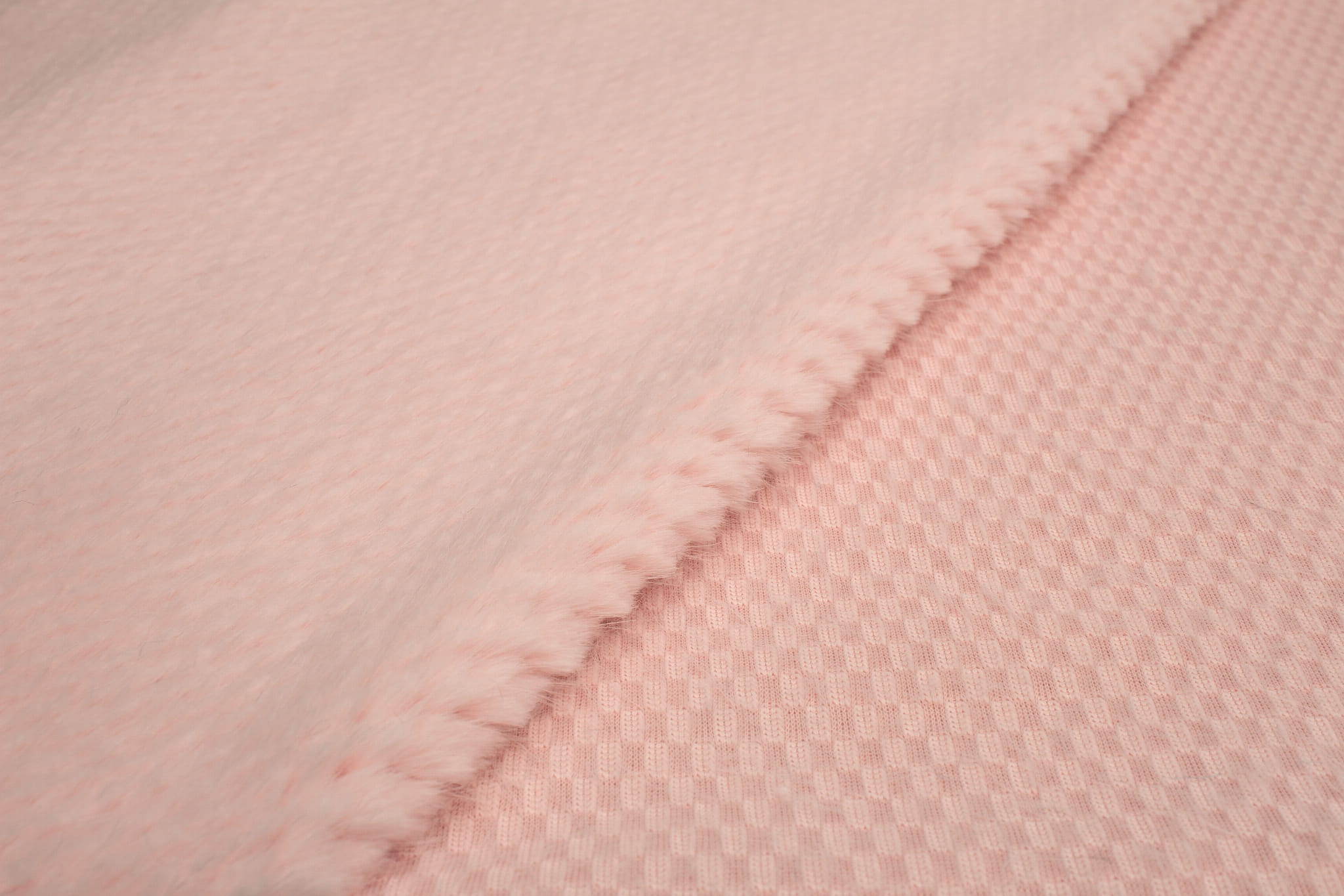 Kunstpelz ist ein gestrickter Stoff aus Polyesterfasern. Sie zeichnet sich vor allem durch eine sehr gute Wärmedämmung und eine weiche und äußerst kuschelige Beschaffenheit des Materials aus. Seine Struktur ähnelt einer Wabe - charakteristische Würfel sind sichtbar. Das Fell ist sehr dicht, aber nicht gleich lang – längere, einzelne Strähnen treten regelmäßig auf. Das Material ist einseitig - Fell ist nur auf der Oberseite, nicht auf der Unterseite.