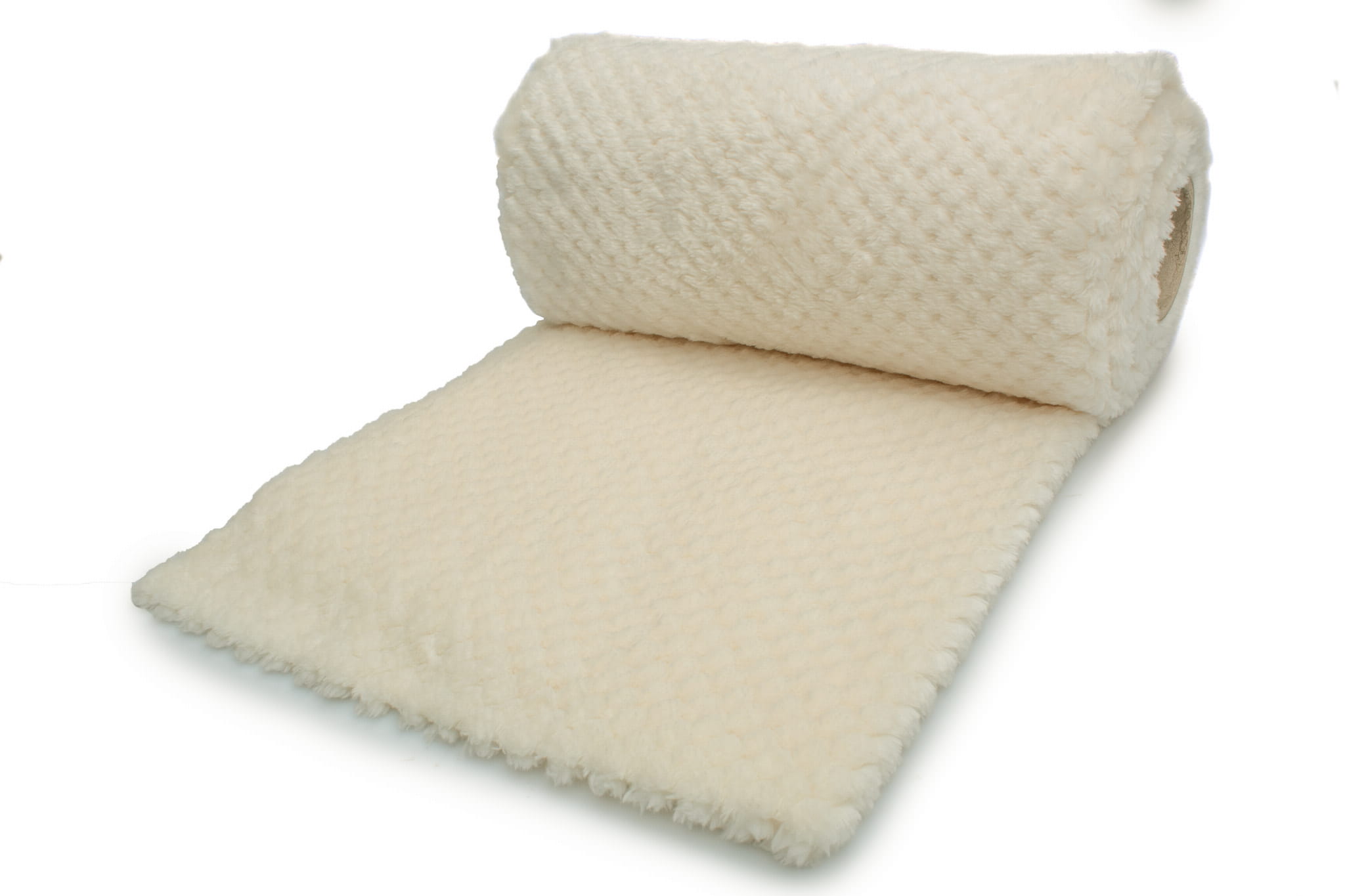 Ricky Ananas ist ein Gestrick aus Polyesterfasern. Dieser extrem weiche Stoff wird durch das Weben von Büscheln aus weichem Fell zwischen Garnfäden hergestellt. Das Fell wird in einem Schachbrettmuster hinzugefügt, wodurch eine charakteristische rautenförmige Textur entsteht, die der Oberfläche einer Ananas ähnelt. Lange Borsten auf beiden Seiten des Materials schaffen eine weiche und äußerst kuschelige Oberfläche, die vielseitig eingesetzt werden kann. Strickware zeichnet sich durch eine sehr gute Wärmeisolierung aus, sie ist dicht, dick, fleischig und leicht zugleich. Der unbestrittene Vorteil von Ricky Ananas ist, dass das Material nicht knittert und nicht pillt. Es kann problemlos in der Waschmaschine gewaschen werden - es verliert weder seine Farbe noch seine Flauschigkeit.