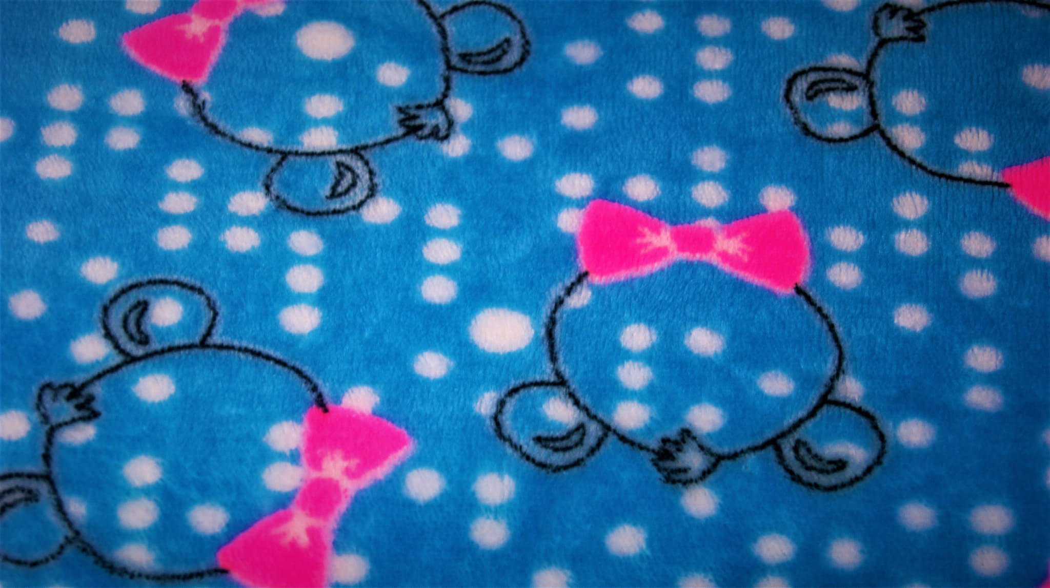 Polar Minky Plush ist eine Strickware aus Polyesterfasern. Lange Borsten auf beiden Seiten des Stoffes sorgen für eine weiche und äußerst kuschelige Textur. Plüsch ist sehr warm und fühlt sich angenehm an. Lange Borsten und der Druck erscheinen auf beiden Seiten des Materials, es gibt jedoch einen sichtbaren Unterschied zwischen der rechten und der linken Seite des Strickstoffs.
