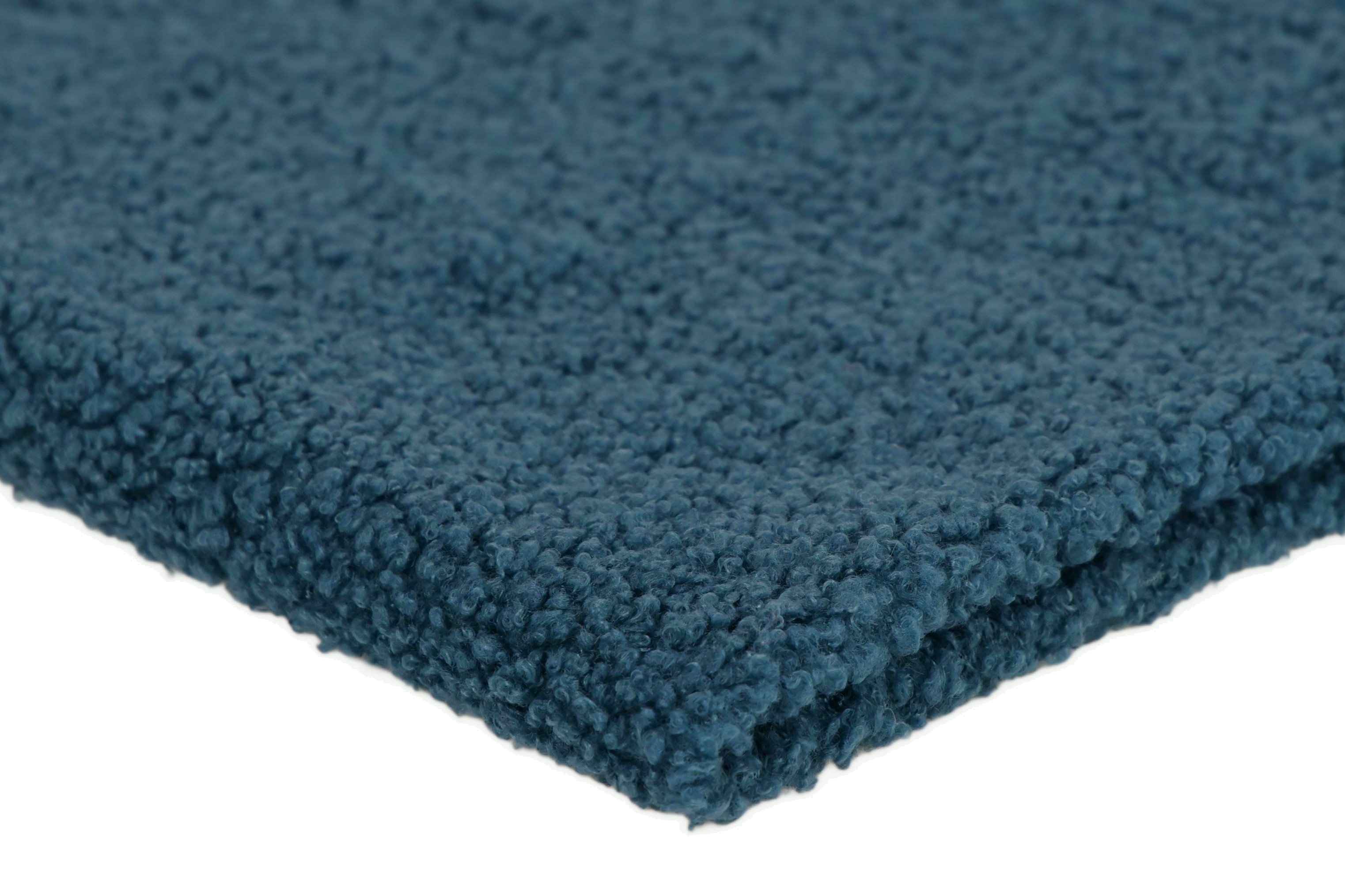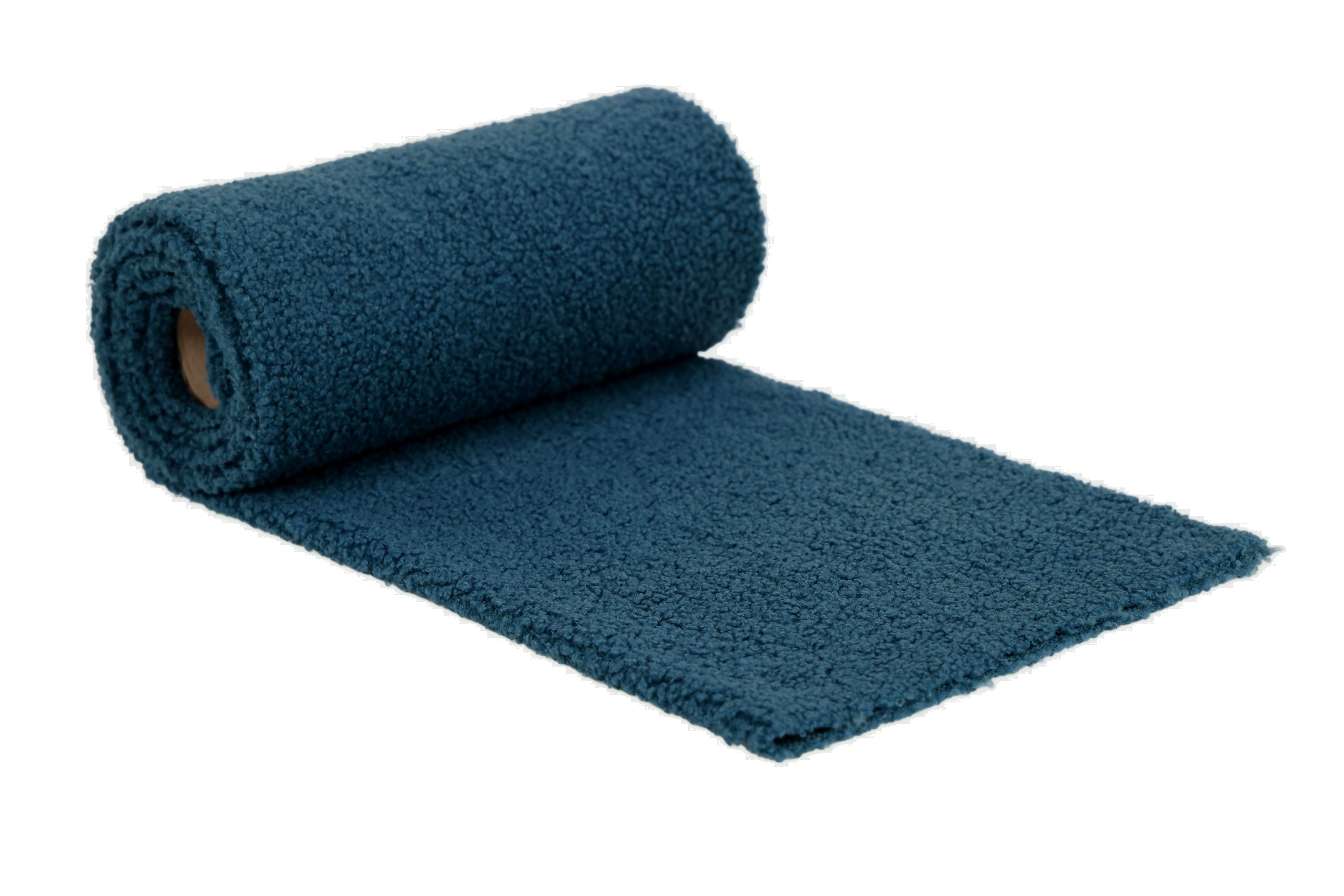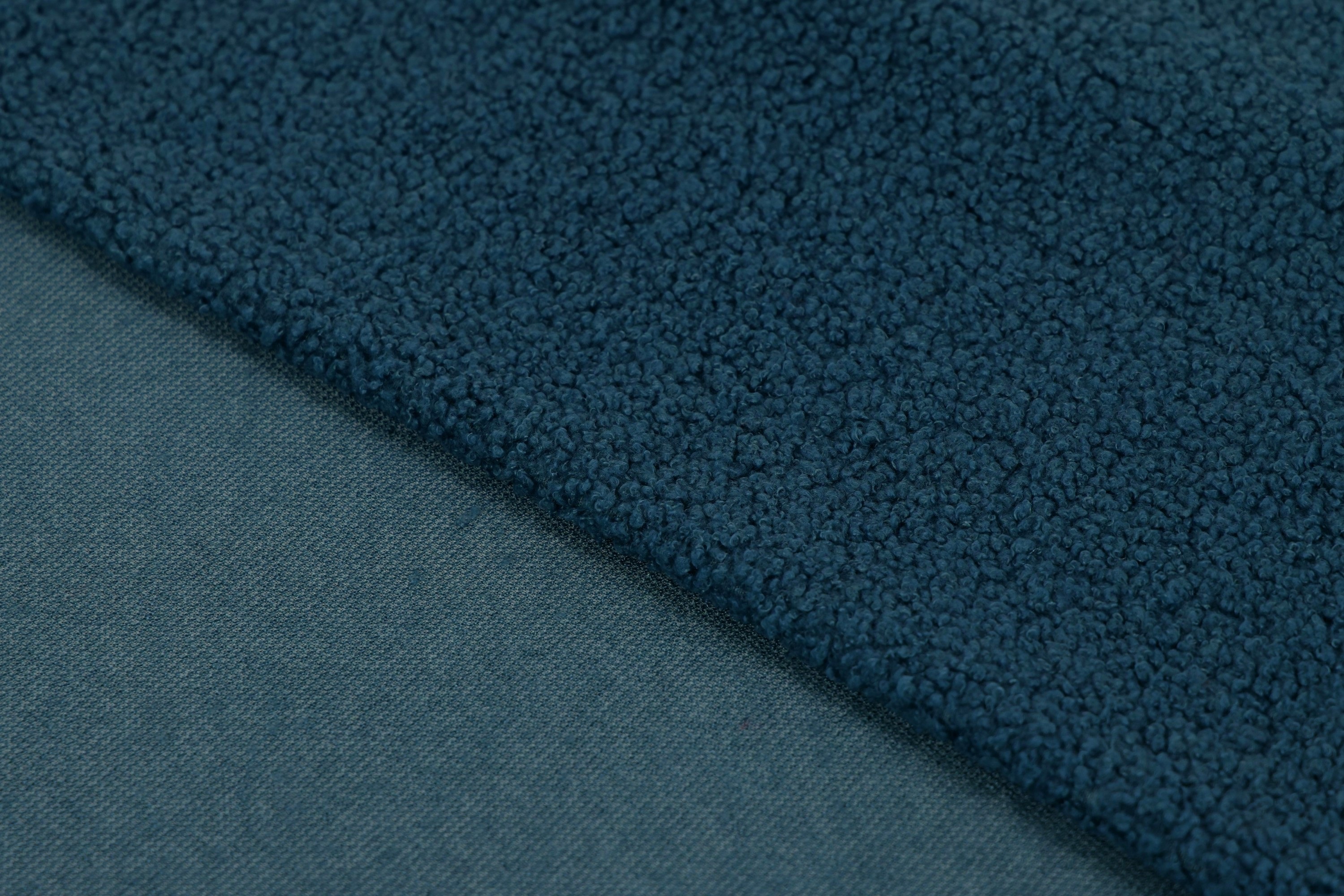 Minky Lamm Boucle ist extrem weich und zart. Das Material ist in der Breite stark dehnbar und in der Länge leicht dehnbar. Hergestellt aus Polyesterfasern zeichnet es sich vor allem durch eine sehr gute Wärmedämmung aus und ist zudem hydrophob. Das Material ist einseitig – auf der Außenseite ähnelt die Textur einem Schaffell, auf der Unterseite ist es glatt. Es ist sehr angenehm zu berühren. Es unterscheidet sich vom Minky-Lamm in der Art und Weise, wie sein Fell verarbeitet ist. Hier haben wir lockige Schlaufen, während das Haar bei Sherpa gebürstet und flauschiger ist.