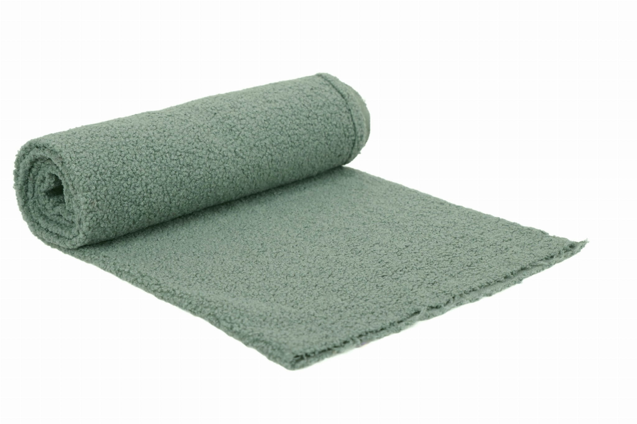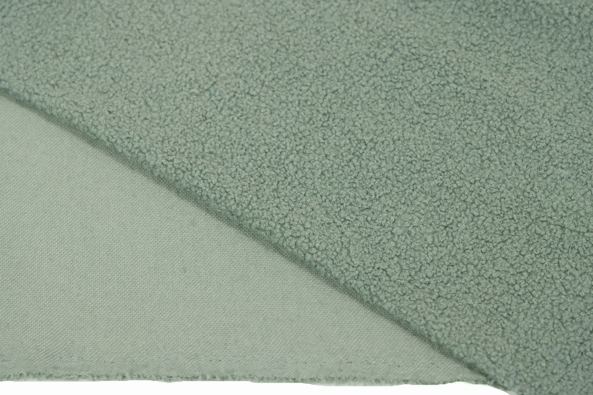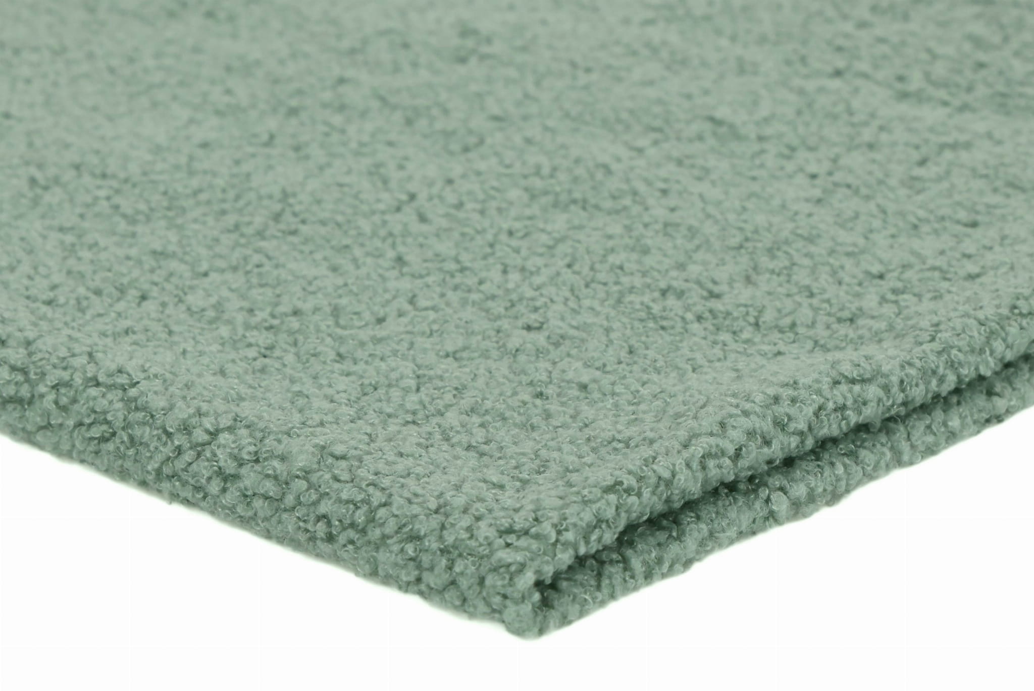 Minky Lamm Boucle ist extrem weich und zart. Das Material ist in der Breite stark dehnbar und in der Länge leicht dehnbar. Hergestellt aus Polyesterfasern zeichnet es sich vor allem durch eine sehr gute Wärmedämmung aus und ist zudem hydrophob. Das Material ist einseitig – auf der Außenseite ähnelt die Textur einem Schaffell, auf der Unterseite ist es glatt. Es ist sehr angenehm zu berühren. Es unterscheidet sich vom Minky-Lamm in der Art und Weise, wie sein Fell verarbeitet ist. Hier haben wir lockige Schlaufen, während das Haar bei Sherpa gebürstet und flauschiger ist.