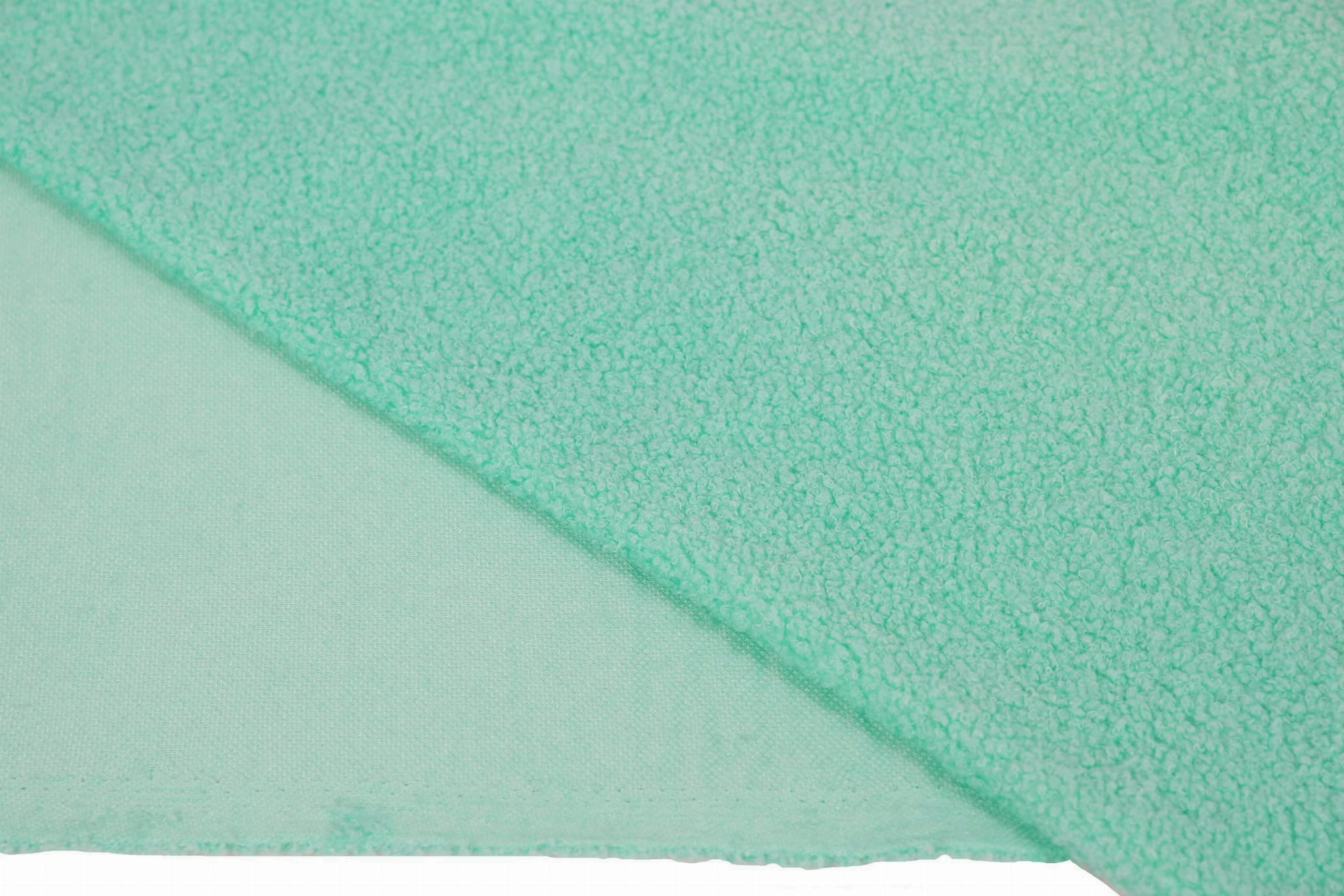 Minky Lamm Boucle ist extrem weich und zart. Das Material ist in der Breite stark dehnbar und in der Länge leicht dehnbar. Hergestellt aus Polyesterfasern zeichnet es sich vor allem durch eine sehr gute Wärmedämmung aus und ist zudem hydrophob. Das Material ist einseitig – auf der Außenseite ähnelt die Textur einem Schaffell, auf der Unterseite ist es glatt. Es ist sehr angenehm zu berühren. Es unterscheidet sich vom Minky-Lamm in der Art und Weise, wie sein Fell verarbeitet ist. Hier haben wir lockige Schlaufen, während das Haar bei Sherpa gebürstet und flauschiger ist.