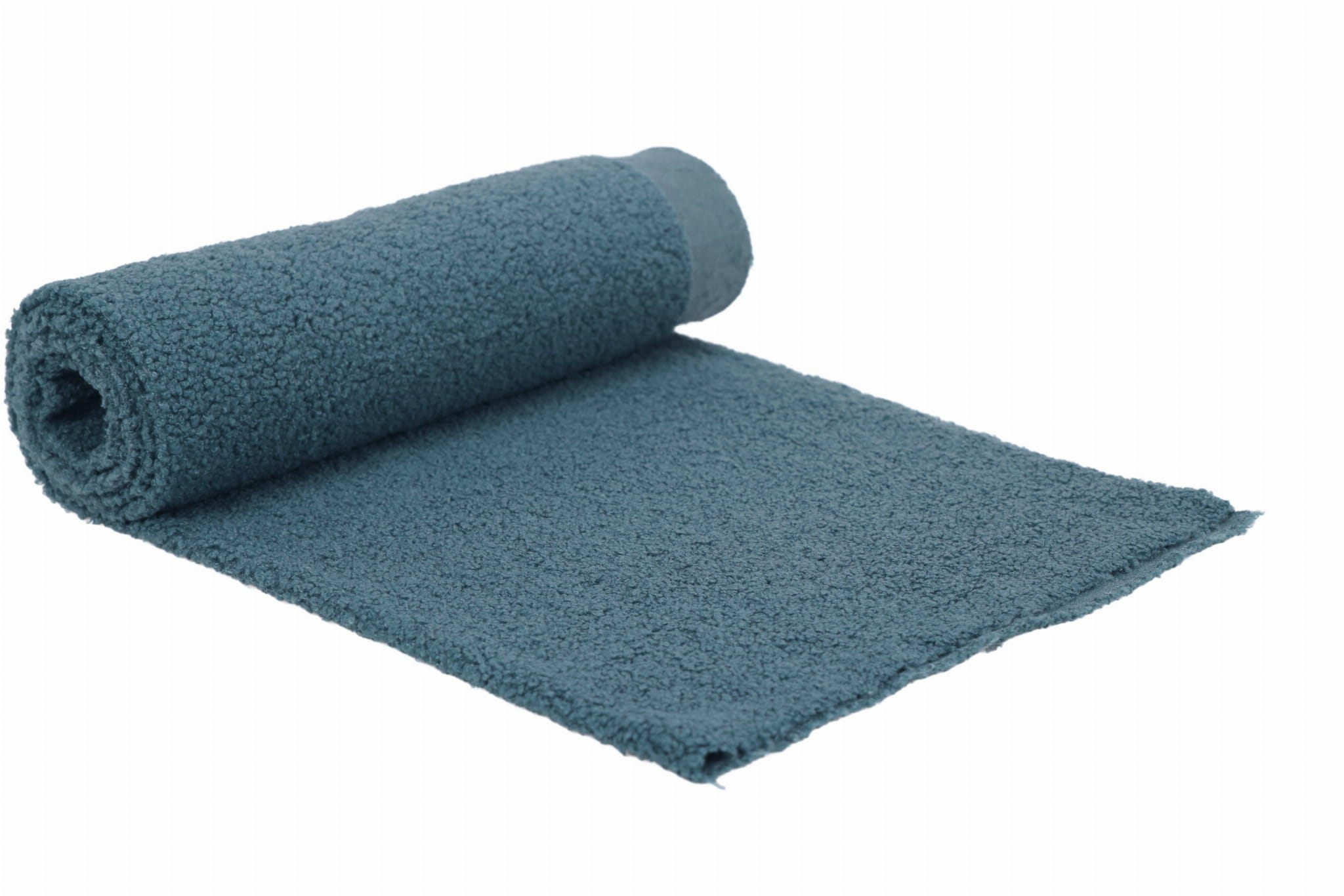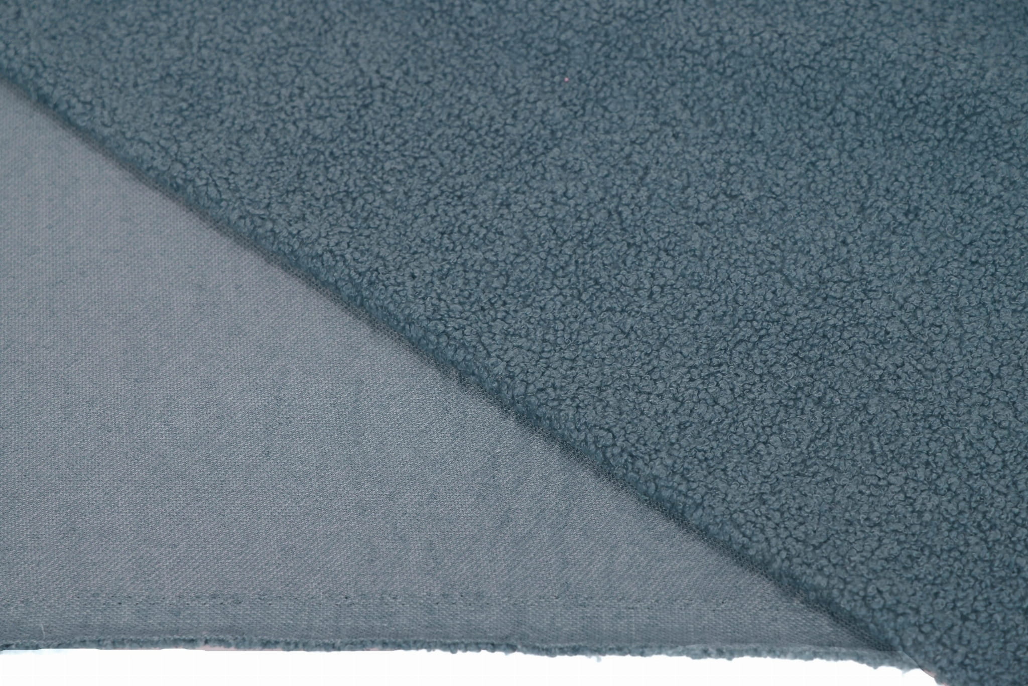 Minky Lamm Boucle ist extrem weich und zart. Das Material ist in der Breite stark dehnbar und in der Länge leicht dehnbar. Hergestellt aus Polyesterfasern zeichnet es sich vor allem durch eine sehr gute Wärmedämmung aus und ist zudem hydrophob. Das Material ist einseitig – auf der Außenseite ähnelt die Textur einem Schaffell, auf der Unterseite ist es glatt. Es ist sehr angenehm zu berühren. Es unterscheidet sich vom Minky-Lamm in der Art und Weise, wie sein Fell verarbeitet ist. Hier haben wir lockige Schlaufen, während das Haar bei Sherpa gebürstet und flauschiger ist.