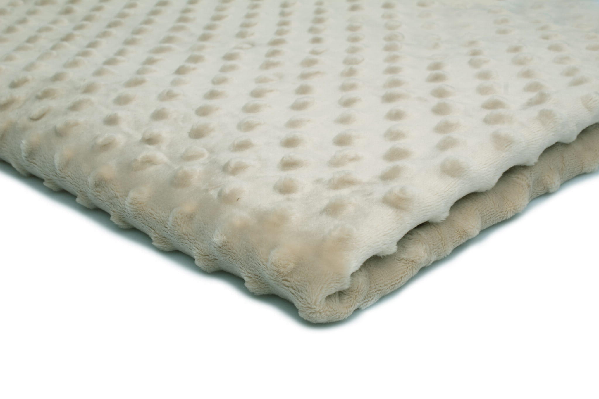 Minky fleece ist eine Strickware aus Polyesterfasern. Es zeichnet sich vor allem durch eine sehr gute Wärmedämmung und eine weiche und äußerst kuschelige Textur des Materials aus. Darüber hinaus hat es eine attraktive Prägung in Form von konvexen Kugeln, wodurch sein ästhetischer Wert verbessert wird.