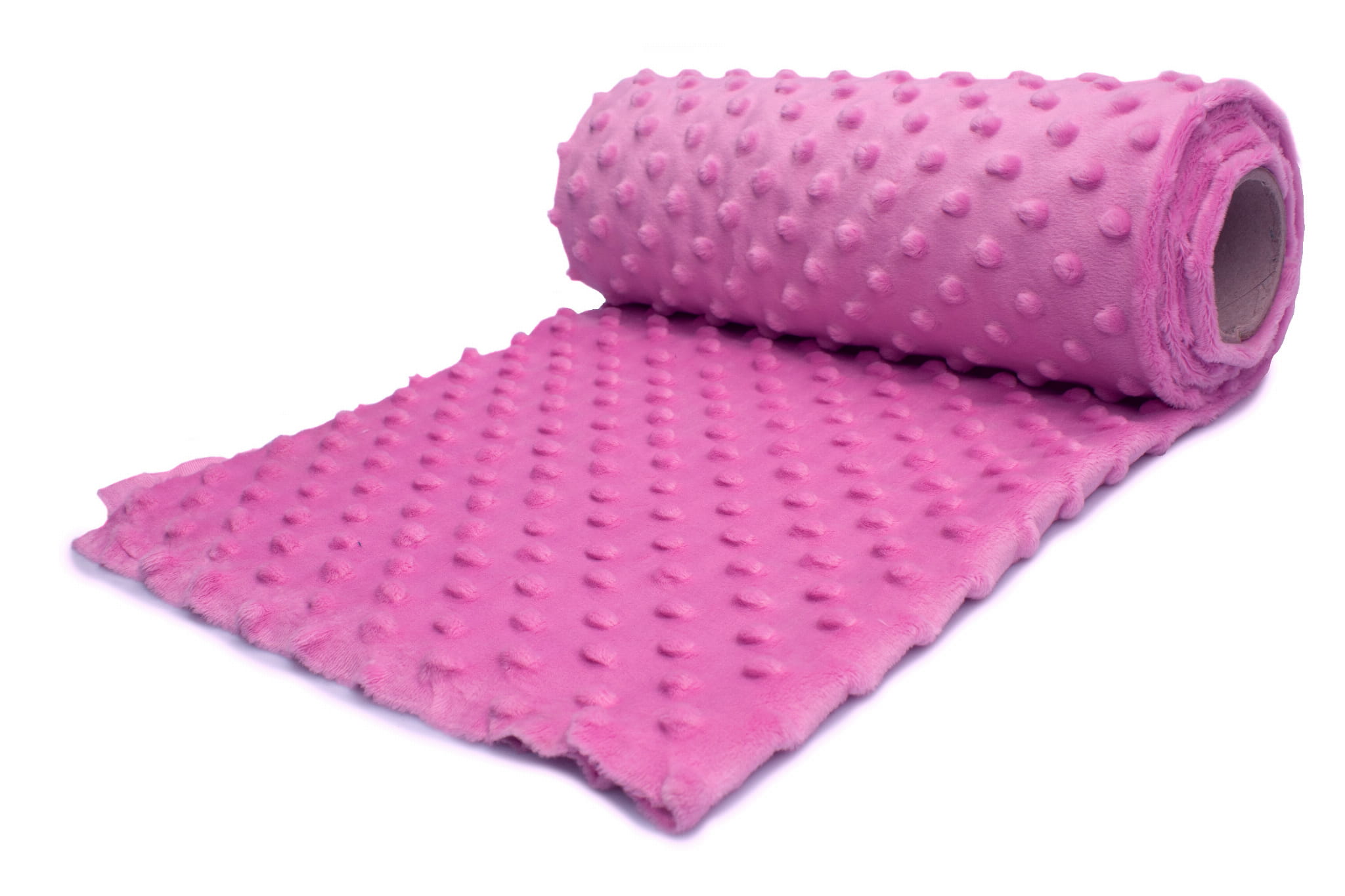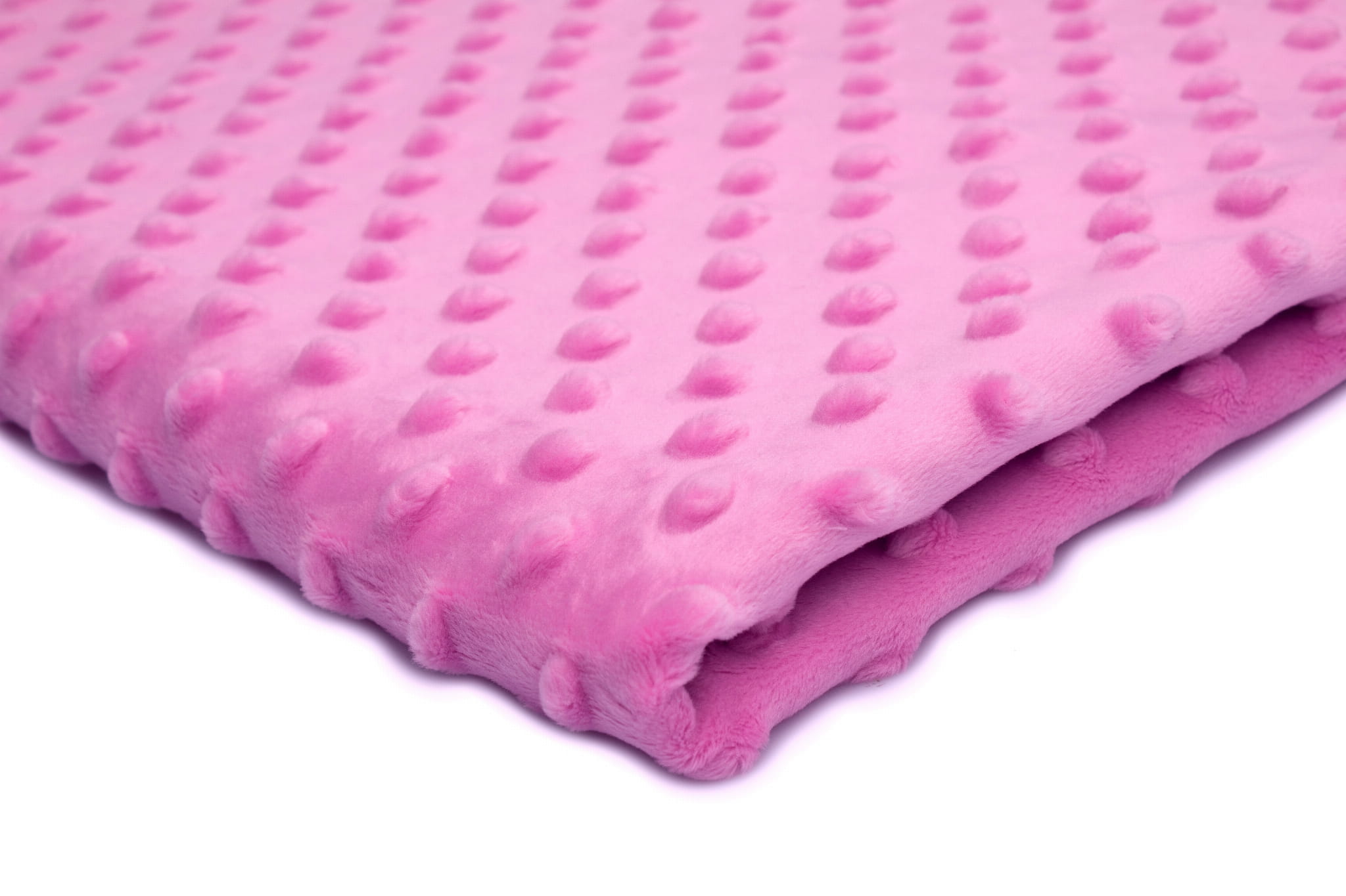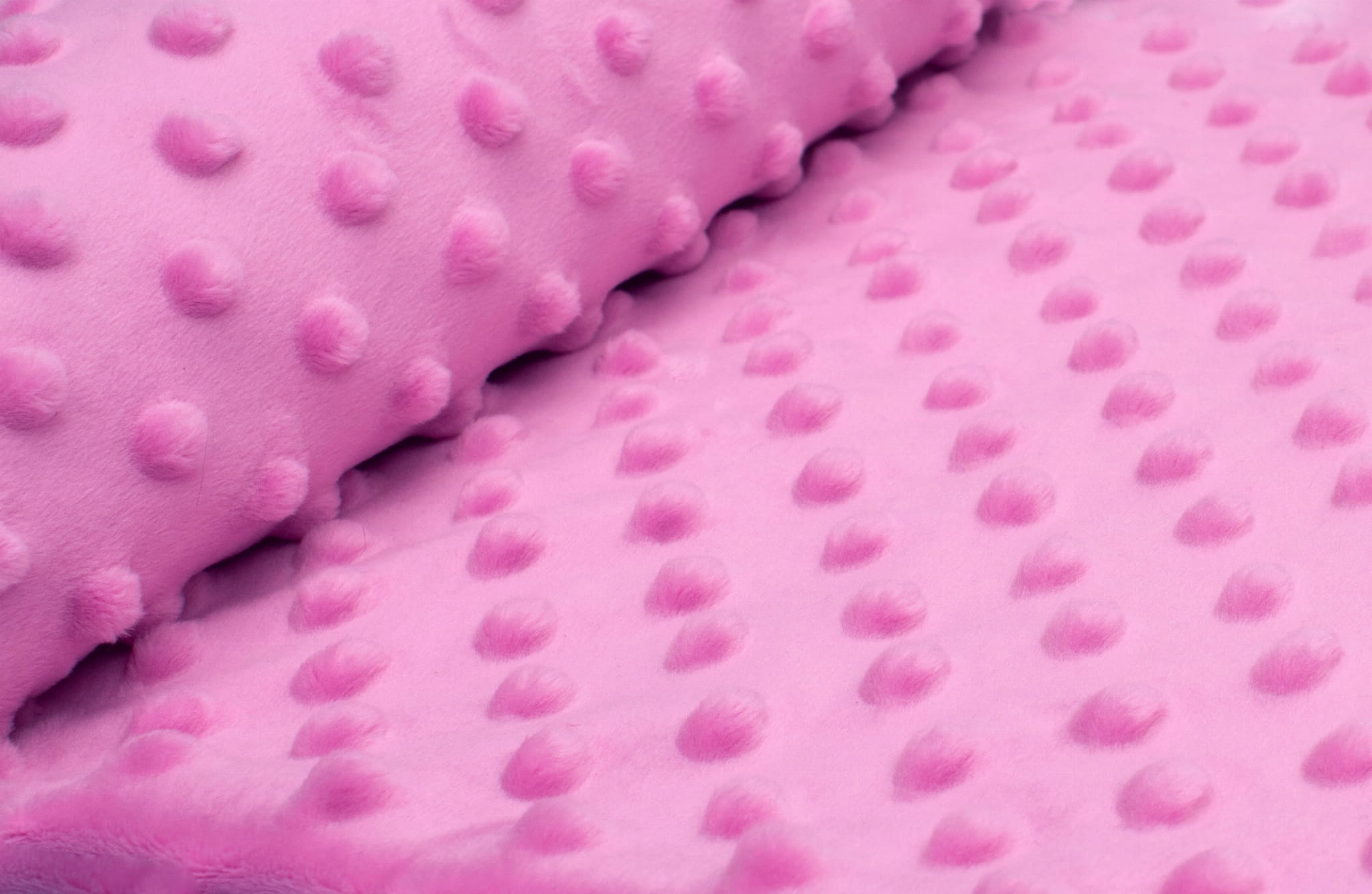 Minky fleece ist eine Strickware aus Polyesterfasern. Es zeichnet sich vor allem durch eine sehr gute Wärmedämmung und eine weiche und äußerst kuschelige Textur des Materials aus. Darüber hinaus hat es eine attraktive Prägung in Form von konvexen Kugeln, wodurch sein ästhetischer Wert verbessert wird.