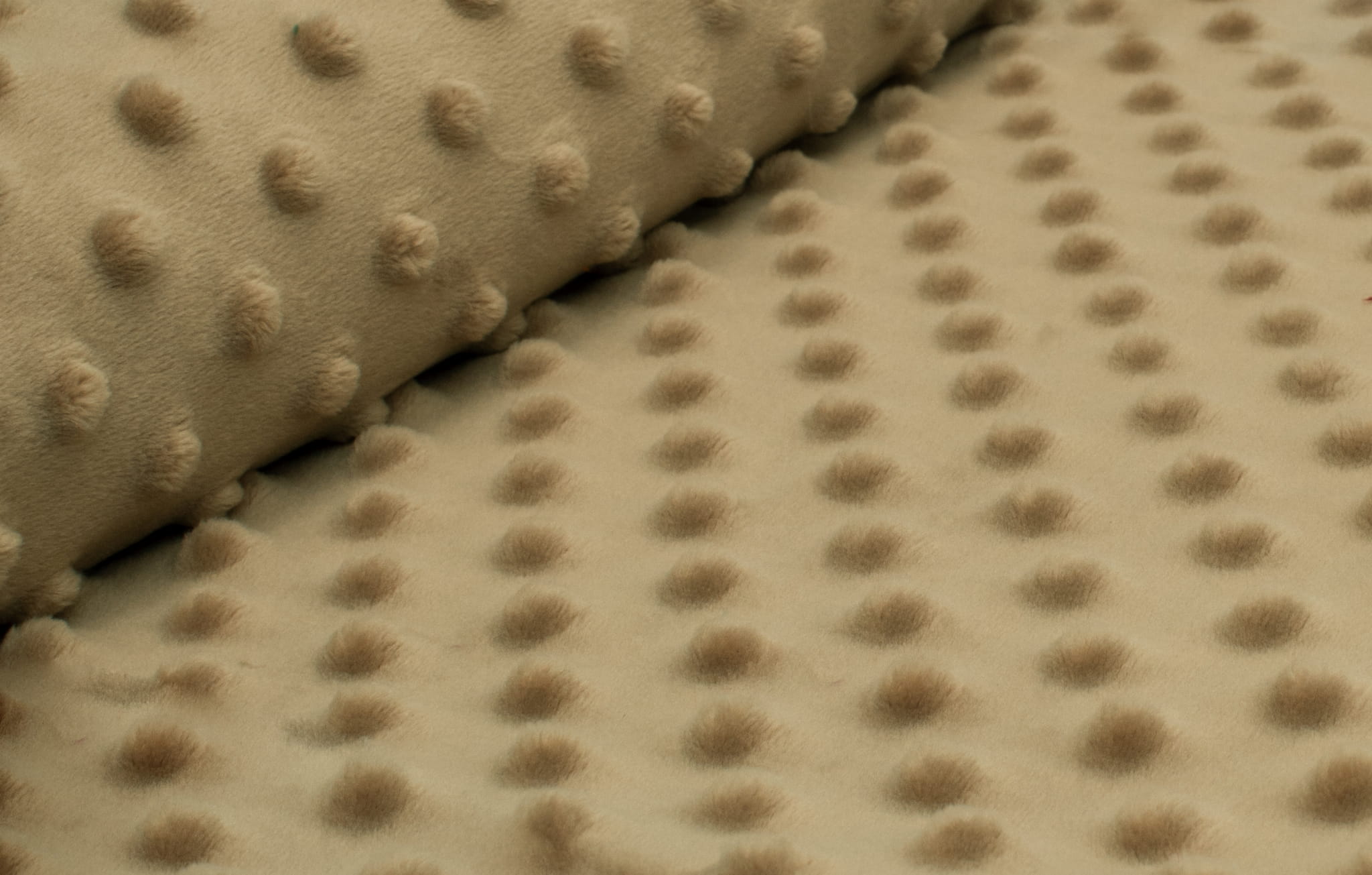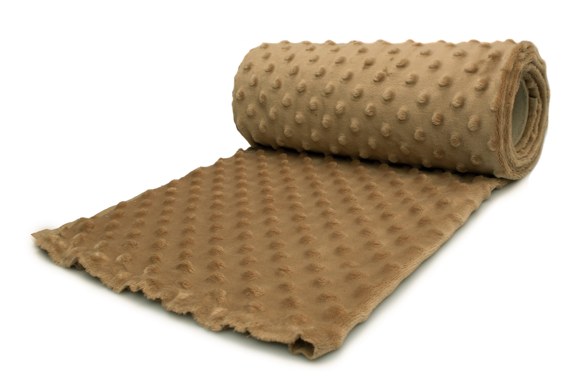 Minky fleece ist eine Strickware aus Polyesterfasern. Es zeichnet sich vor allem durch eine sehr gute Wärmedämmung und eine weiche und äußerst kuschelige Textur des Materials aus. Darüber hinaus hat es eine attraktive Prägung in Form von konvexen Kugeln, wodurch sein ästhetischer Wert verbessert wird.