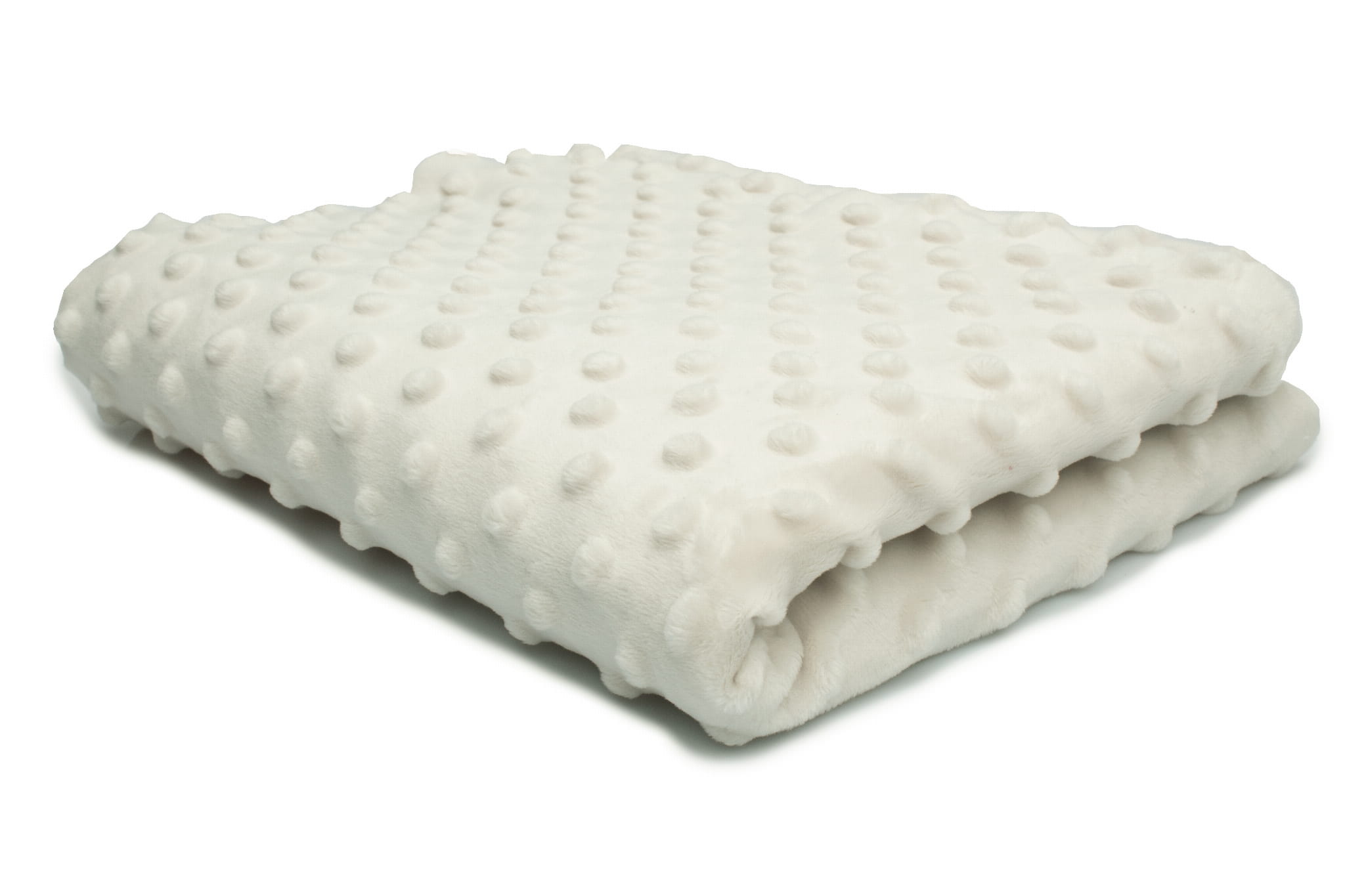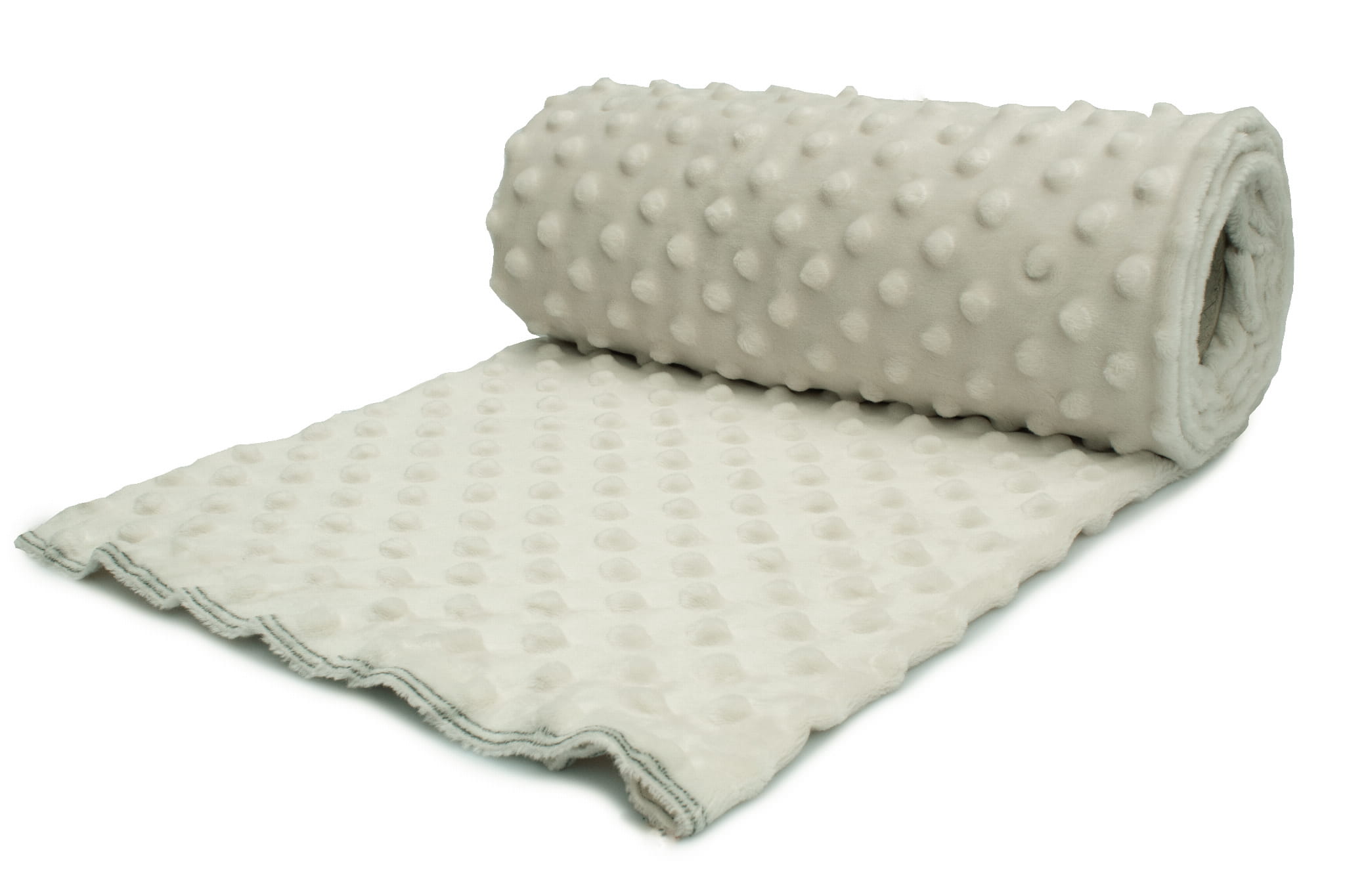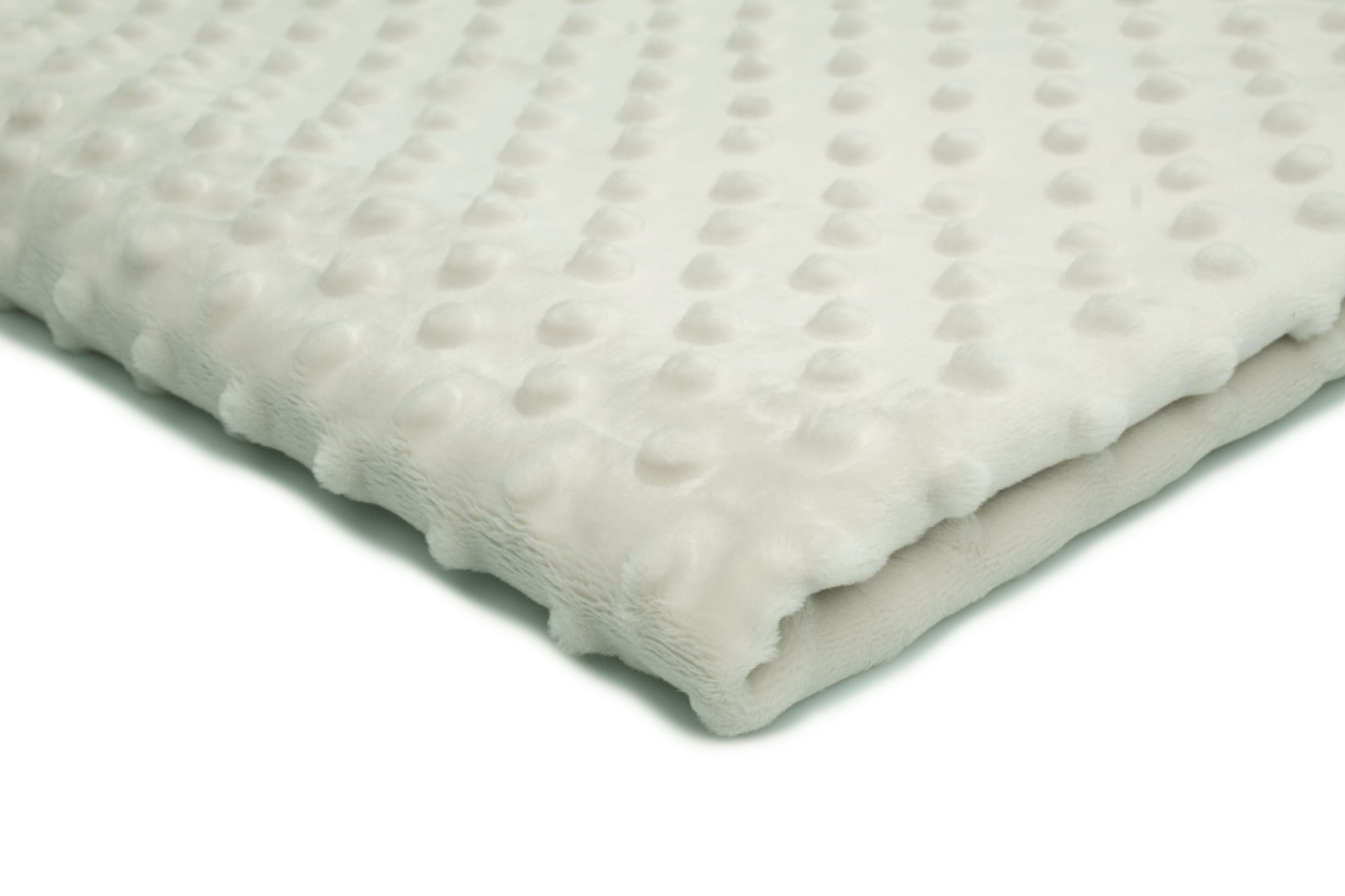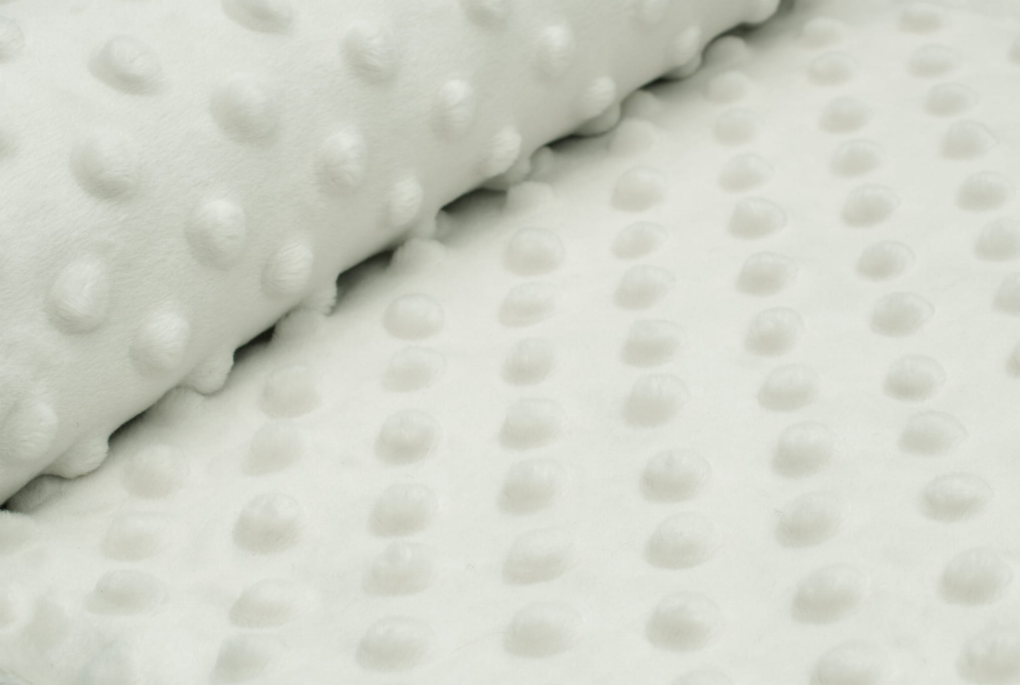 Minky fleece ist eine Strickware aus Polyesterfasern. Es zeichnet sich vor allem durch eine sehr gute Wärmedämmung und eine weiche und äußerst kuschelige Textur des Materials aus. Darüber hinaus hat es eine attraktive Prägung in Form von konvexen Kugeln, wodurch sein ästhetischer Wert verbessert wird.
