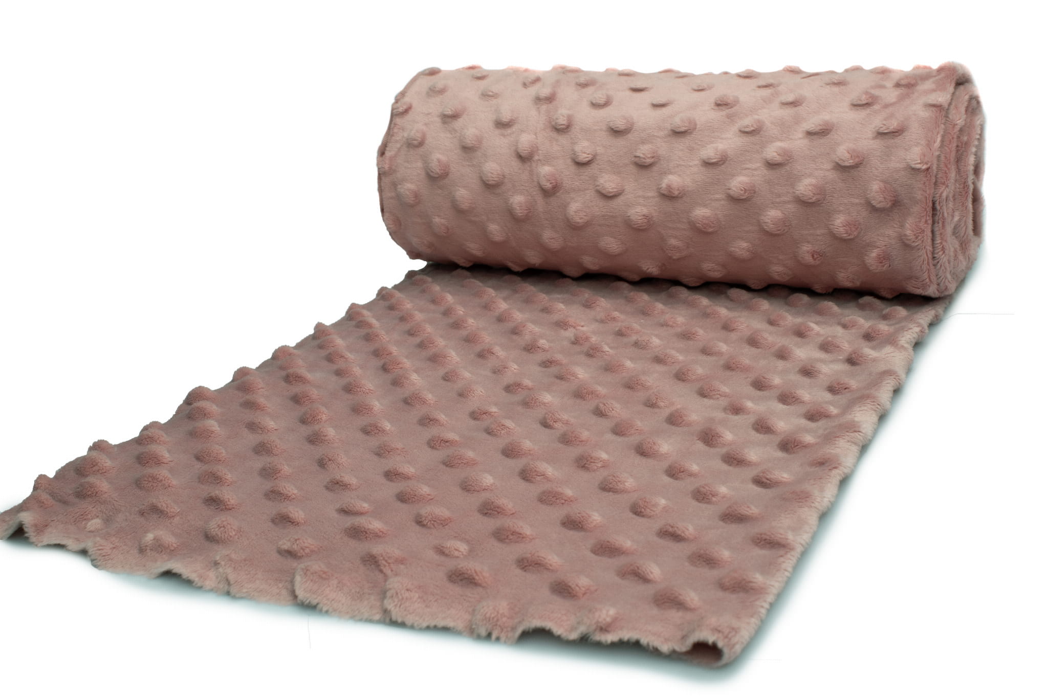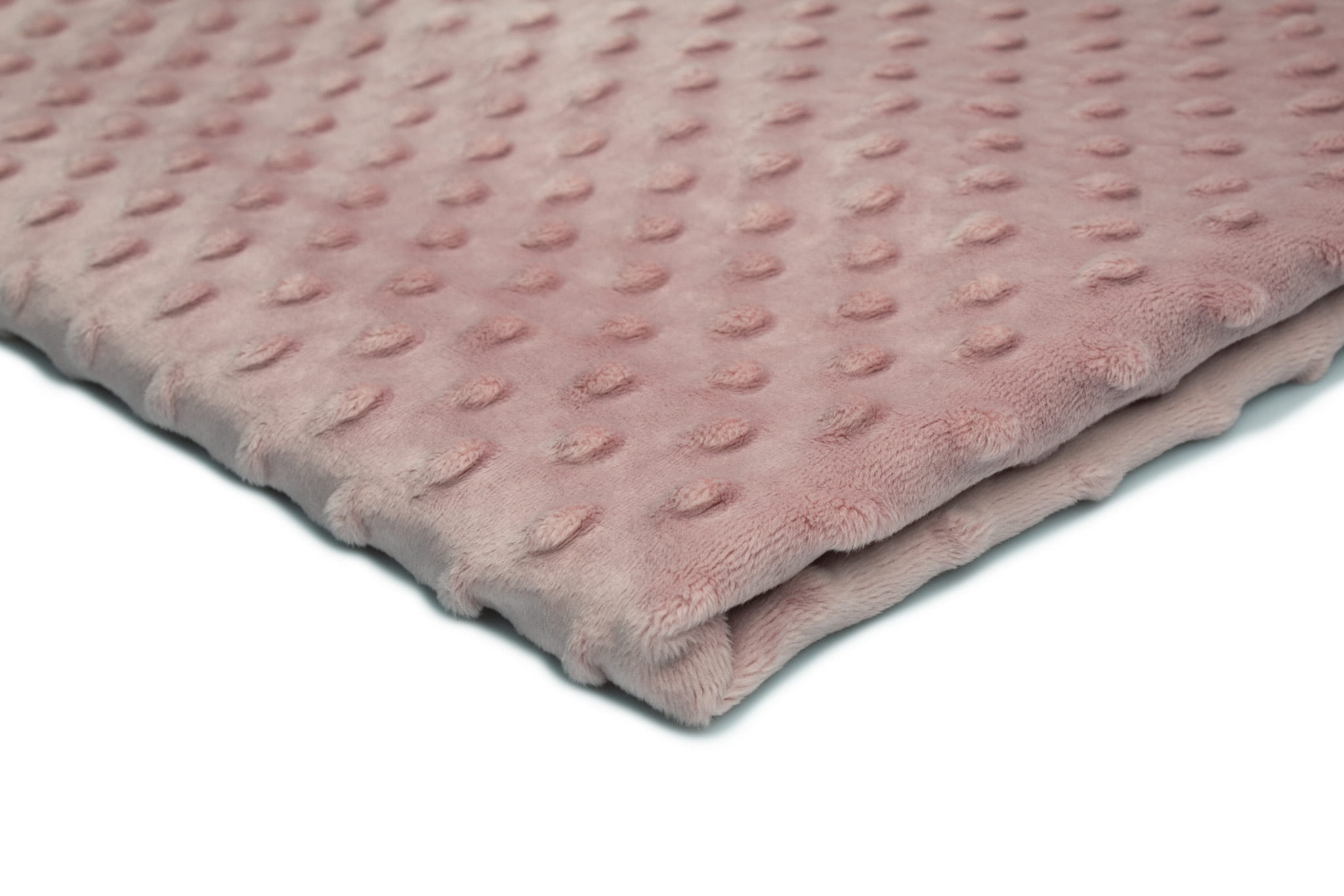 Minky fleece ist eine Strickware aus Polyesterfasern. Es zeichnet sich vor allem durch eine sehr gute Wärmedämmung und eine weiche und äußerst kuschelige Textur des Materials aus. Darüber hinaus hat es eine attraktive Prägung in Form von konvexen Kugeln, wodurch sein ästhetischer Wert verbessert wird.