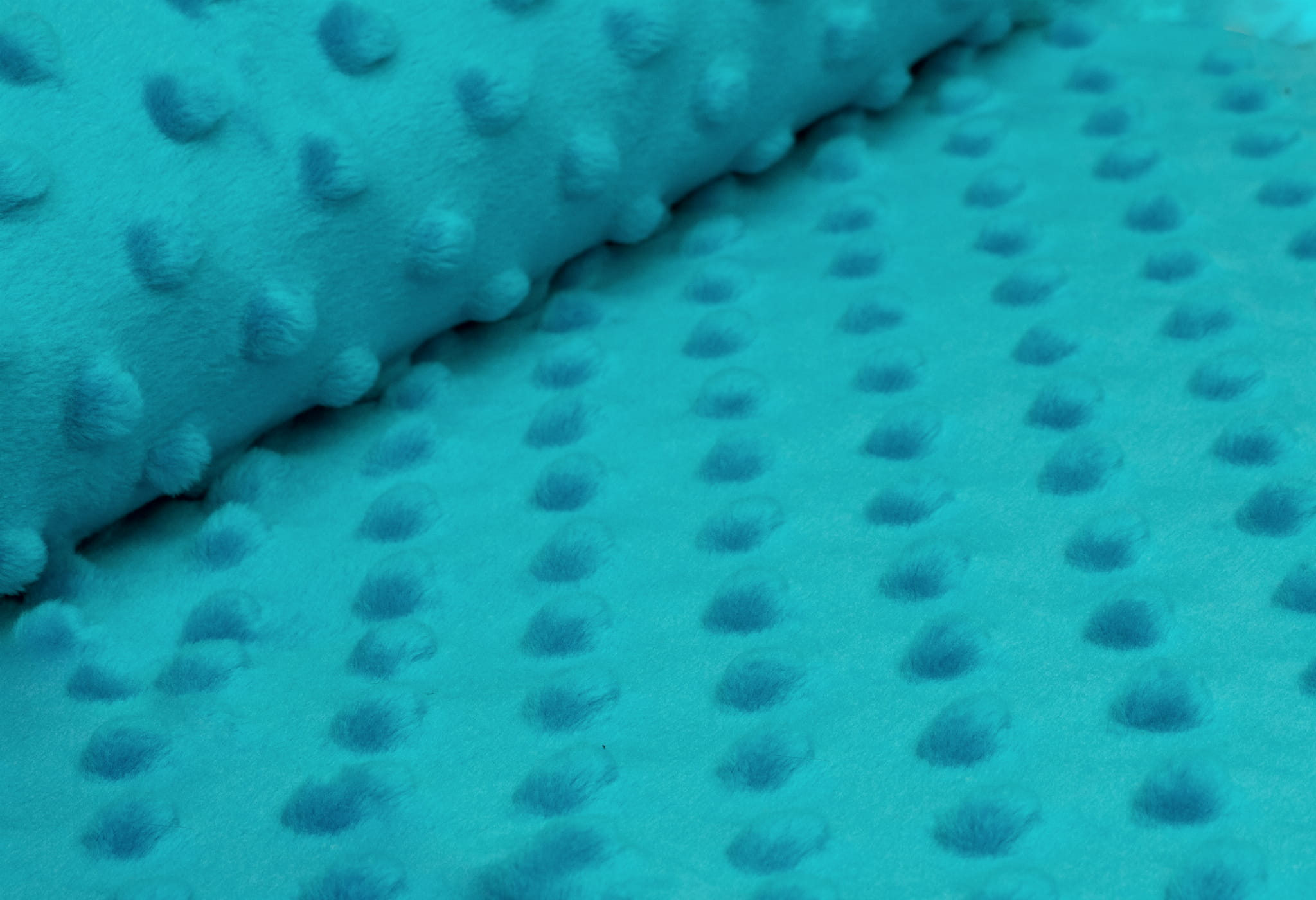 Minky fleece ist eine Strickware aus Polyesterfasern. Es zeichnet sich vor allem durch eine sehr gute Wärmedämmung und eine weiche und äußerst kuschelige Textur des Materials aus. Darüber hinaus hat es eine attraktive Prägung in Form von konvexen Kugeln, wodurch sein ästhetischer Wert verbessert wird.