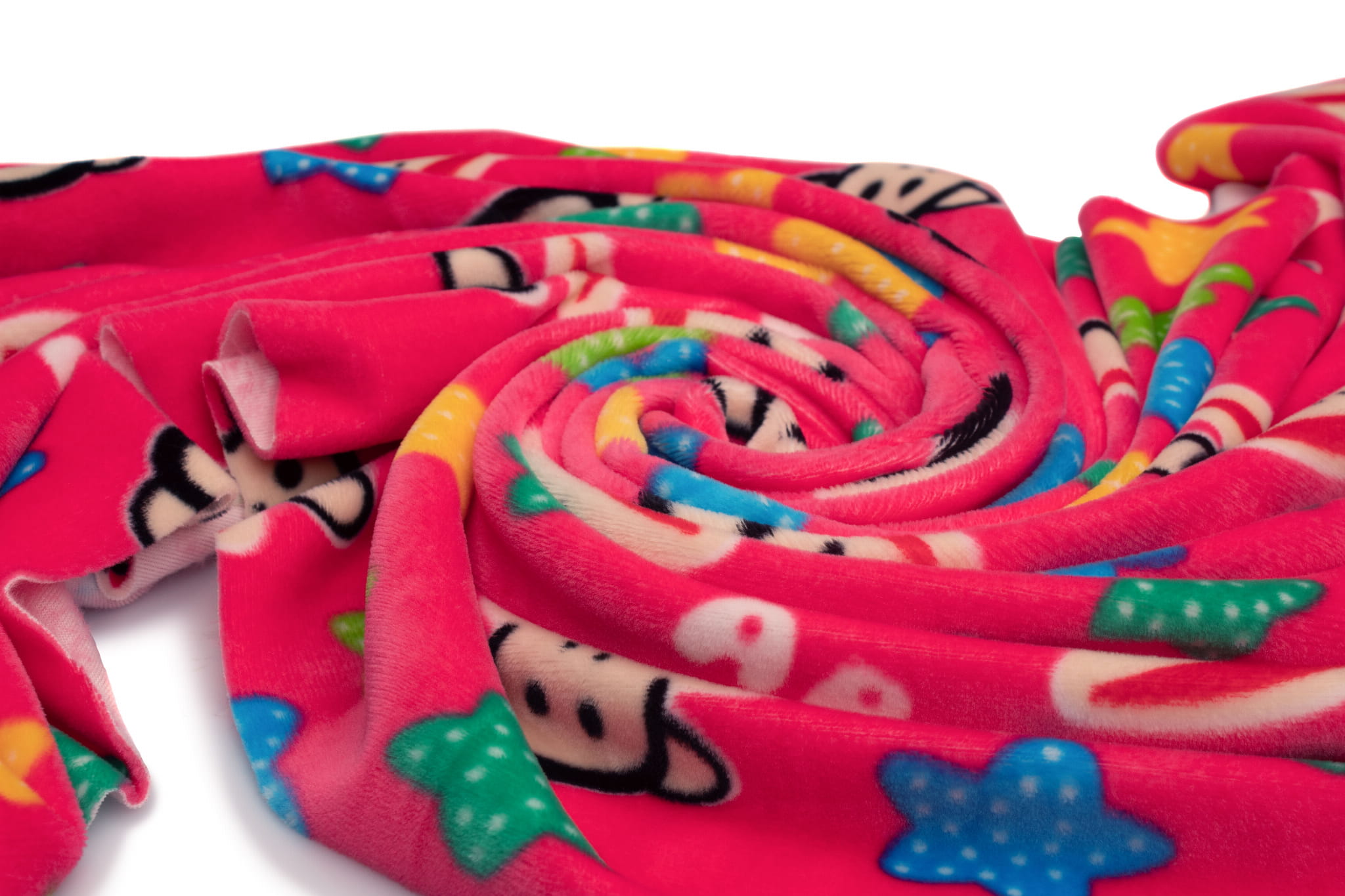 Strick auch als Micro-Fleece oder Velboa bekannt. Es besteht aus Polyesterfasern. Es zeichnet sich vor allem durch eine sehr hohe Flexibilität und eine weiche und äußerst kuschelige Textur des Materials aus. Wichtig sind auch die hohe Knitterfestigkeit und die Vielfalt der Kindermuster - Diese Funktionen ermöglichen eine Vielzahl von Anwendungen. Das Material ist einseitig - es hat kurze Borsten an der Spitze, macht es weich, die Unterseite glatt ist.