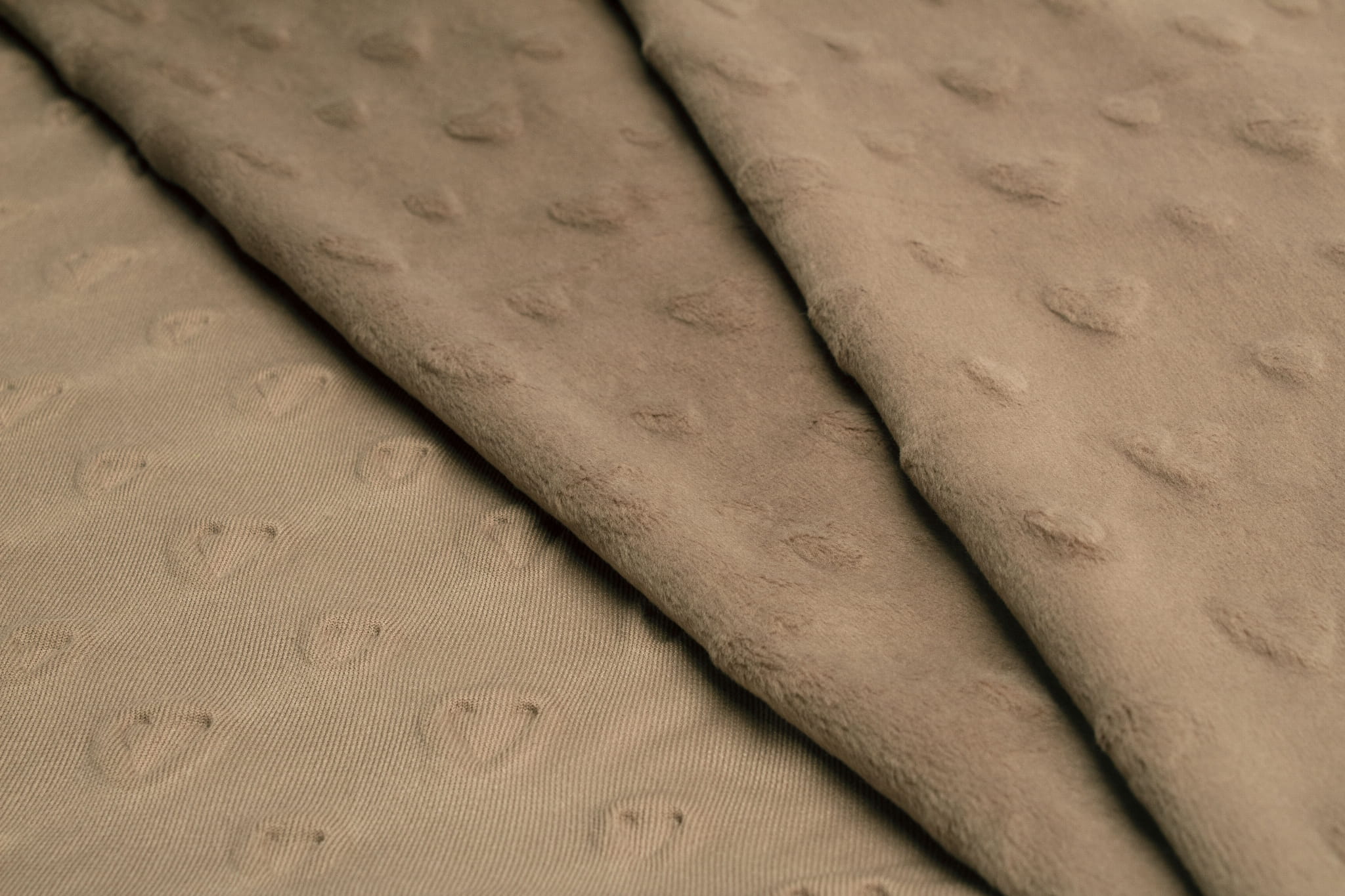 Minky Strickwaren mit Herzprägung Caffe Latte