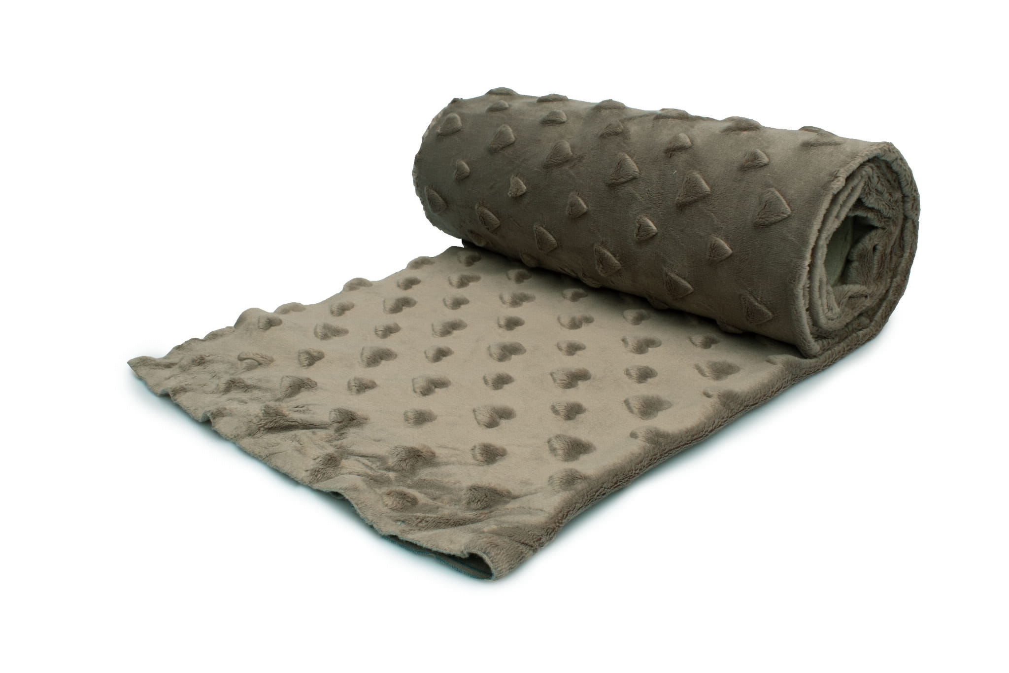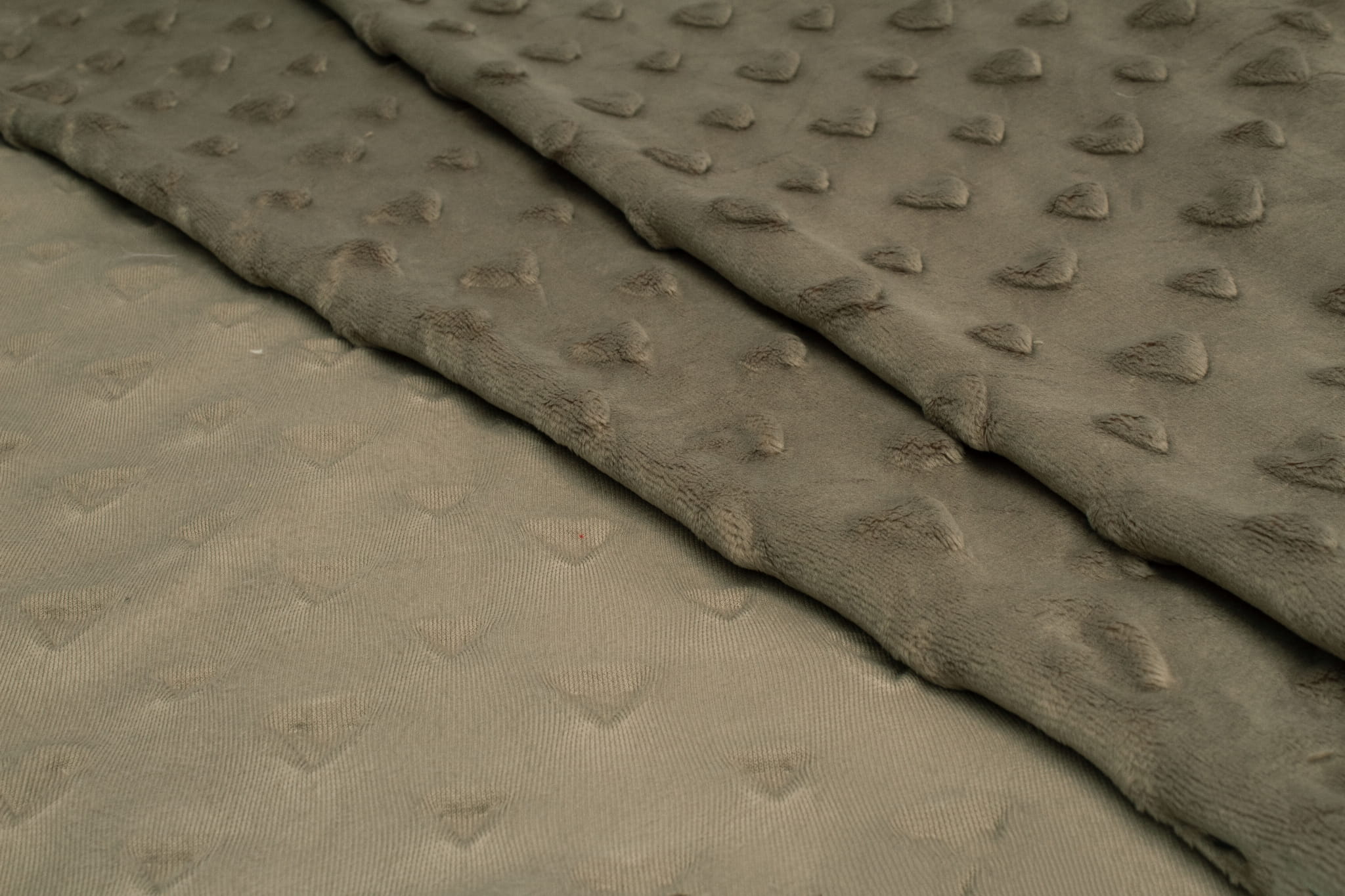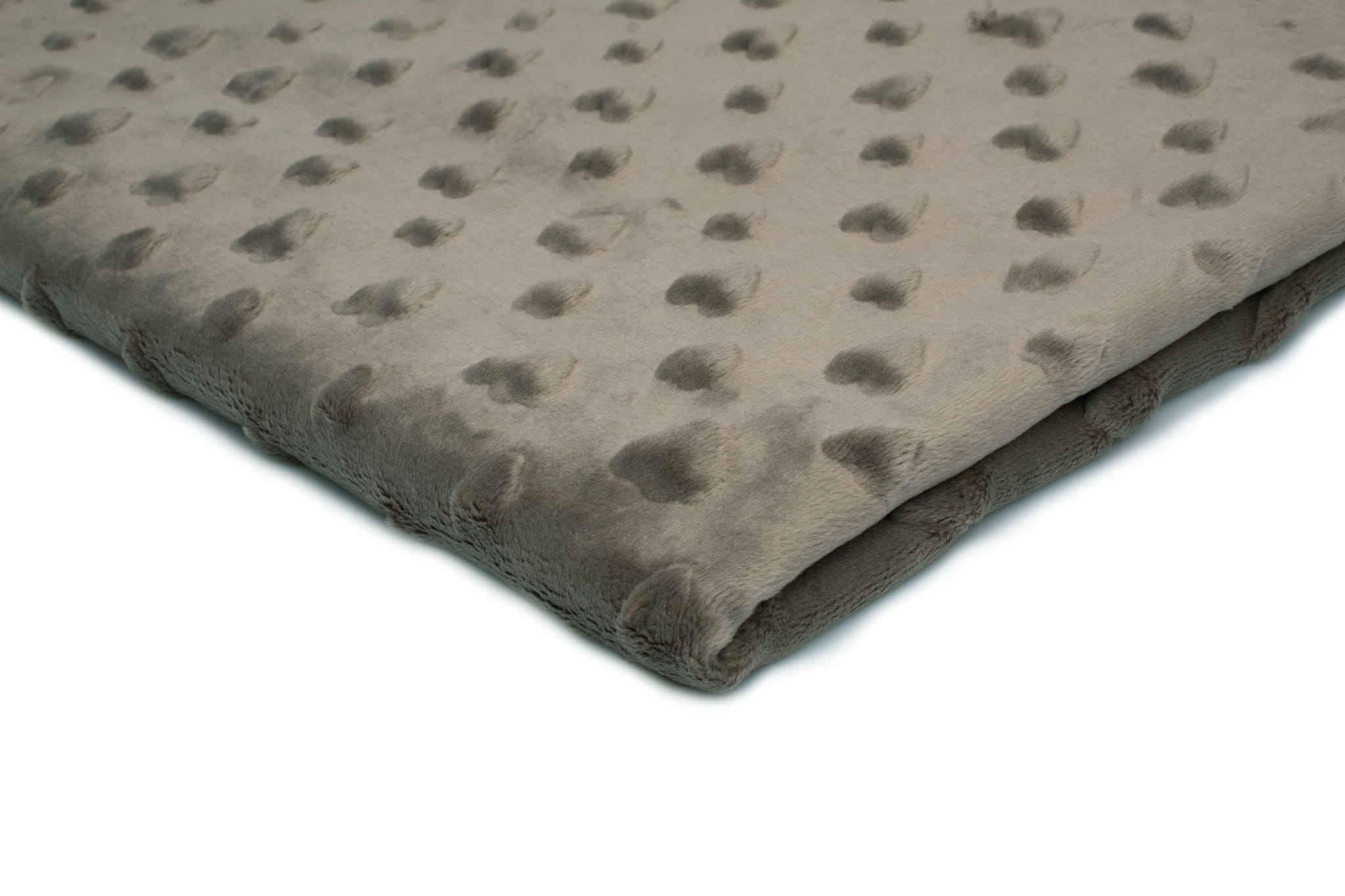 Polar Minky ist eine Strickware aus Polyesterfasern. Es zeichnet sich vor allem durch eine sehr gute Wärmedämmung und eine weiche und äußerst kuschelige Textur des Materials aus. Darüber hinaus hat es eine attraktive Prägung in Form von konvexen Herzen, was seinen ästhetischen Wert verbessert.