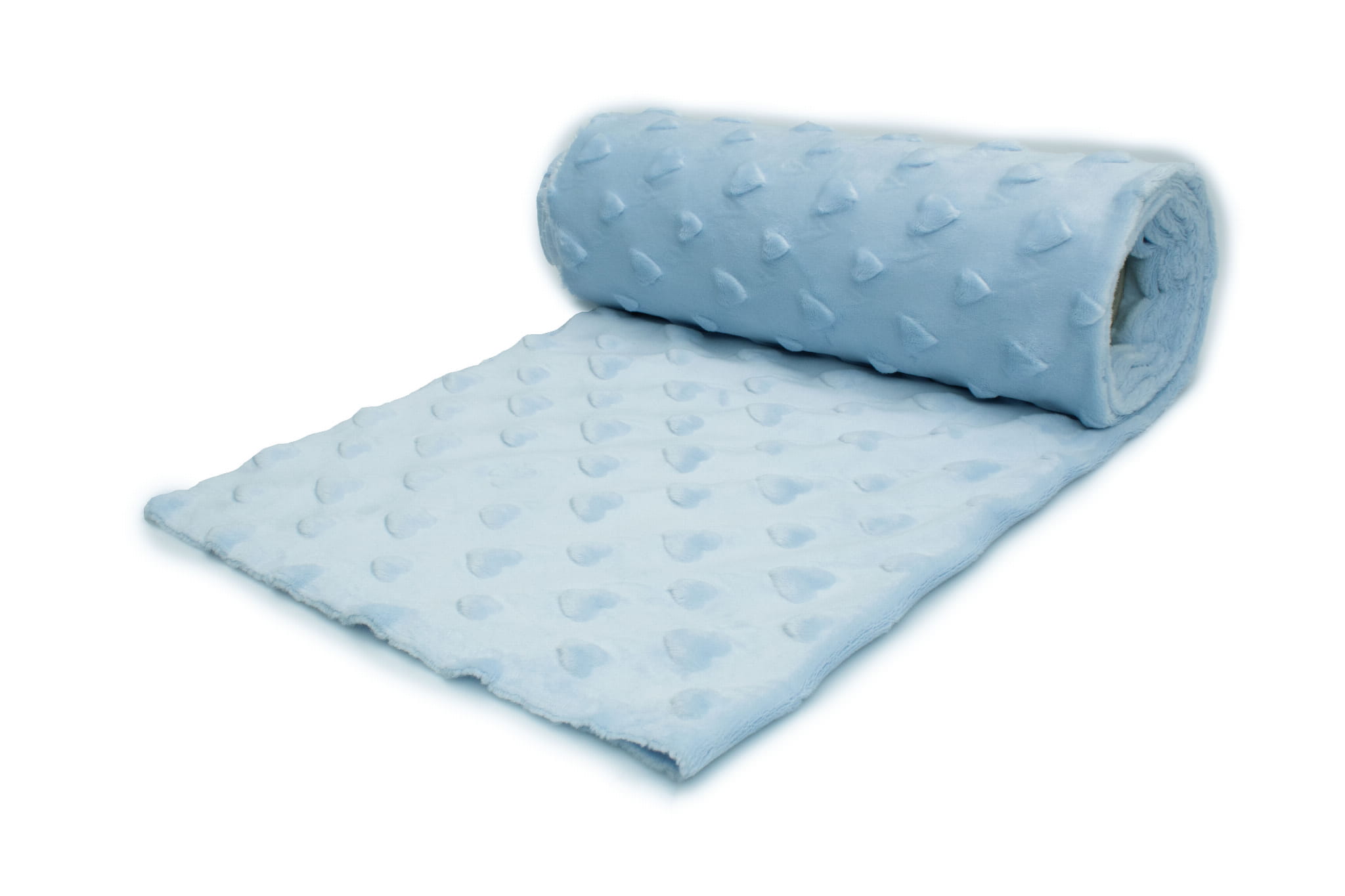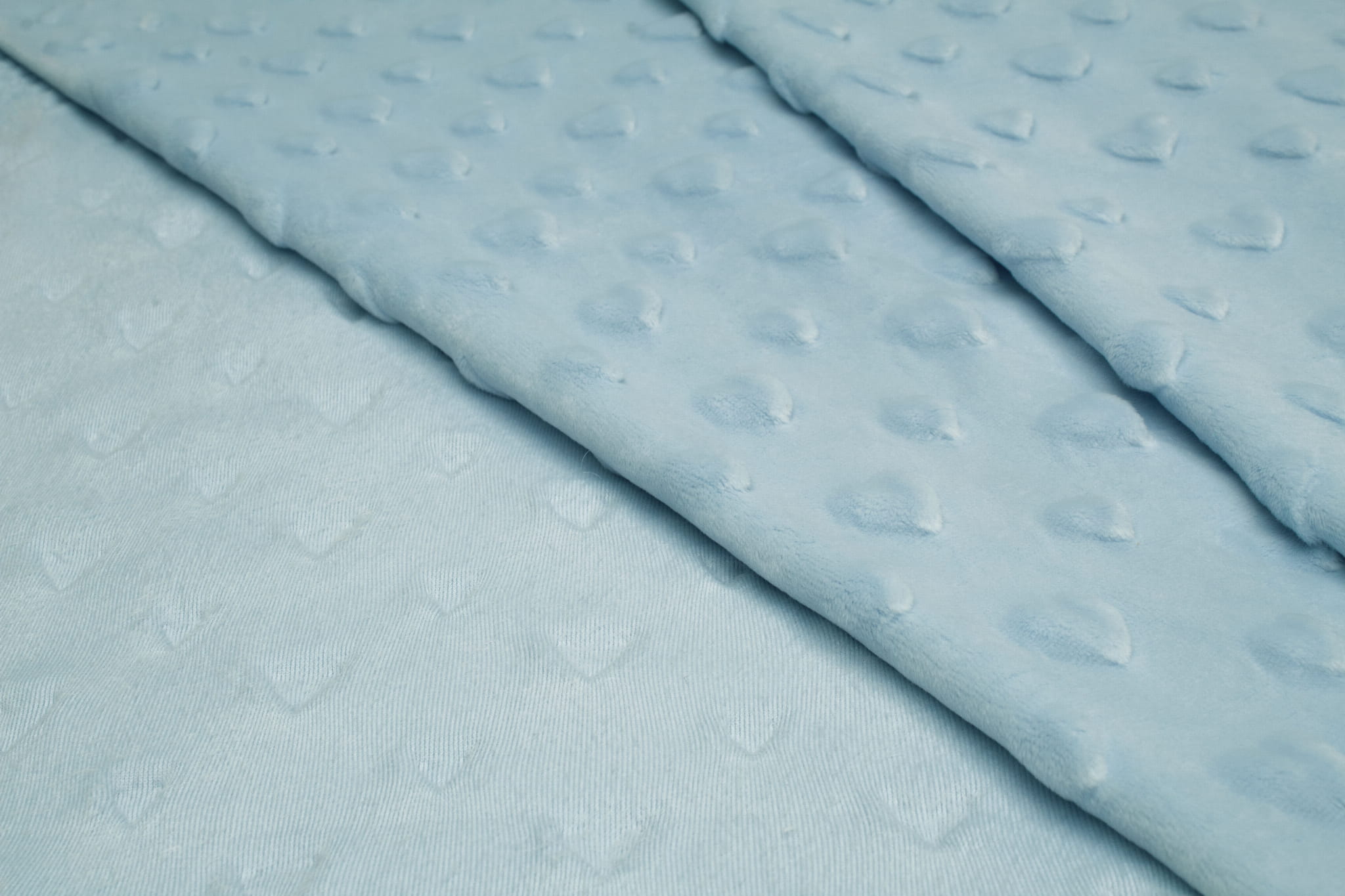 Polar Minky ist eine Strickware aus Polyesterfasern. Es zeichnet sich vor allem durch eine sehr gute Wärmedämmung und eine weiche und äußerst kuschelige Textur des Materials aus. Darüber hinaus hat es eine attraktive Prägung in Form von konvexen Herzen, was seinen ästhetischen Wert verbessert.