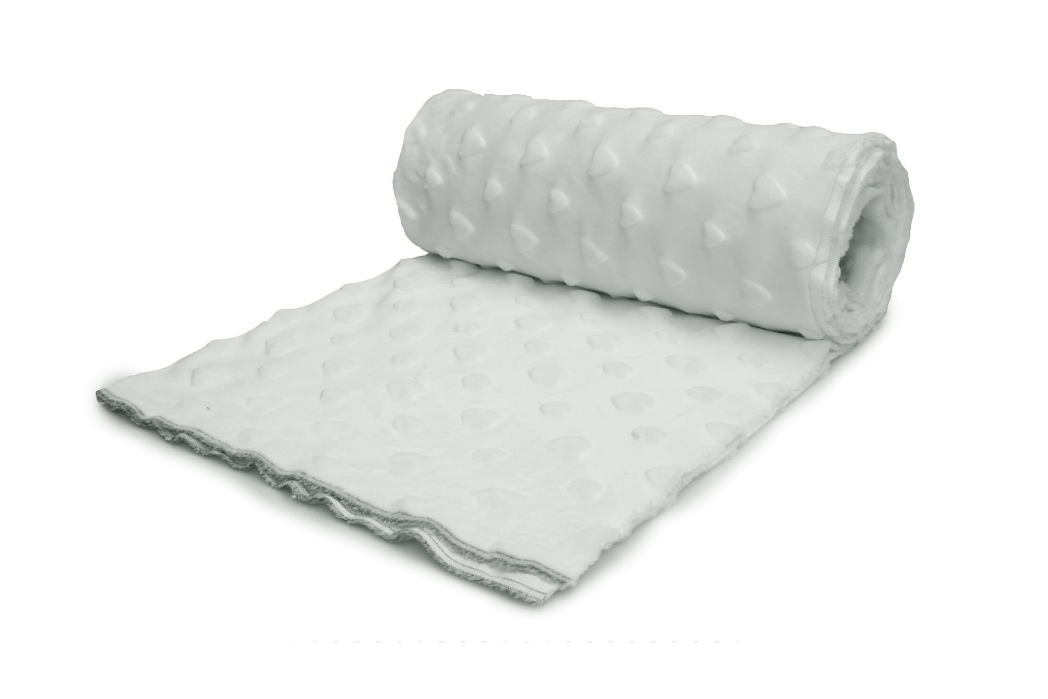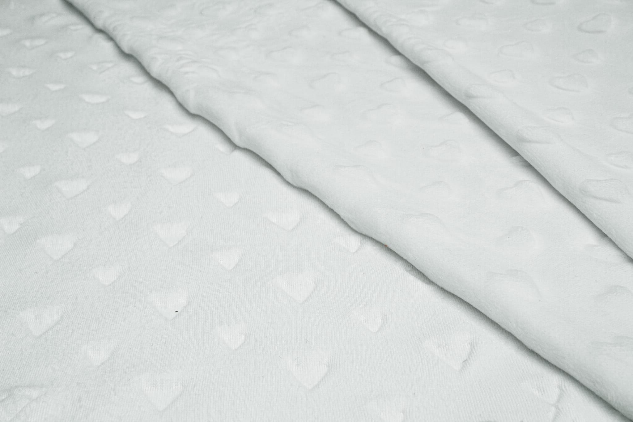 Polar Minky ist eine Strickware aus Polyesterfasern. Es zeichnet sich vor allem durch eine sehr gute Wärmedämmung und eine weiche und äußerst kuschelige Textur des Materials aus. Darüber hinaus hat es eine attraktive Prägung in Form von konvexen Herzen, was seinen ästhetischen Wert verbessert.