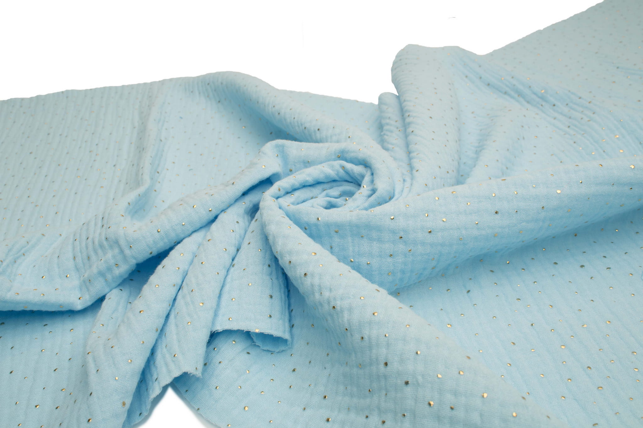 Musselin zeichnet sich durch außergewöhnliche Subtilität aus. Ursprünglich wurde es aus natürlichen Ressourcen hergestellt: Seide, Baumwolle, Leinen oder Wolle. Derzeit können Sie sich mit einer anderen Zusammensetzung treffen, aber die wünschenswerteste ist 100% Baumwolle. Wir können 3 Arten von Musselin unterscheiden: Single, Double und Triple Gaze, wobei die Namen die Anzahl der im Material vorhandenen Schichten angeben. Die einzelnen Lagen sind mit einer lockeren Leinenbindung gewebt und erzeugen durch ihre Verbindung eine charakteristische Faltenbildung des Stoffes. Double Gauze Baumwoll-Musselin ist dünn, leicht und sehr luftig. Dank zweier Materialschichten ist es blickdicht. Dieser Stoff ist sicher für die Haut: Seine natürliche Zusammensetzung verursacht keine Allergien, während die weichen Fasern keine Reizungen verursachen. Das Material sorgt für eine sehr gute Luftzirkulation und lässt die Haut an heißen Tagen atmen. Es ist hygroskopisch, was bedeutet, dass es viel Wasser aufnehmen kann, während es dank seiner lockeren Webart recht schnell trocknet. Die oben genannten Funktionen ermöglichen die breite Verwendung von Musselin.