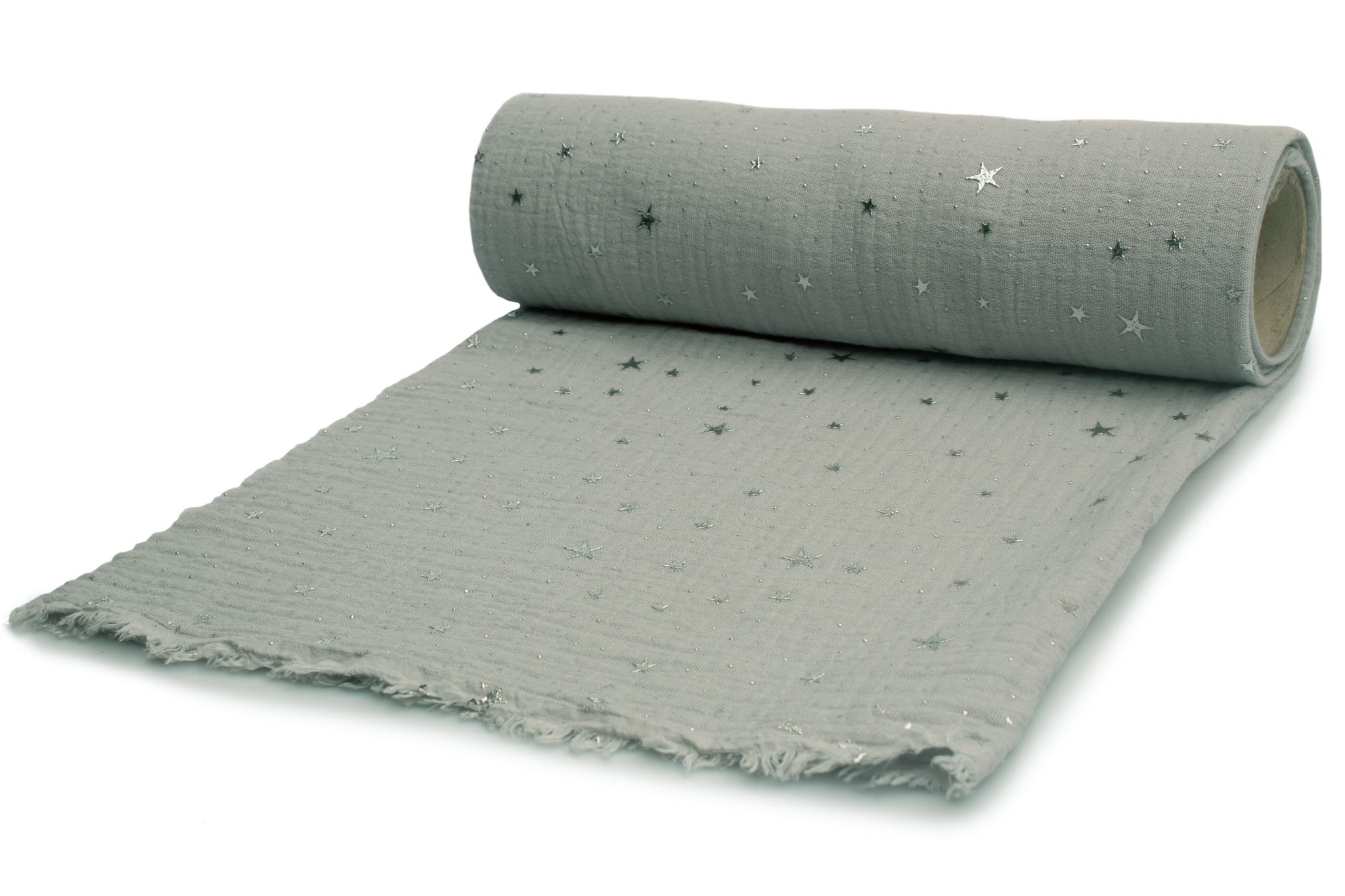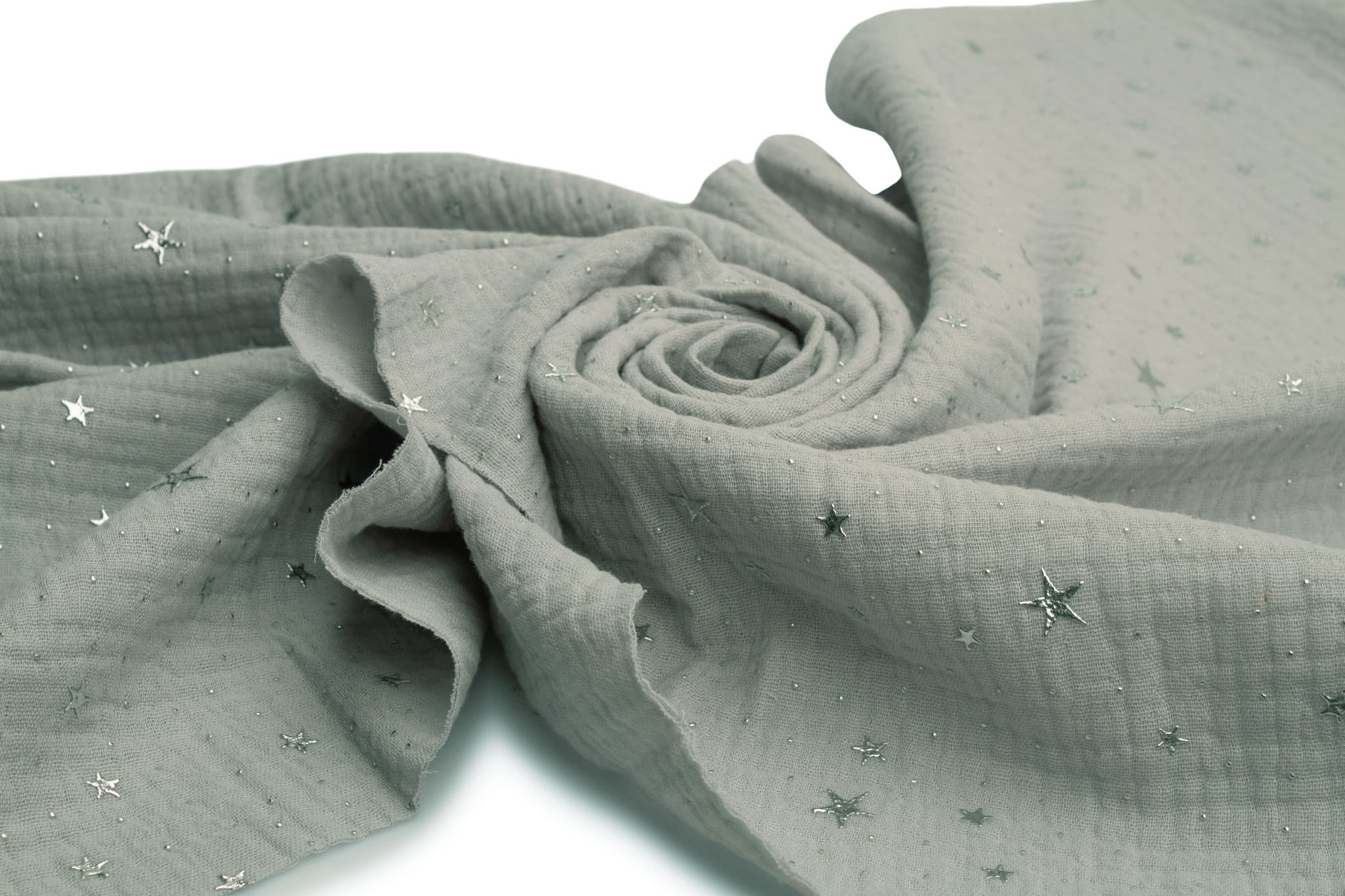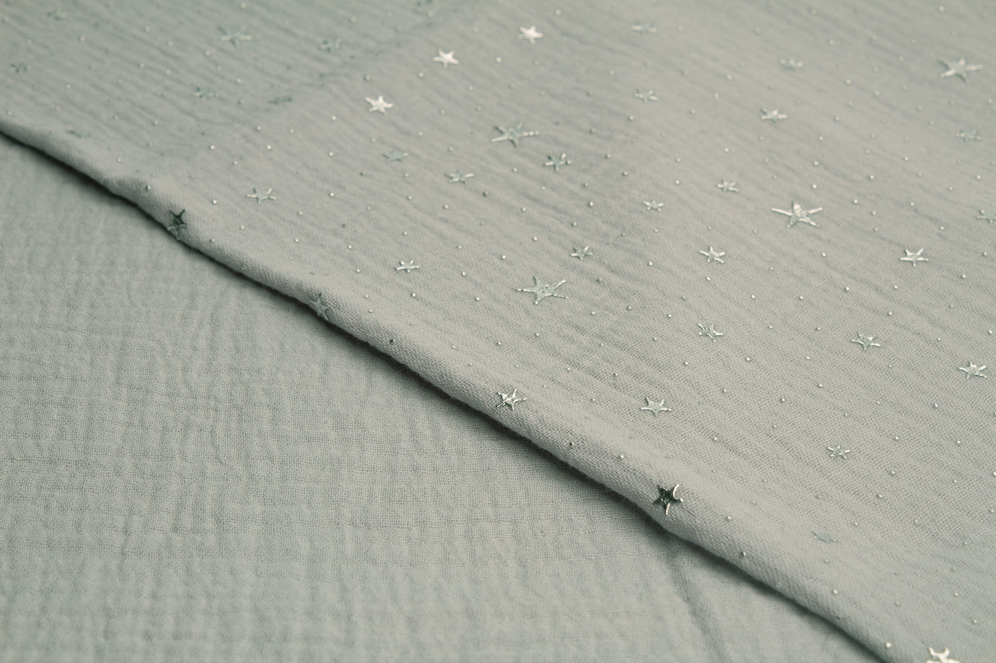 Musselin mit silbernen Sternen, Hellgrau