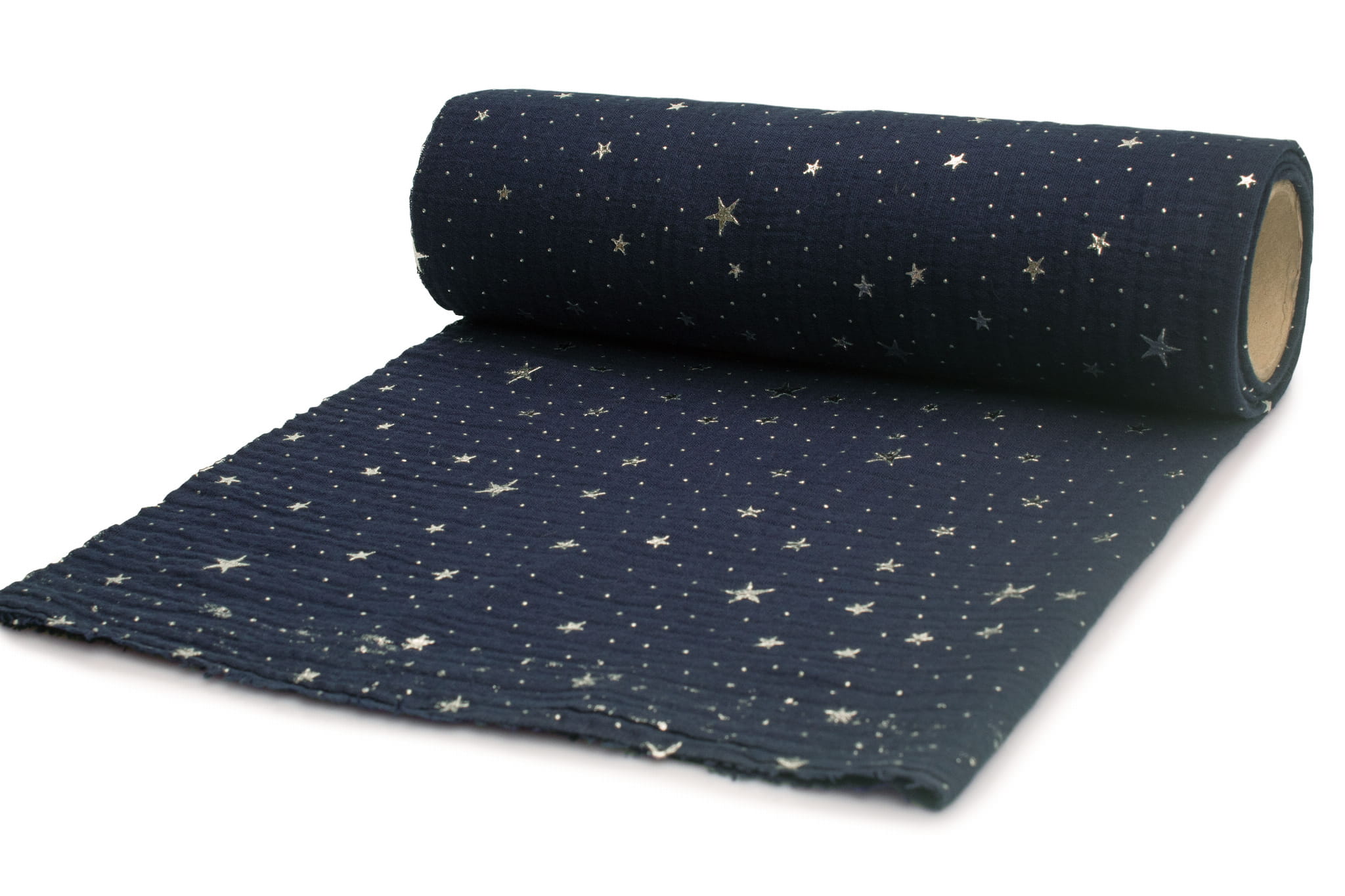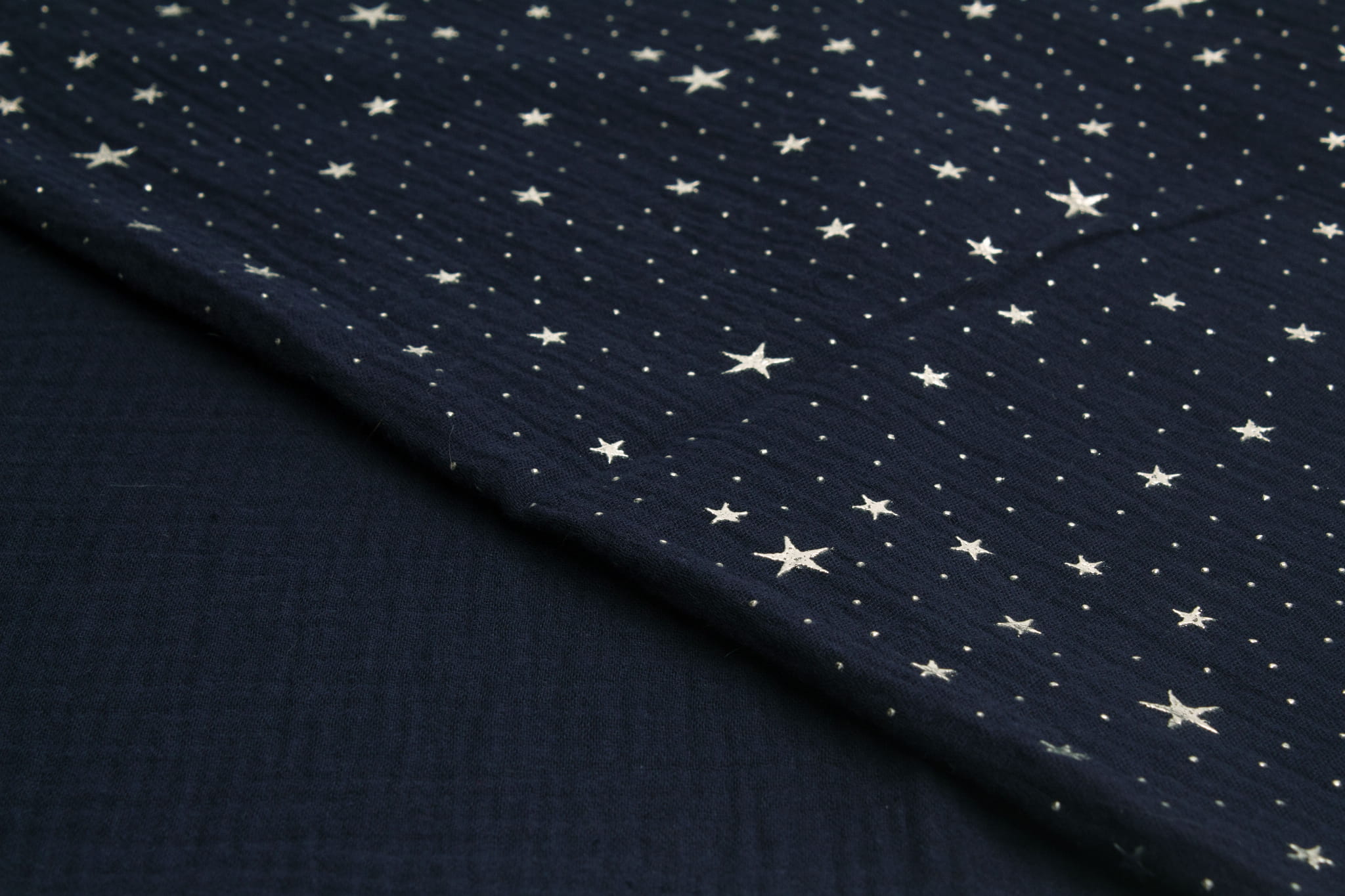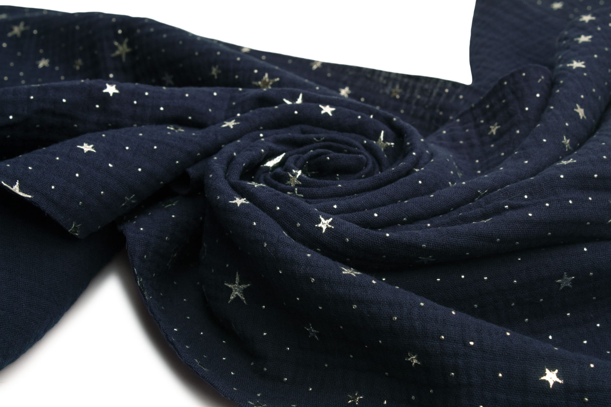 Musselin mit silbernen Sternen, Navy blau
