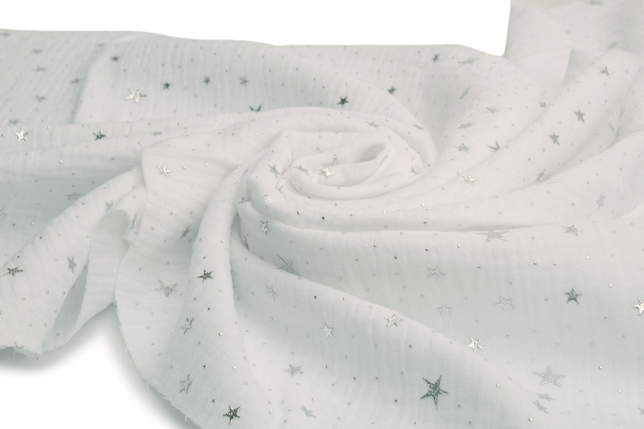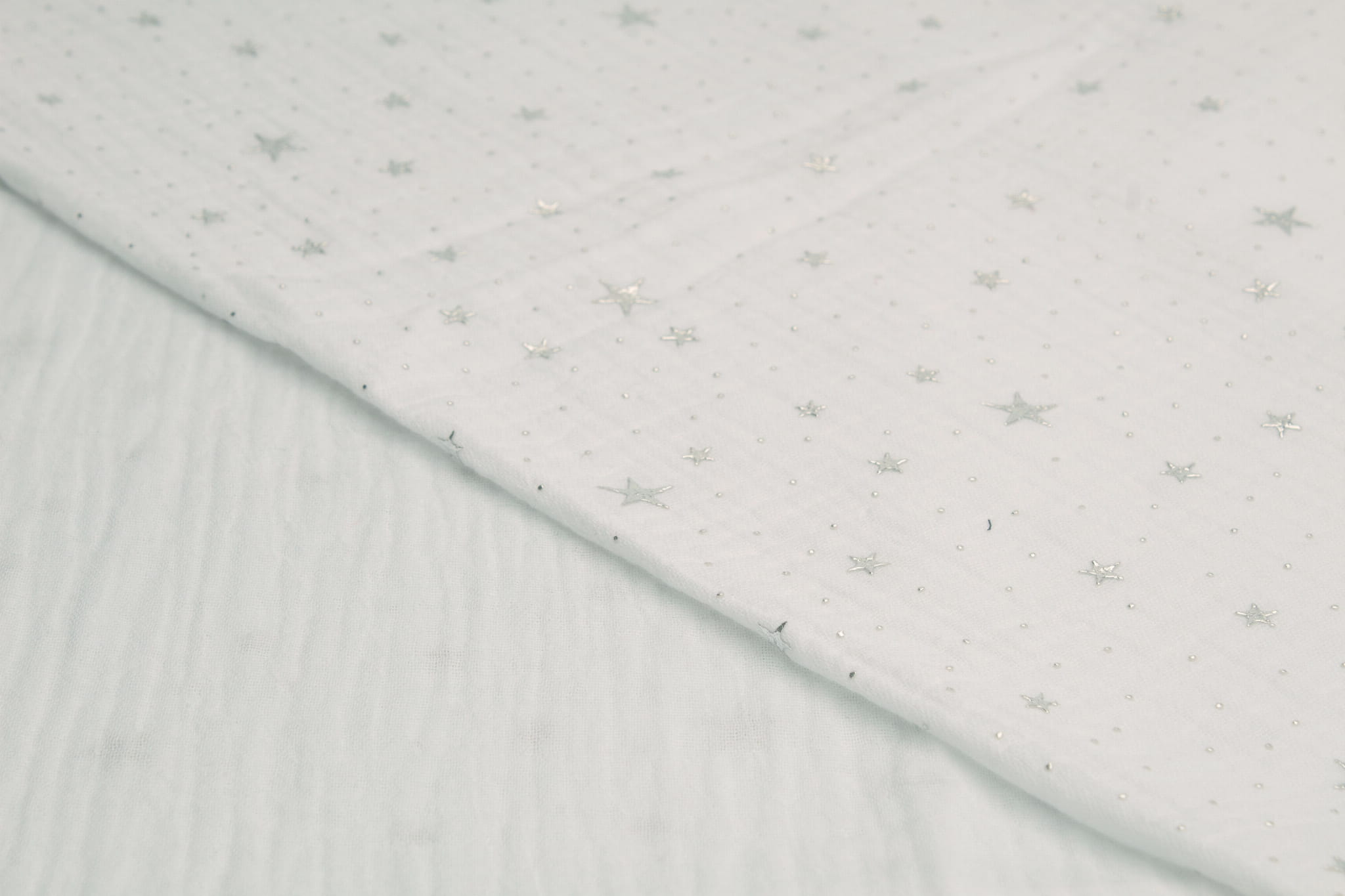 Musselin zeichnet sich durch außergewöhnliche Subtilität aus. Ursprünglich wurde es aus natürlichen Ressourcen hergestellt: Seide, Baumwolle, Leinen oder Wolle. Derzeit können Sie sich mit einer anderen Zusammensetzung treffen, aber die wünschenswerteste ist 100% Baumwolle. Wir können 3 Arten von Musselin unterscheiden: Single, Double und Triple Gaze, wobei die Namen die Anzahl der im Material vorhandenen Schichten angeben. Die einzelnen Lagen sind mit einer lockeren Leinenbindung gewebt und erzeugen durch ihre Verbindung eine charakteristische Faltenbildung des Stoffes. Double Gauze Baumwoll-Musselin ist dünn, leicht und sehr luftig. Dank zweier Materialschichten ist es blickdicht. Dieser Stoff ist sicher für die Haut: Seine natürliche Zusammensetzung verursacht keine Allergien, während die weichen Fasern keine Reizungen verursachen. Das Material sorgt für eine sehr gute Luftzirkulation und lässt die Haut an heißen Tagen atmen. Es ist hygroskopisch, was bedeutet, dass es viel Wasser aufnehmen kann, während es dank seiner lockeren Webart recht schnell trocknet. Die oben genannten Funktionen ermöglichen die breite Verwendung von Musselin.