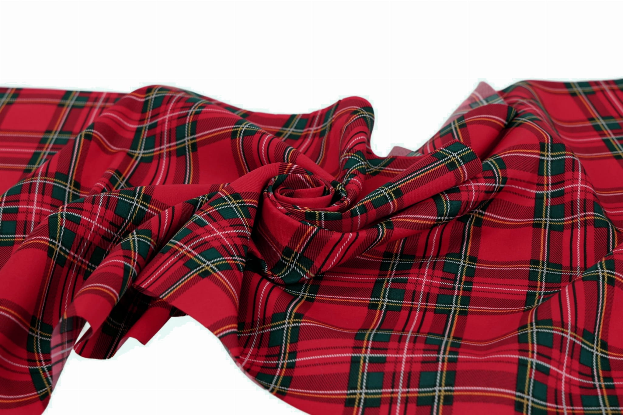 Panama Minimatt Stoff, Rot-grün kariertes Muster