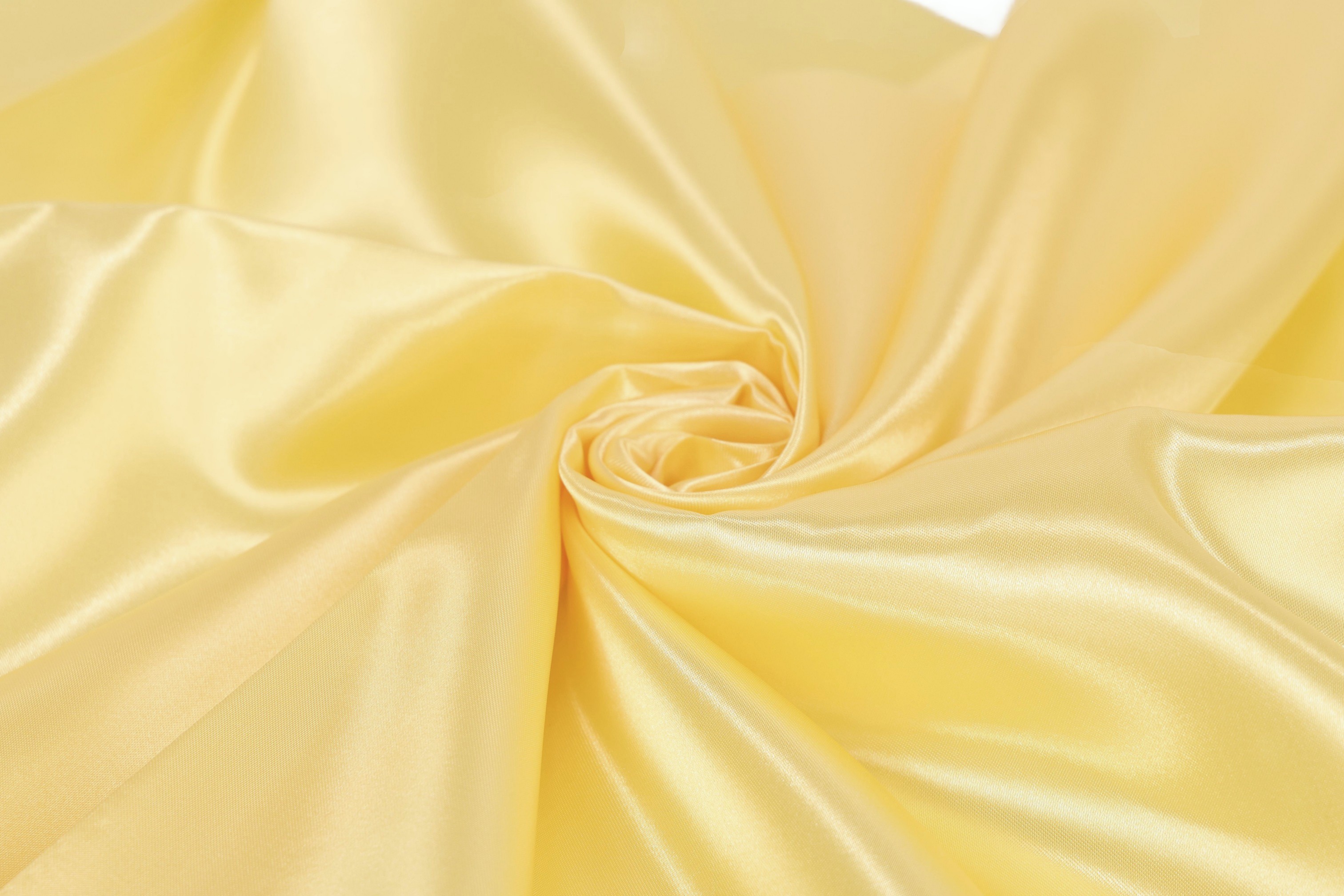 Satin ist einer der wirkungsvollsten Stoffe auf dem Markt und bietet eine breite Palette an Anwendungsmöglichkeiten für Kleidung und Dekoration. Satin ist ein einseitiger Stoff, bei dem die rechte Seite des Materials in Schuss- (Satin-)Bindung und die linke Seite in Kett- (Satin-)Bindung hergestellt wird. Das Material zeichnet sich vor allem durch seine angenehme Haptik und zarte Struktur sowie seine einzigartige Optik aus – die glänzende und elegante Oberfläche ist ein unersetzliches Dekorationsmaterial, das zur Verzierung von Ballsälen, Hochzeitssälen und Tanzsälen (ornamentale Drapierungen an Tischen und Stühlen) verwendet wird. Der Stoff enthält kein Elasthan – er ist stabil und dehnt sich nicht.