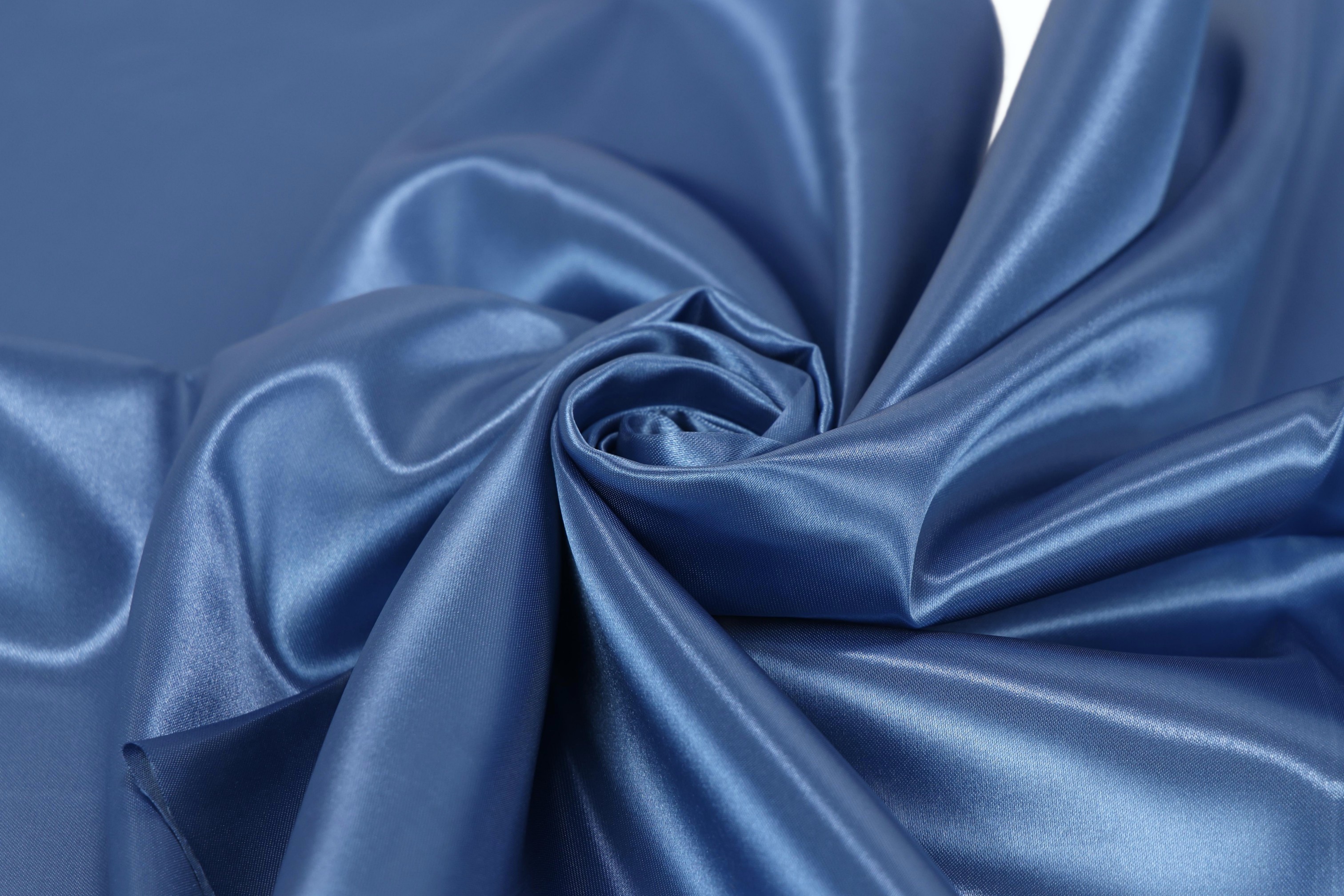 Satin ist einer der wirkungsvollsten Stoffe auf dem Markt und bietet eine breite Palette an Anwendungsmöglichkeiten für Kleidung und Dekoration. Satin ist ein einseitiger Stoff, bei dem die rechte Seite des Materials in Schuss- (Satin-)Bindung und die linke Seite in Kett- (Satin-)Bindung hergestellt wird. Das Material zeichnet sich vor allem durch seine angenehme Haptik und zarte Struktur sowie seine einzigartige Optik aus – die glänzende und elegante Oberfläche ist ein unersetzliches Dekorationsmaterial, das zur Verzierung von Ballsälen, Hochzeitssälen und Tanzsälen (ornamentale Drapierungen an Tischen und Stühlen) verwendet wird. Der Stoff enthält kein Elasthan – er ist stabil und dehnt sich nicht.