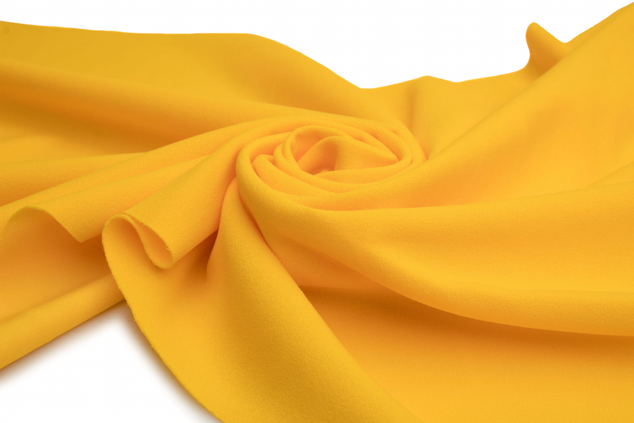 Eine Kombination aus zwei sehr unterschiedlichen Materialien: Scuba und Crepe. Auf der rechten Seite hat es eine charakteristische, raue Kreppstruktur, auf der linken Seite bleibt es glatt, typisch für einen Taucherstrick. Es besteht aus hochwertigen Kunstfasern und ist dadurch beständig gegen kleine Falten, Füllungen und Abrieb. Es erstreckt sich in alle Richtungen, behält aber gleichzeitig seine ursprüngliche Form sehr gut bei und ist beständig gegen Verformung während des Gebrauchs.