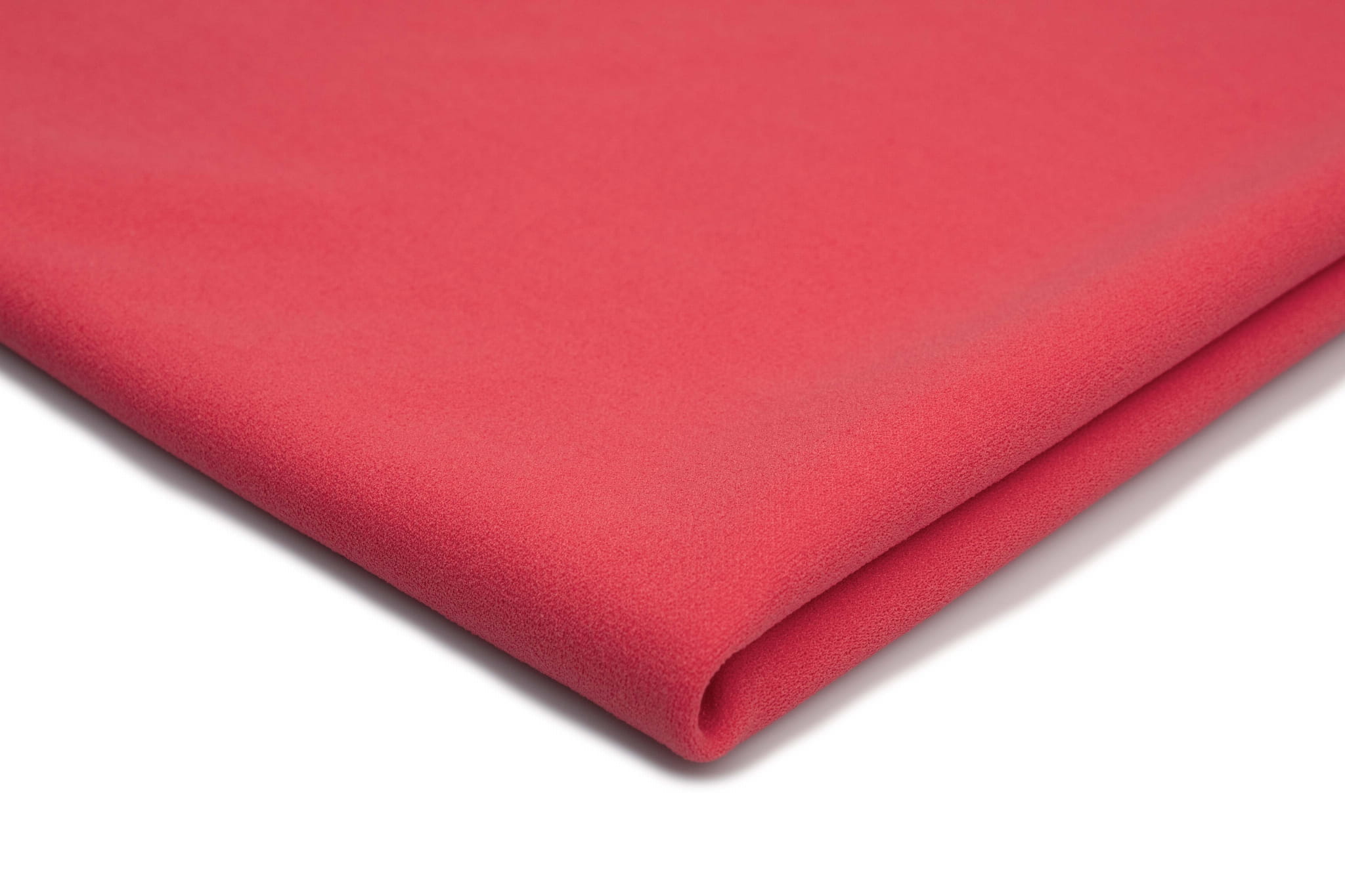 Eine Kombination aus zwei sehr unterschiedlichen Materialien: Scuba und Crepe. Auf der rechten Seite hat es eine charakteristische, raue Kreppstruktur, auf der linken Seite bleibt es glatt, typisch für einen Taucherstrick. Es besteht aus hochwertigen Kunstfasern und ist dadurch beständig gegen kleine Falten, Füllungen und Abrieb. Es erstreckt sich in alle Richtungen, behält aber gleichzeitig seine ursprüngliche Form sehr gut bei und ist beständig gegen Verformung während des Gebrauchs.