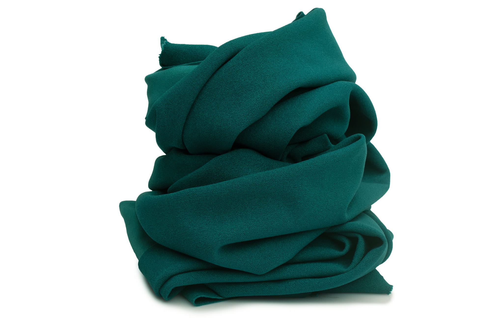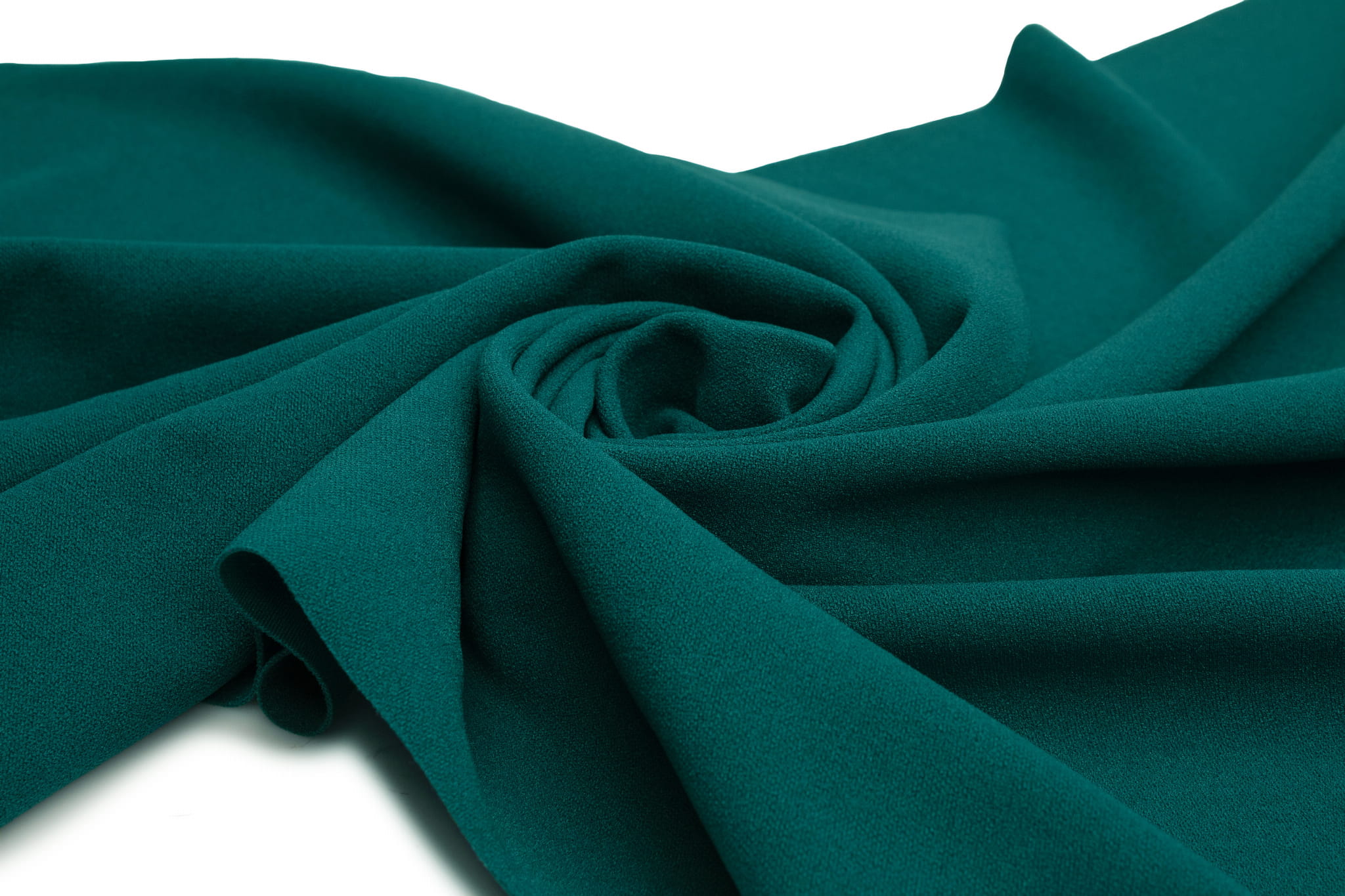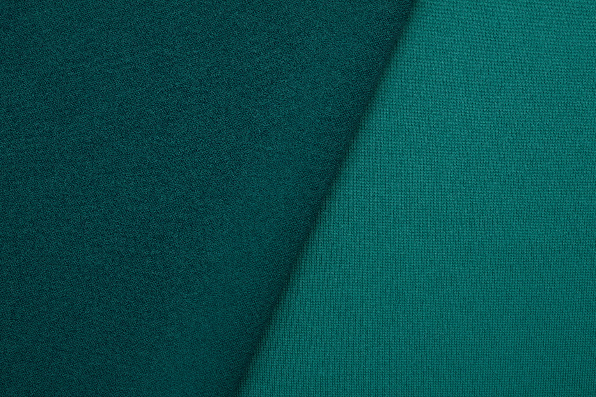 Eine Kombination aus zwei sehr unterschiedlichen Materialien: Scuba und Crepe. Auf der rechten Seite hat es eine charakteristische, raue Kreppstruktur, auf der linken Seite bleibt es glatt, typisch für einen Taucherstrick. Es besteht aus hochwertigen Kunstfasern und ist dadurch beständig gegen kleine Falten, Füllungen und Abrieb. Es erstreckt sich in alle Richtungen, behält aber gleichzeitig seine ursprüngliche Form sehr gut bei und ist beständig gegen Verformung während des Gebrauchs.